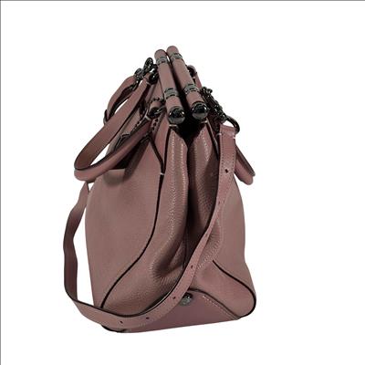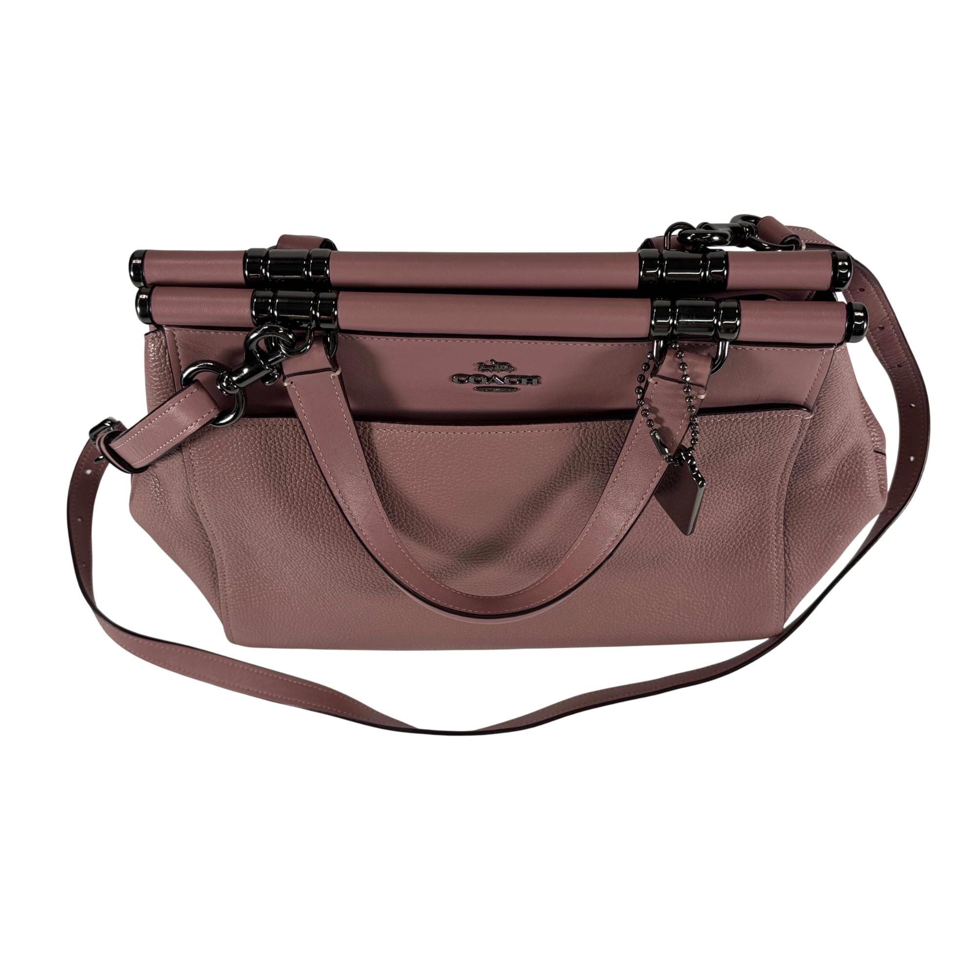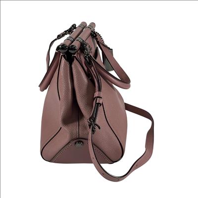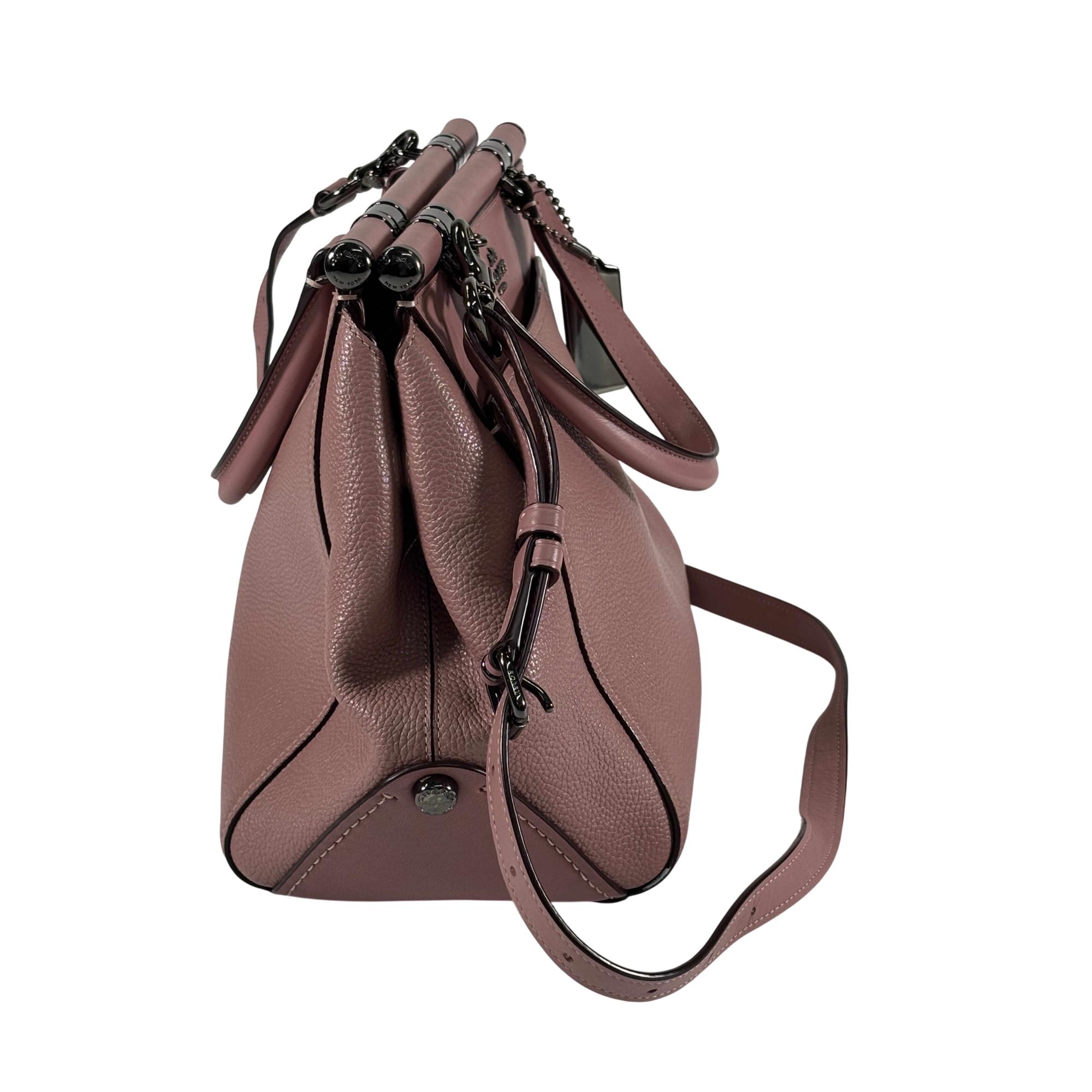 Coach Grace Convertible Satchel Bag Model 21343 in Dusty Rose Pebbled Leather features a refined design crafted from soft pebbled leather with a versatile convertible strap. This medium-sized satchel offers a sophisticated pink hue with detailed stitching and metal accents, perfect for elevating everyday fashion. Its structured silhouette combines practicality and style for a luxurious accessory choice.