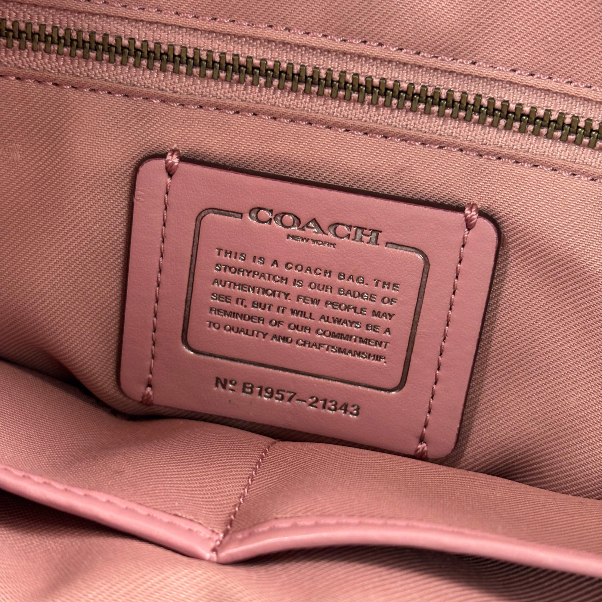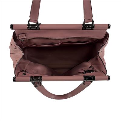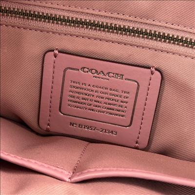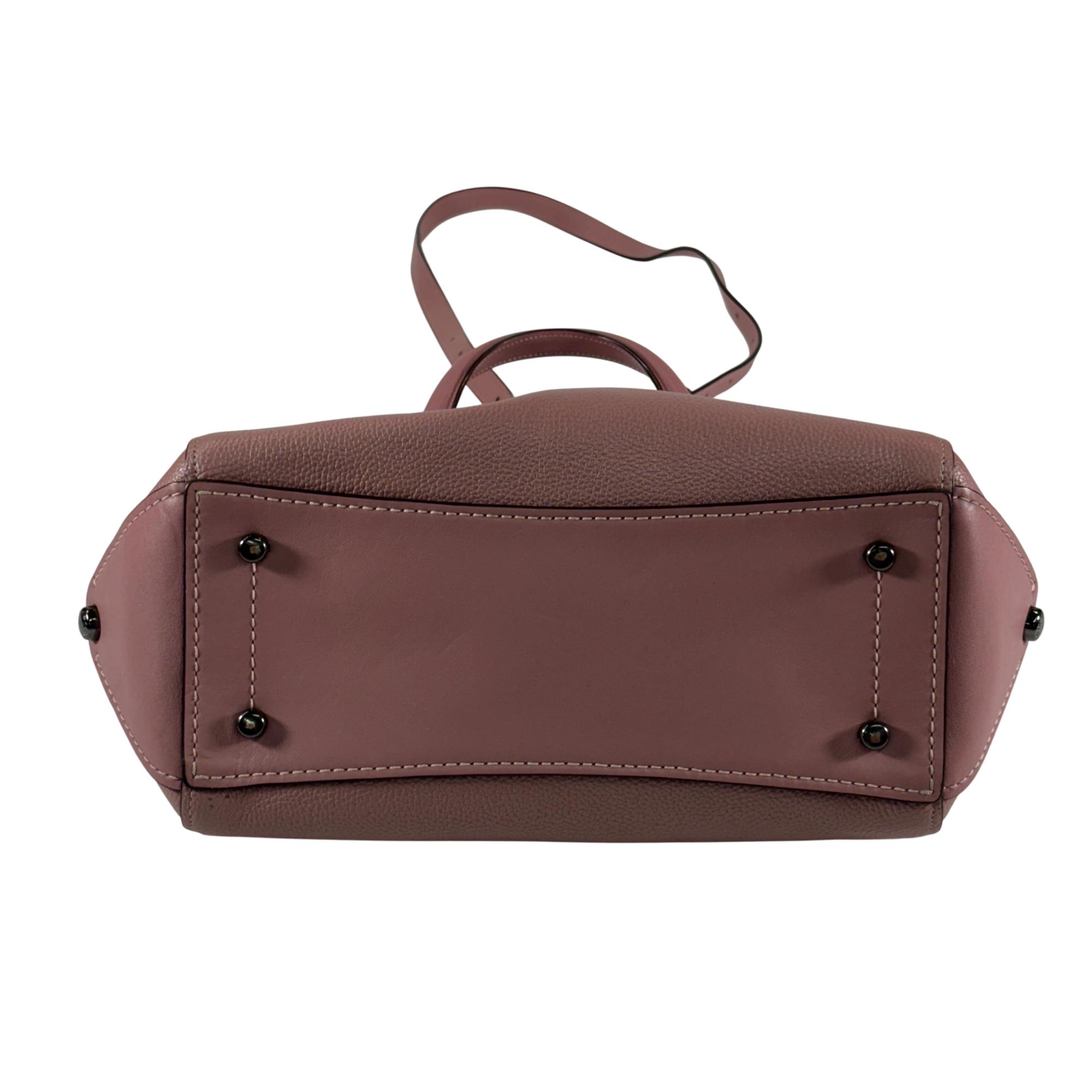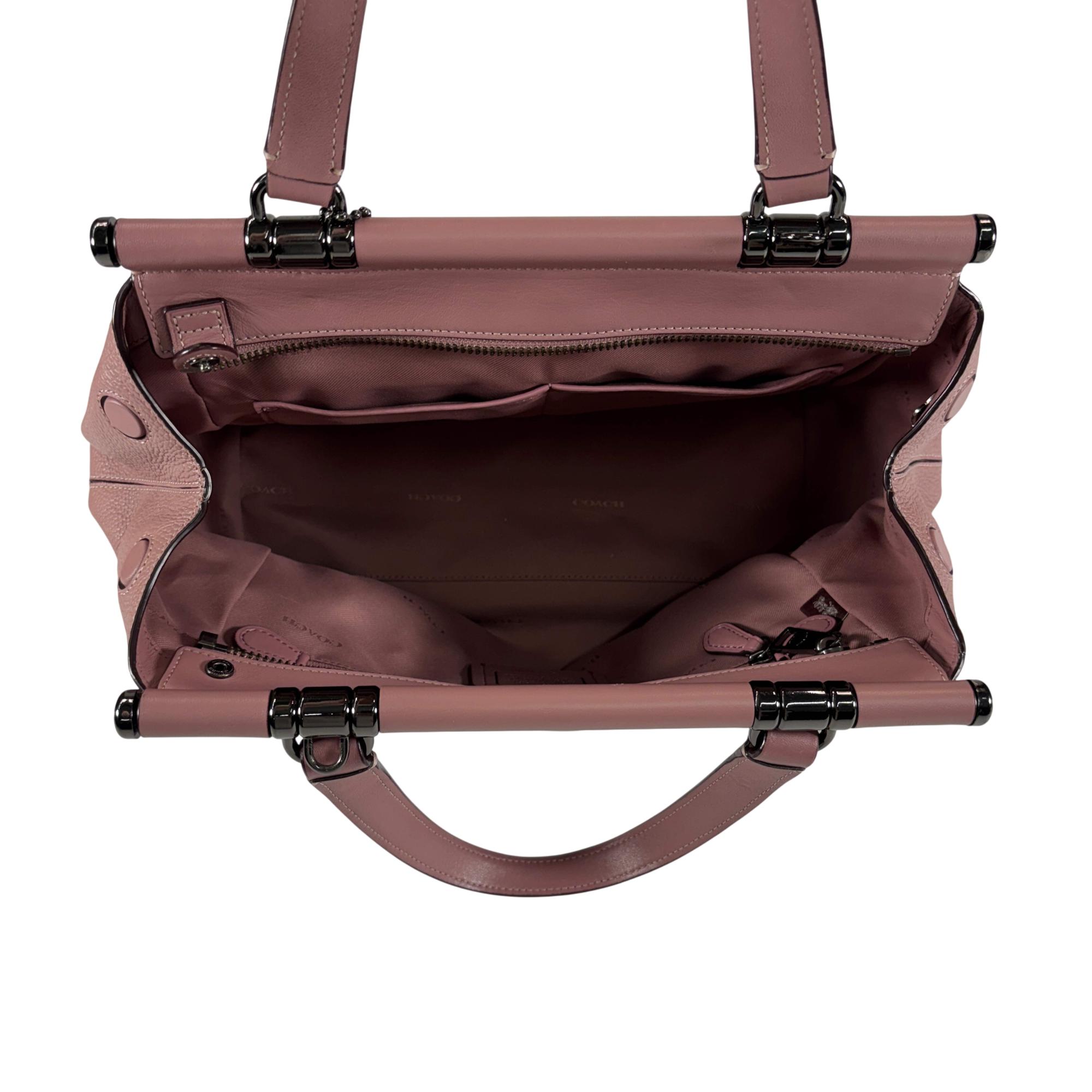 Coach Grace Convertible Satchel Bag Model 21343 in Dusty Rose Pebbled Leather features a refined design crafted from soft pebbled leather with a versatile convertible strap. This medium-sized satchel offers a sophisticated pink hue with detailed stitching and metal accents, perfect for elevating everyday fashion. Its structured silhouette combines practicality and style for a luxurious accessory choice.