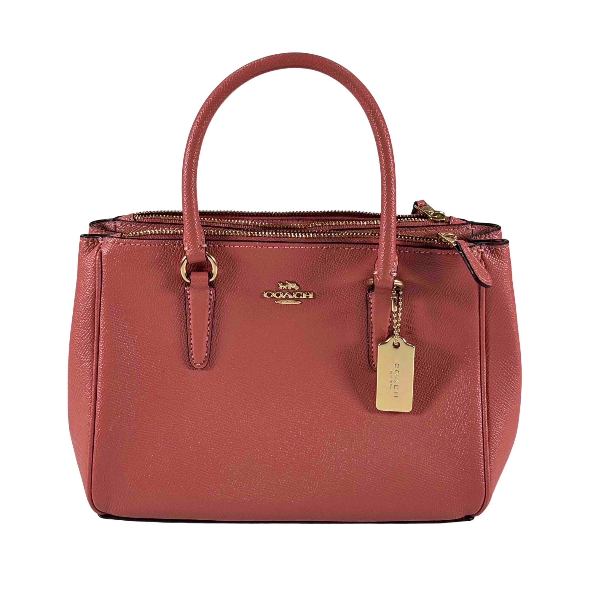 Coach Mini Surrey Carryall Crossgrain Leather Snap Closure Fabric Lining Bag