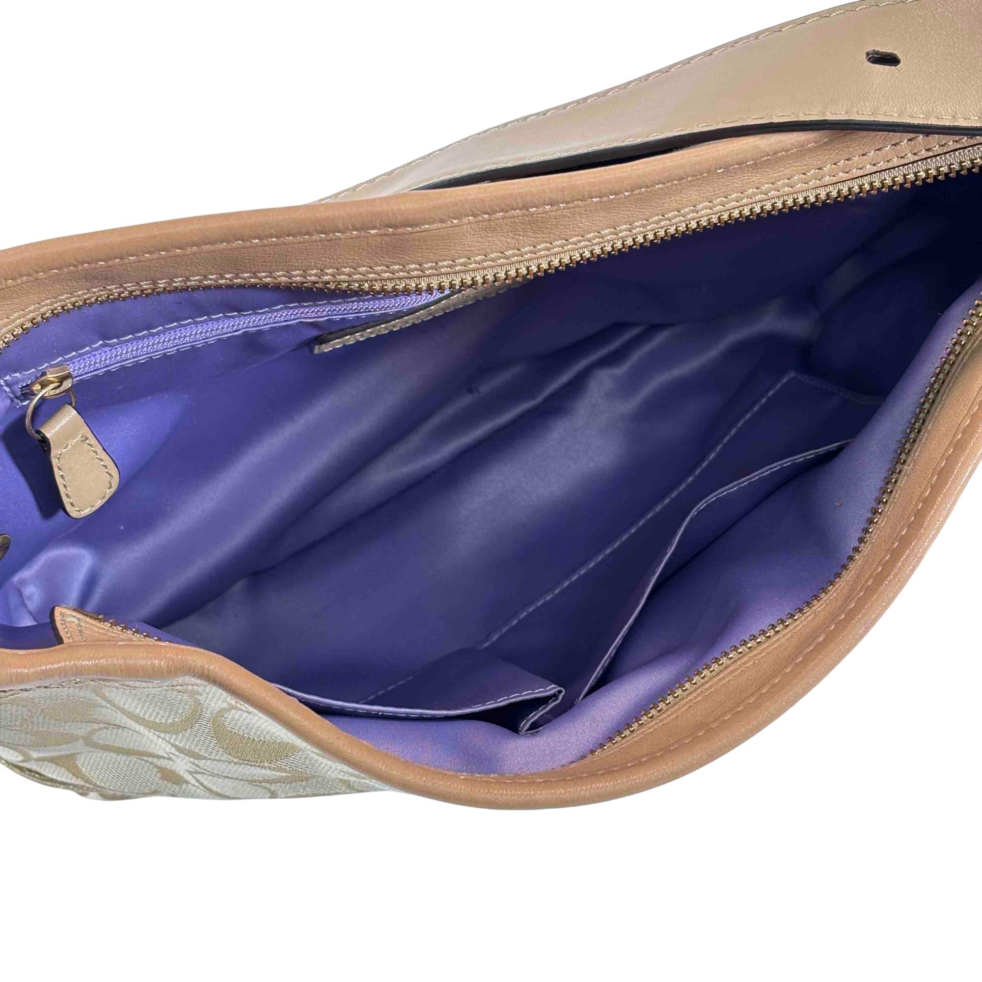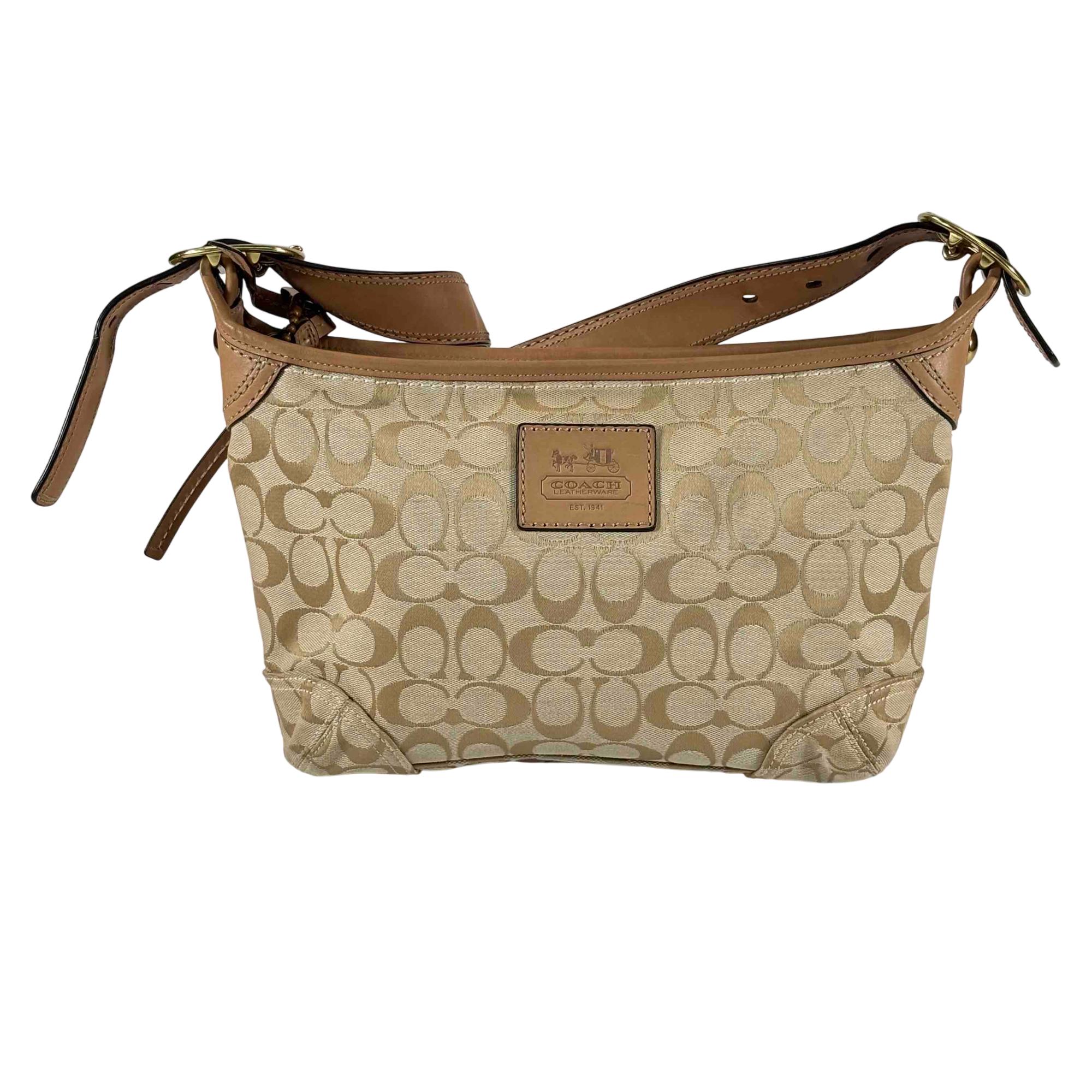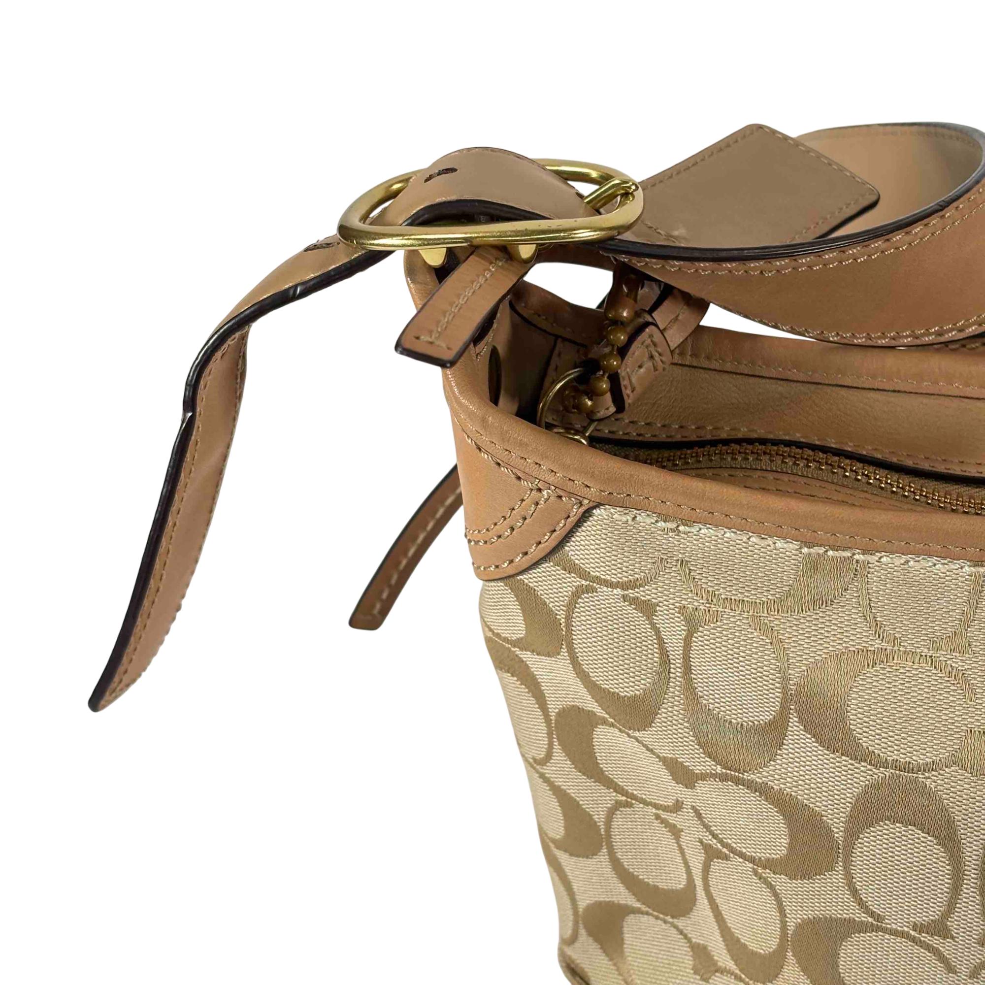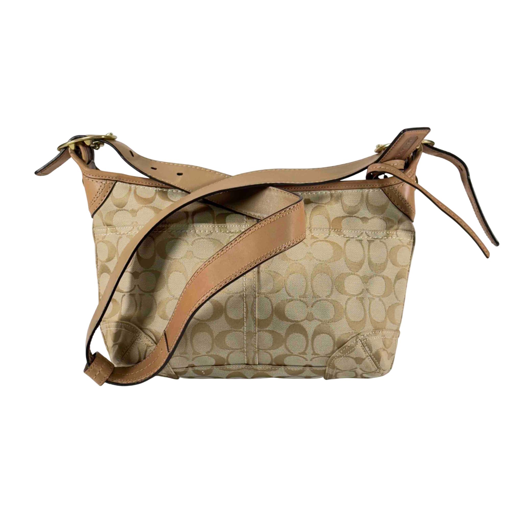 Elevate your style with this stunning Coach Signature Canvas Tan Leather Shoulder Bag. Crafted with attention to detail, it features a luxurious combination of tan leather and classic canvas, accented with a sophisticated gold buckle. Perfect for everyday use or special occasions, this chic handbag offers both elegance and practicality.
