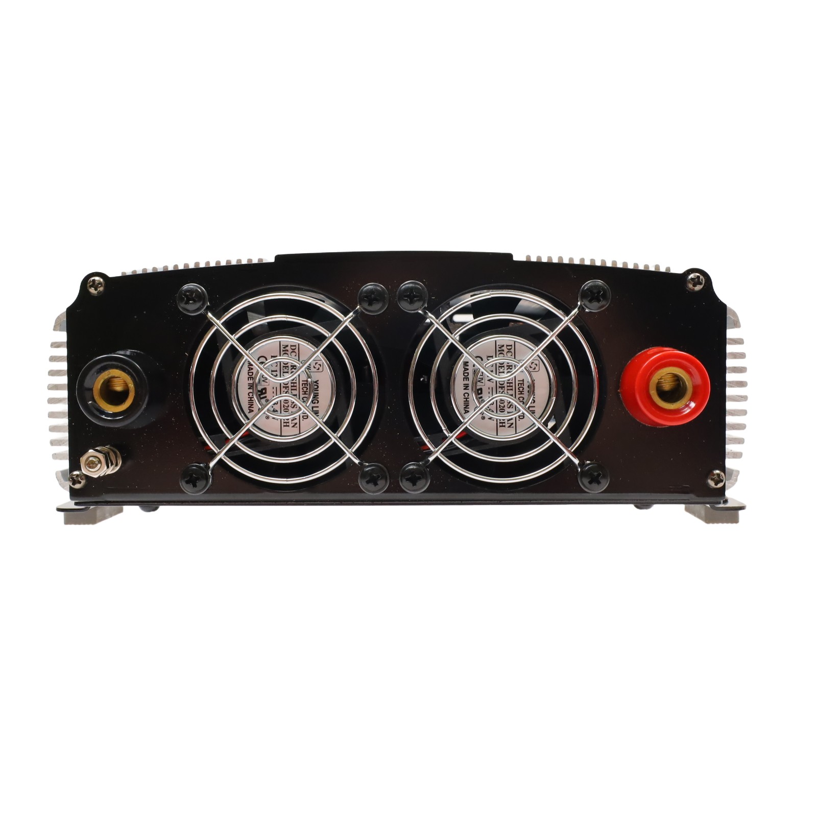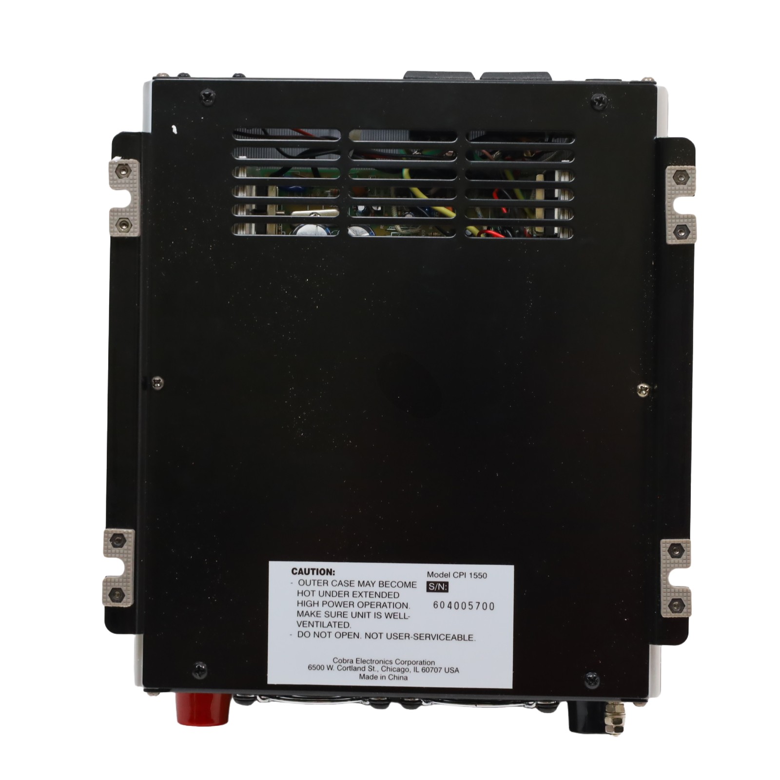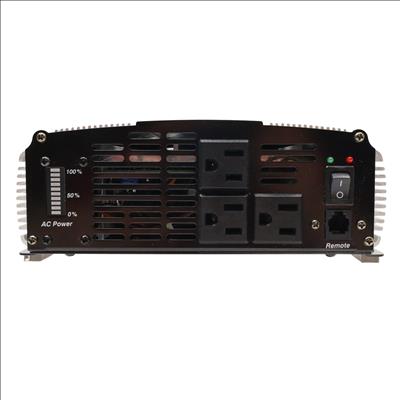 A 1500W DC-to-AC power inverter designed to convert vehicle or battery power into 120V AC electricity, enabling the operation of household and office devices. It delivers 1500 watts of continuous power and 3000 watts of peak power, suitable for appliances such as microwaves (up to 1000 watts), coffeemakers, laptops, televisions, and gaming consoles. The unit includes a power/amp meter for monitoring output, remote on/off functionality for convenience, and a durable, heavy-duty design to withstand regular use. Three standard AC outlets provide connectivity for multiple devices. Its compact form factor and remote control capabilities make it suitable for use in vehicles or portable setups where access to standard household power is needed.