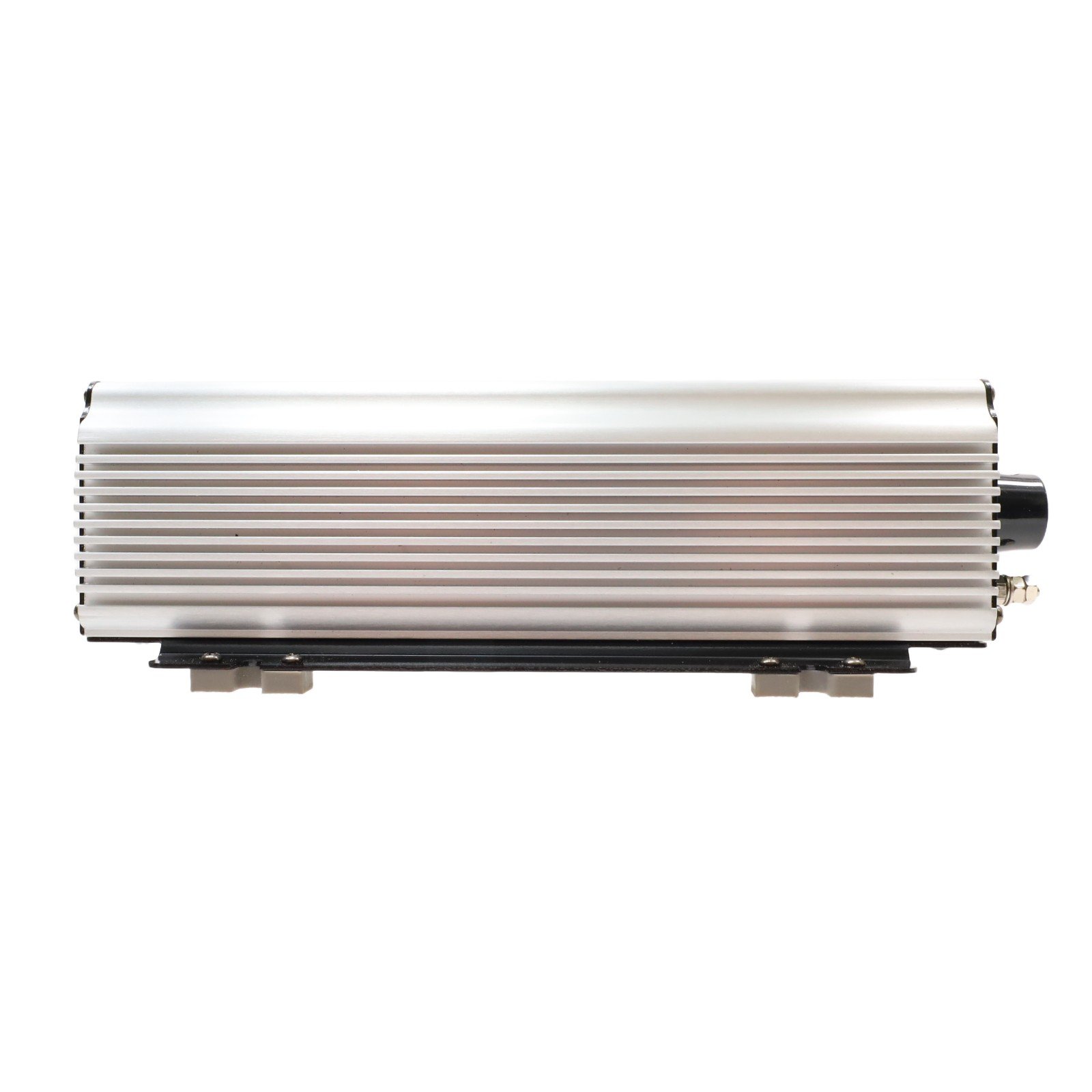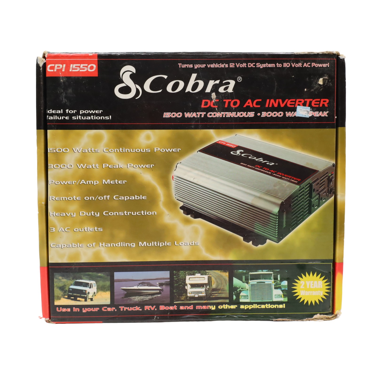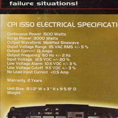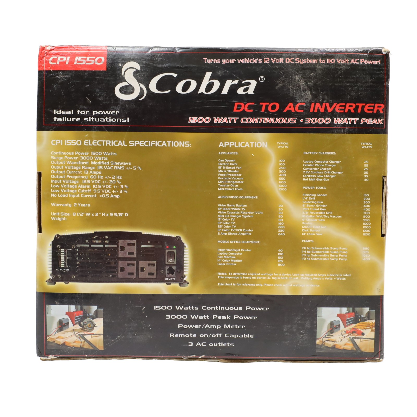 A 1500W DC-to-AC power inverter designed to convert vehicle or battery power into 120V AC electricity, enabling the operation of household and office devices. It delivers 1500 watts of continuous power and 3000 watts of peak power, suitable for appliances such as microwaves (up to 1000 watts), coffeemakers, laptops, televisions, and gaming consoles. The unit includes a power/amp meter for monitoring output, remote on/off functionality for convenience, and a durable, heavy-duty design to withstand regular use. Three standard AC outlets provide connectivity for multiple devices. Its compact form factor and remote control capabilities make it suitable for use in vehicles or portable setups where access to standard household power is needed.