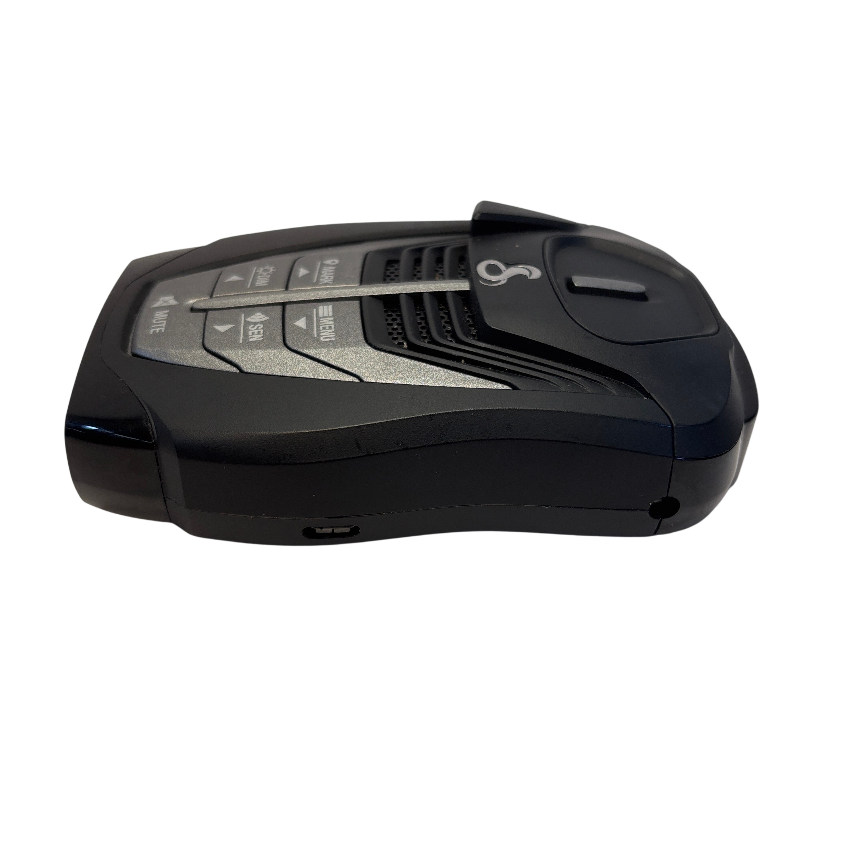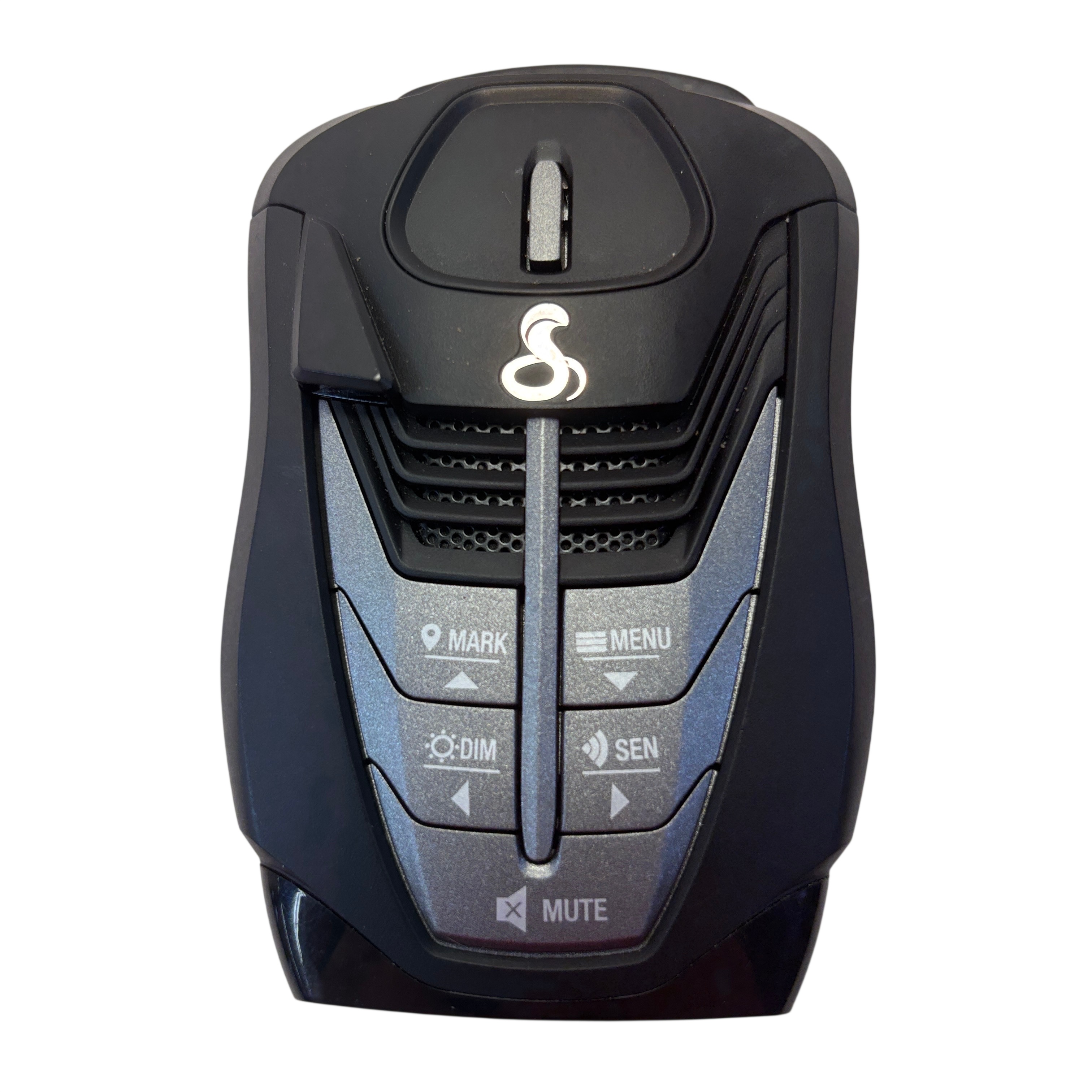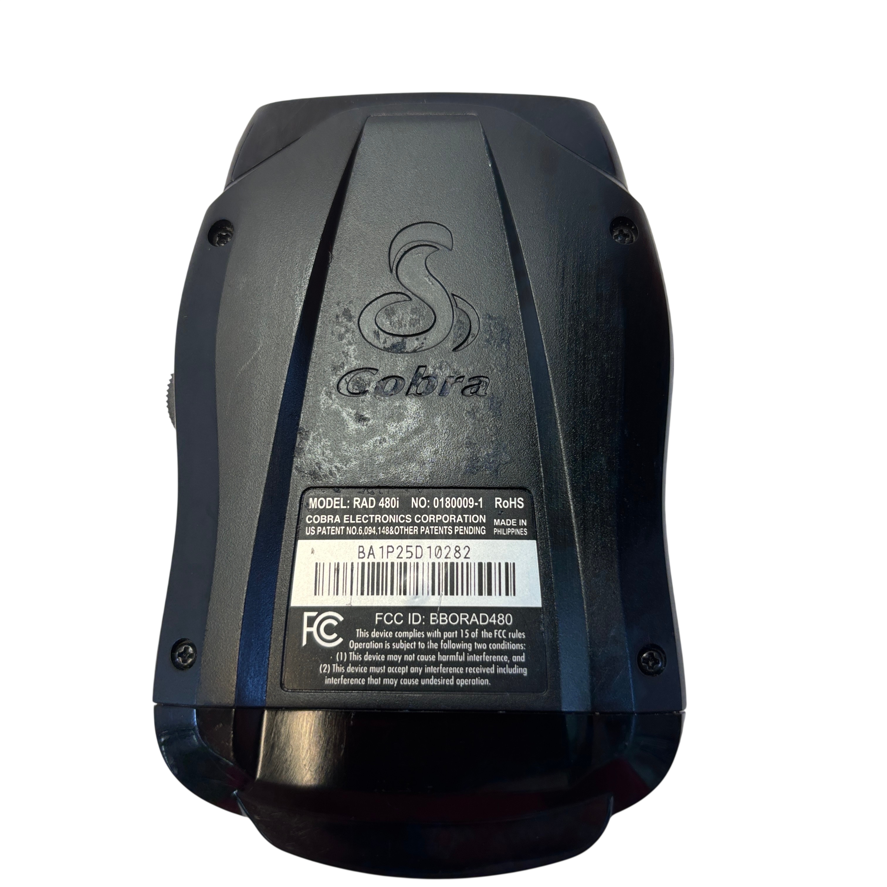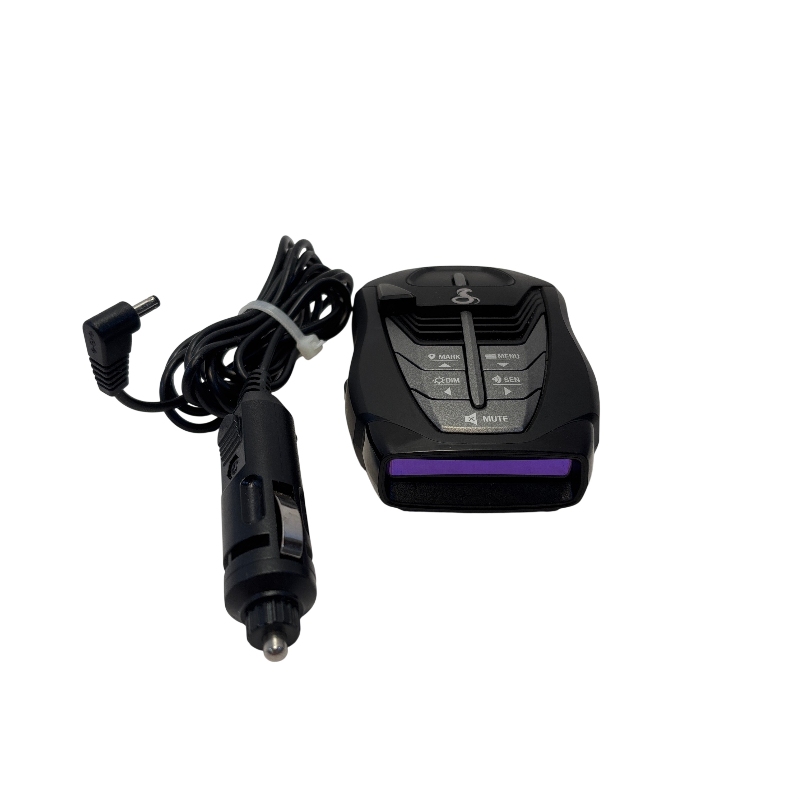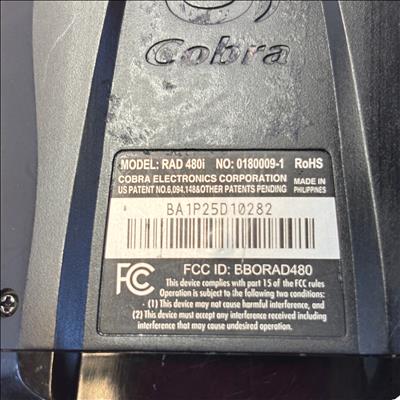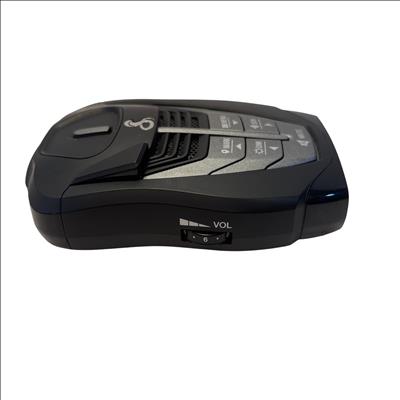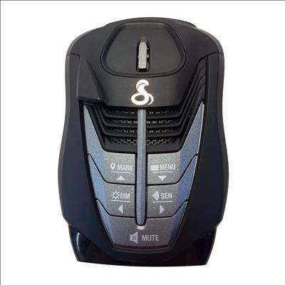 The Cobra RAD480i Radar Detector offers reliable detection of radar signals to help drivers stay alert to speed monitoring devices. This compact black unit features multiple control buttons including mute, dimmer, sensitivity, and menu options for customizable operation. Powered through a car cigarette lighter adapter, it is easy to install and use in any vehicle. Its lightweight design and intuitive controls make it an essential accessory for safer driving.