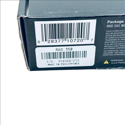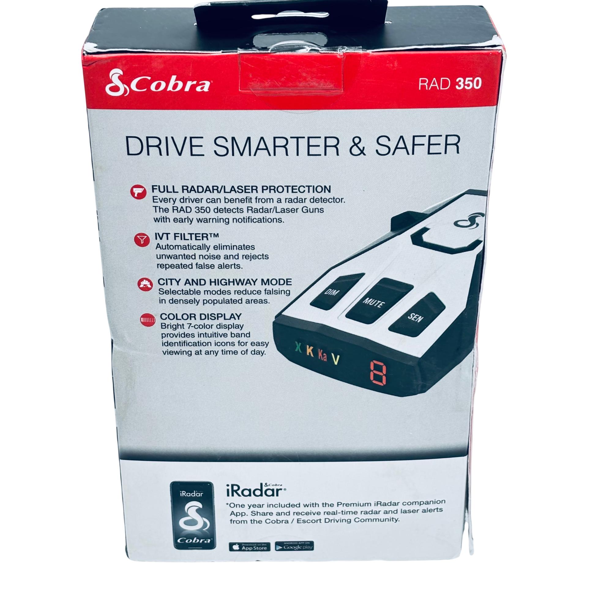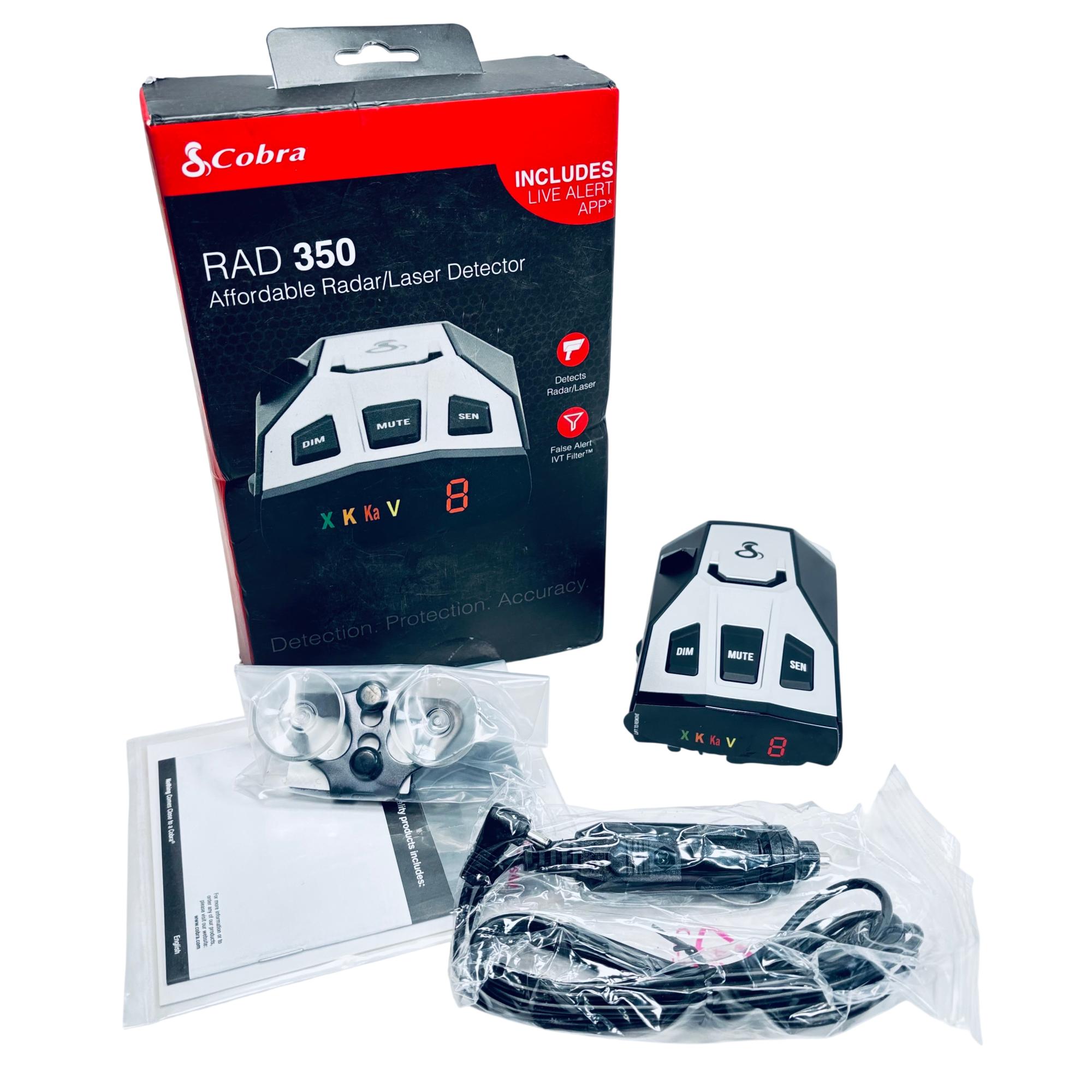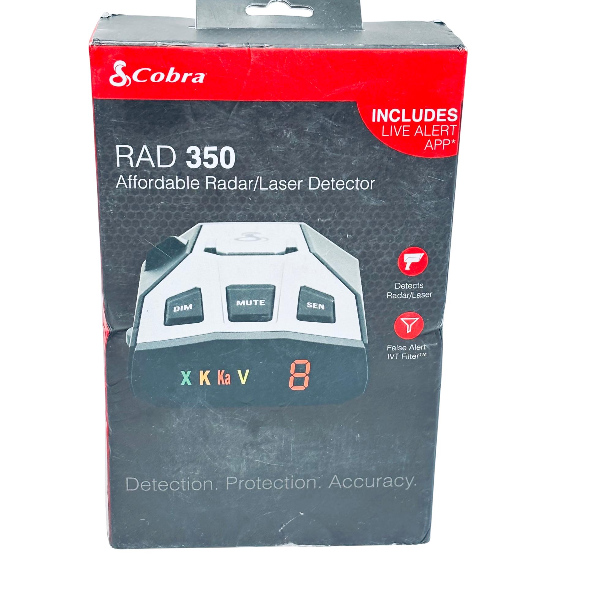 Cobra RAD 350 Affordable Radar/Laser Detector offers reliable detection of radar and laser signals across X, K, Ka, and V bands, enhancing driver awareness and safety. This compact device features advanced false alert filtering technology to provide accurate alerts while minimizing distractions on the road.