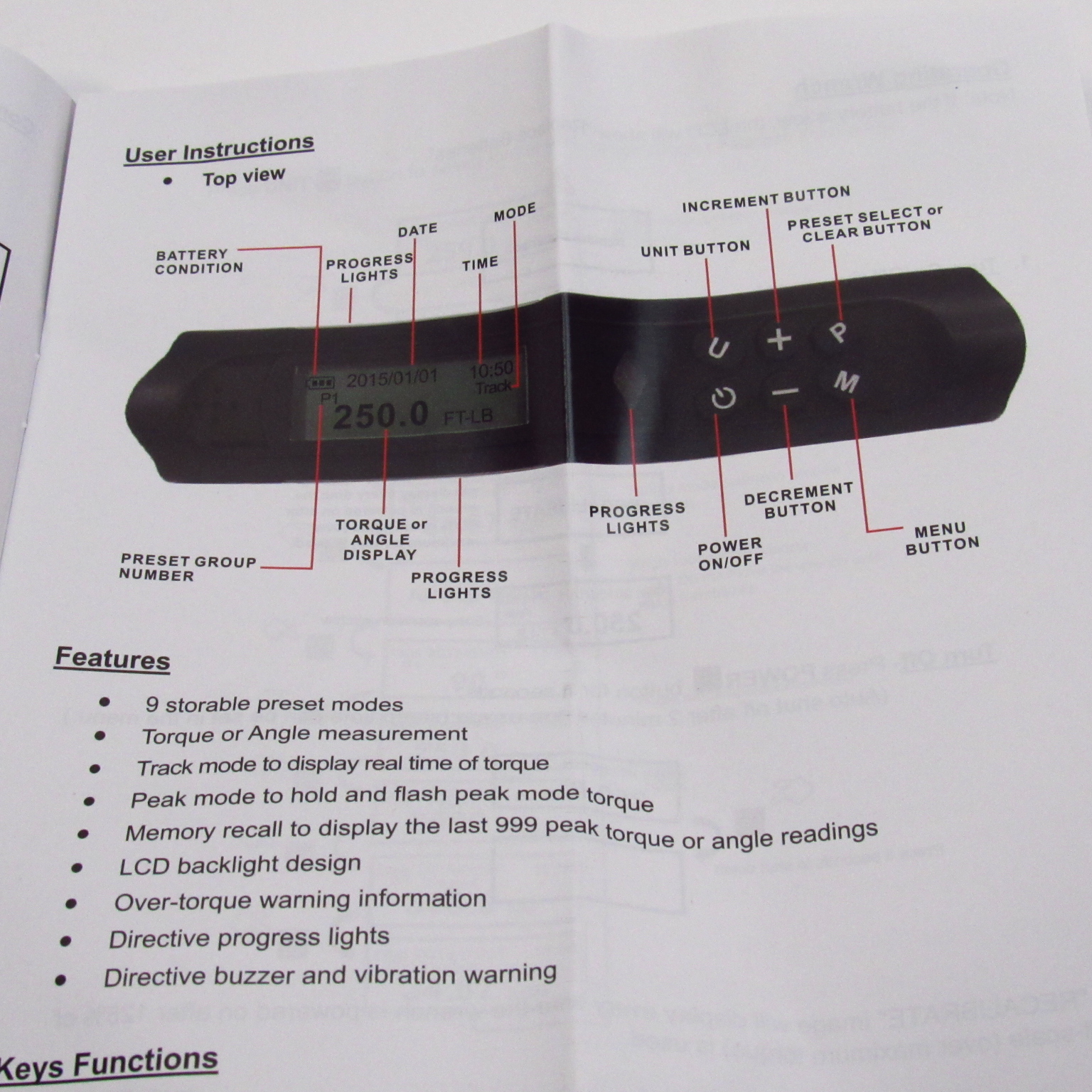 Memory recall to display the last 999 peak torque or angle readings