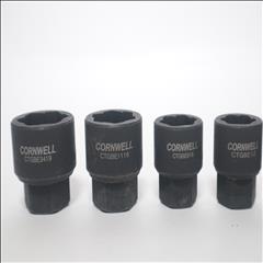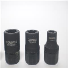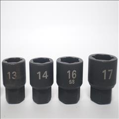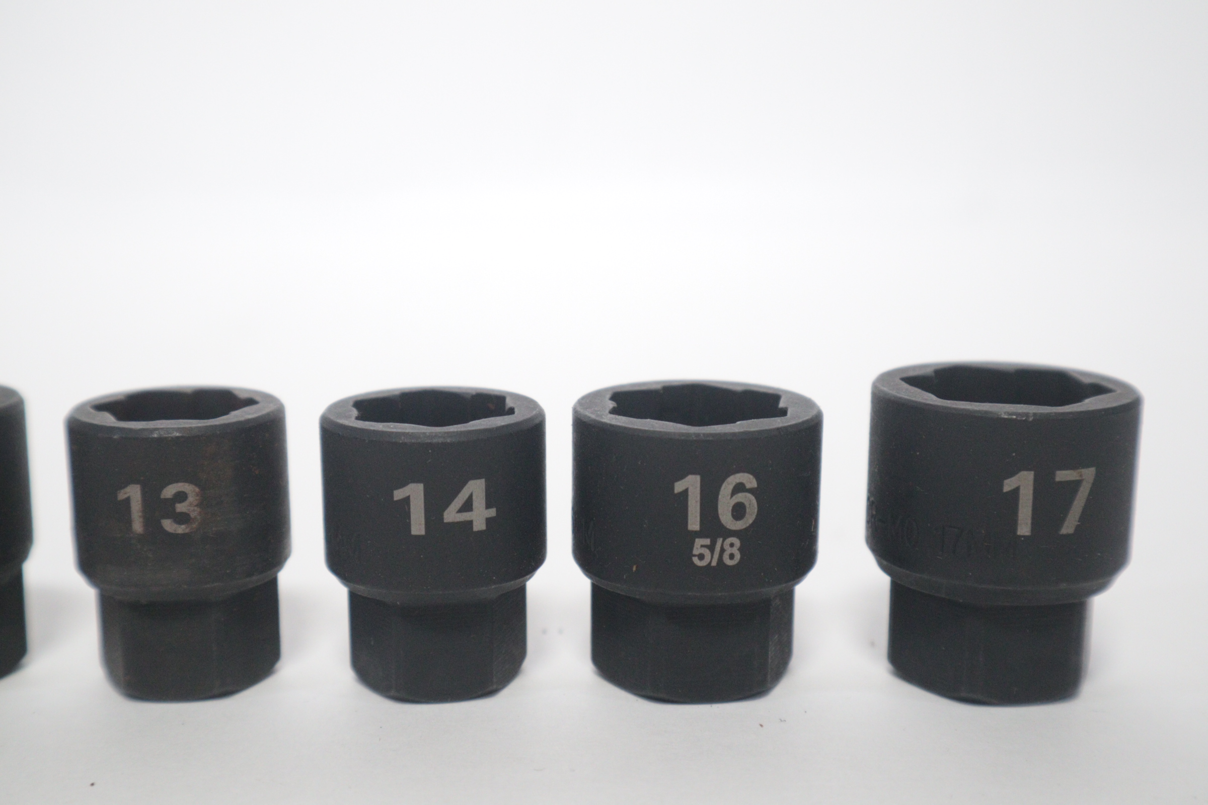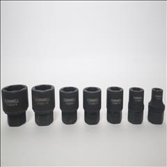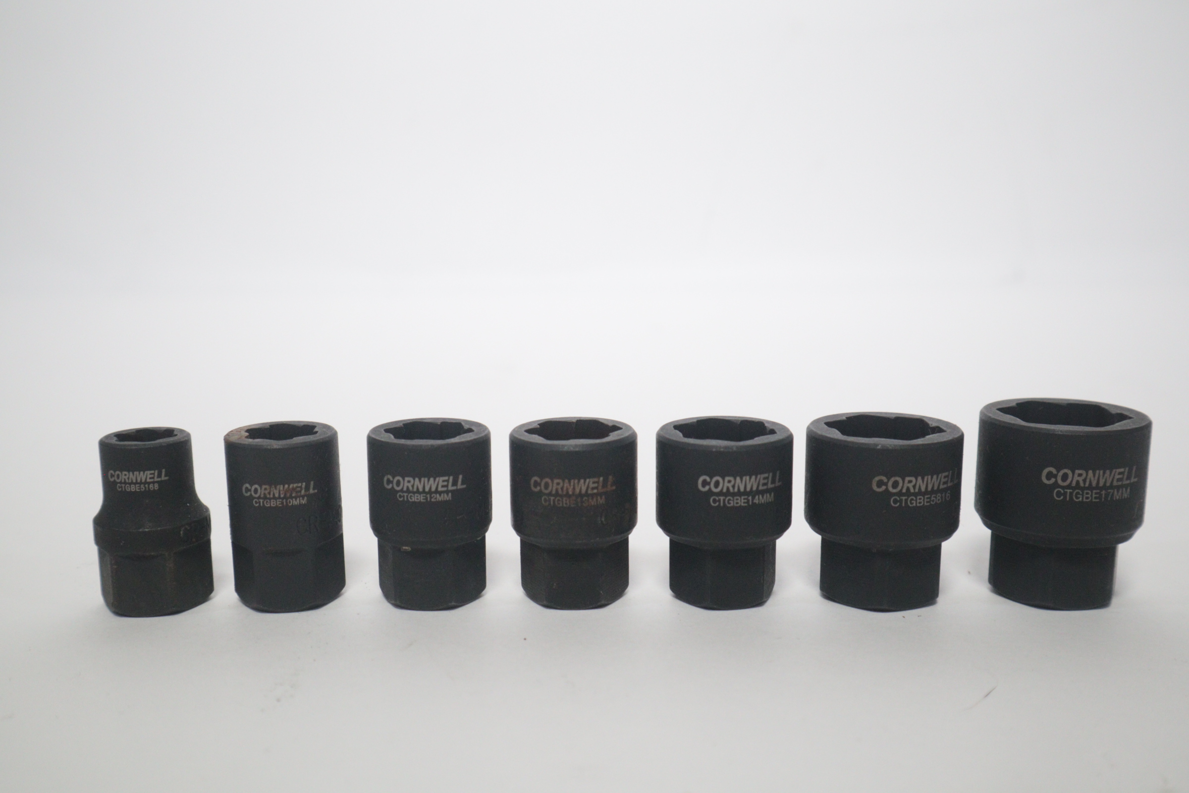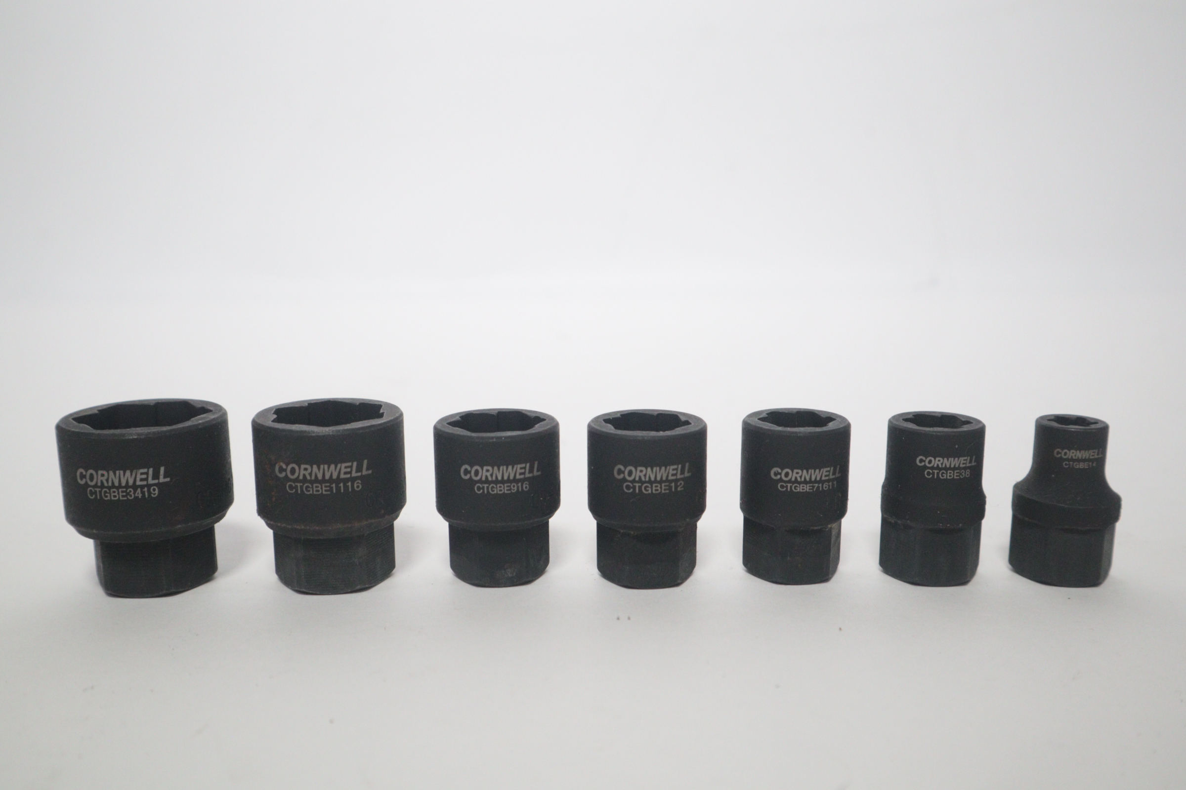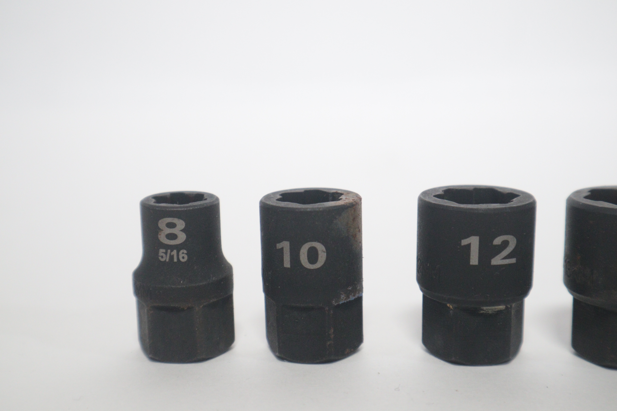 Service end provides greater surface control for less chance of slipping and less chance of damaging bolt. May be used to remove broken bolts or replace new bolts. Size range includes 1 each: 1/4", 3/8", 7/16" (11mm), 1/2", 9/16", 5/8" (16mm), 11/16", 3/4" (19mm), 8mm (5/16"), 10mm, 12mm, 13mm, 14mm, 17mm. Also includes punch bar.