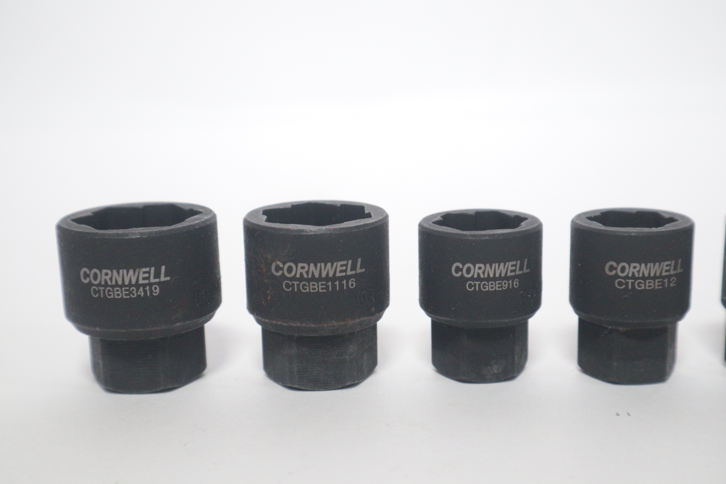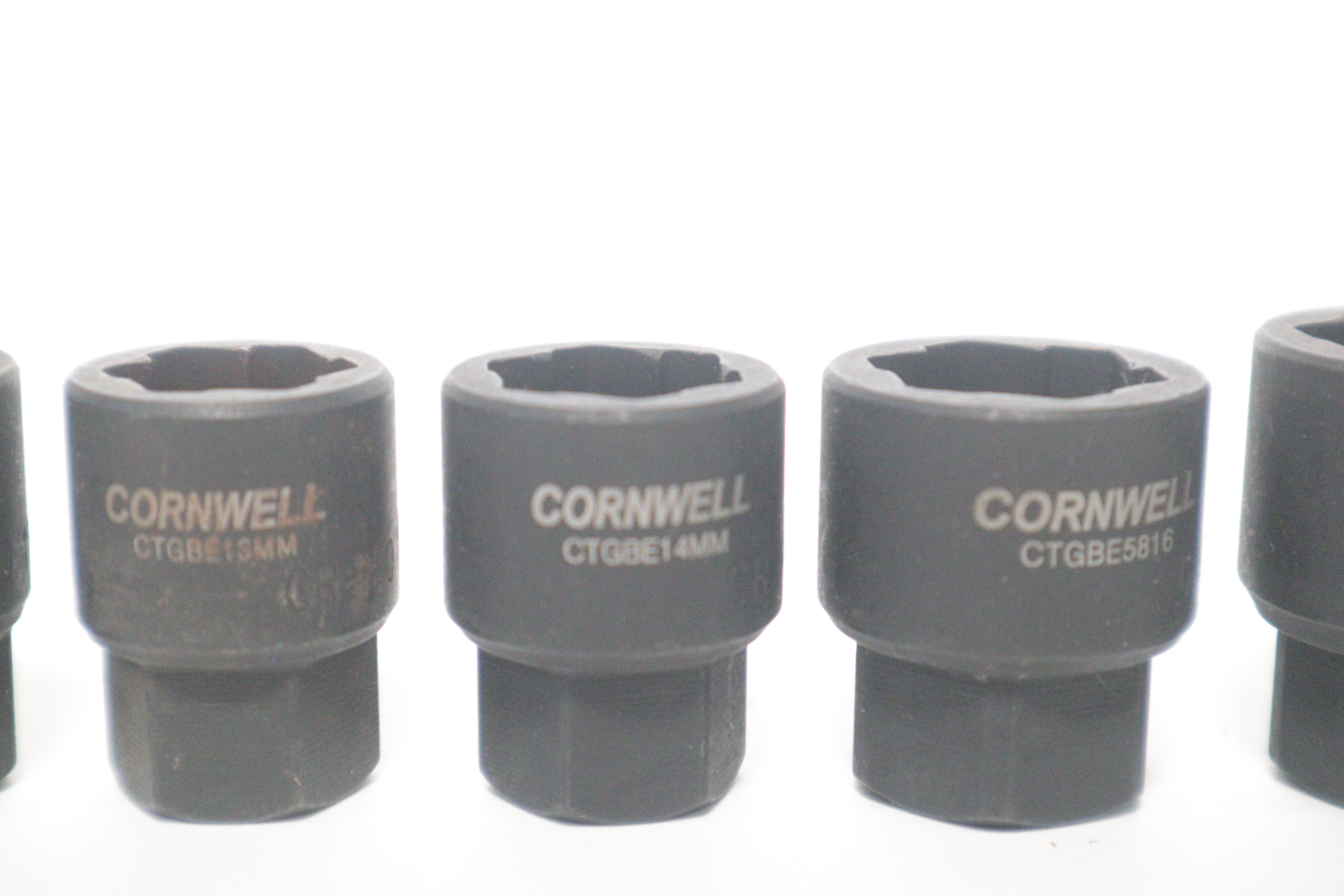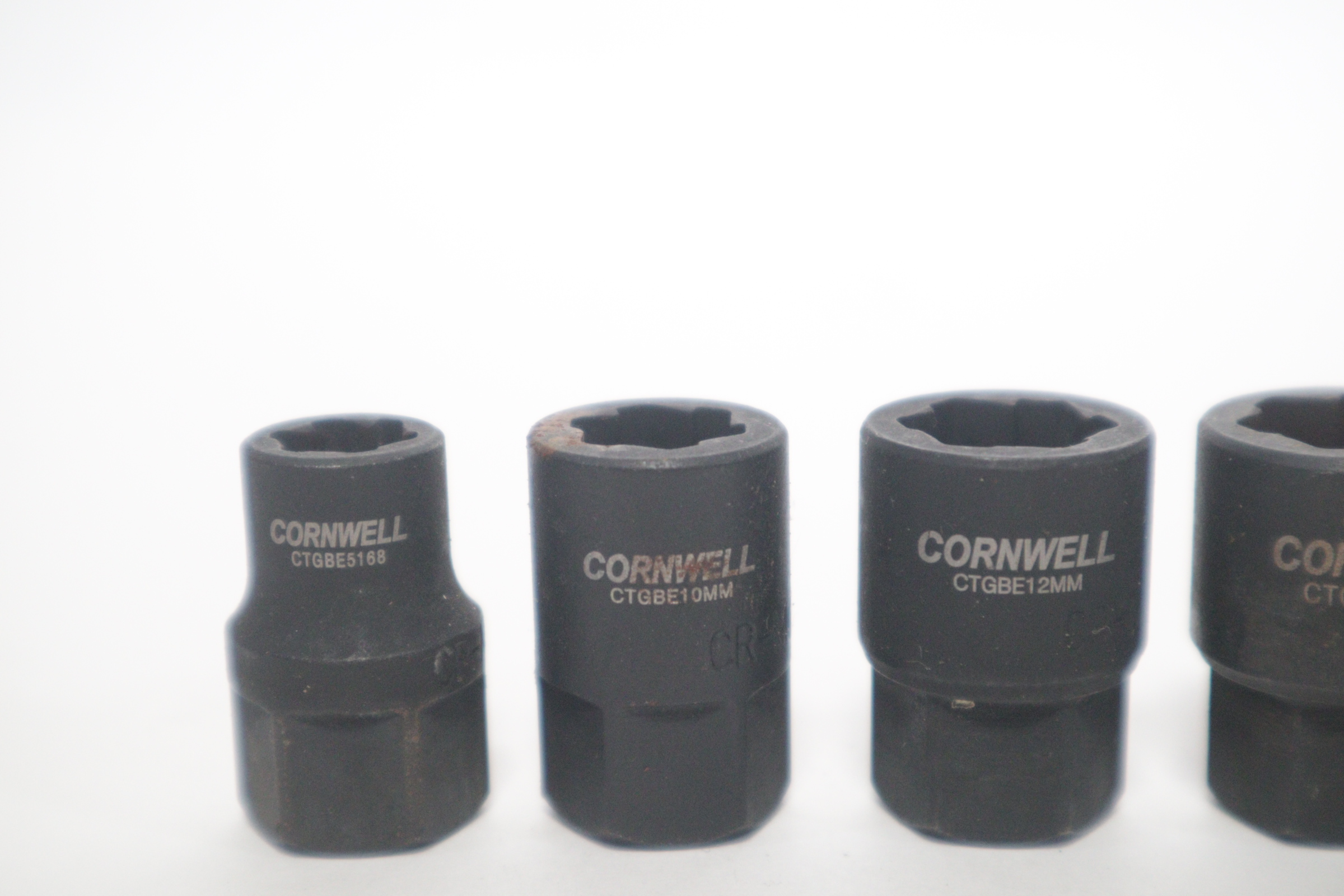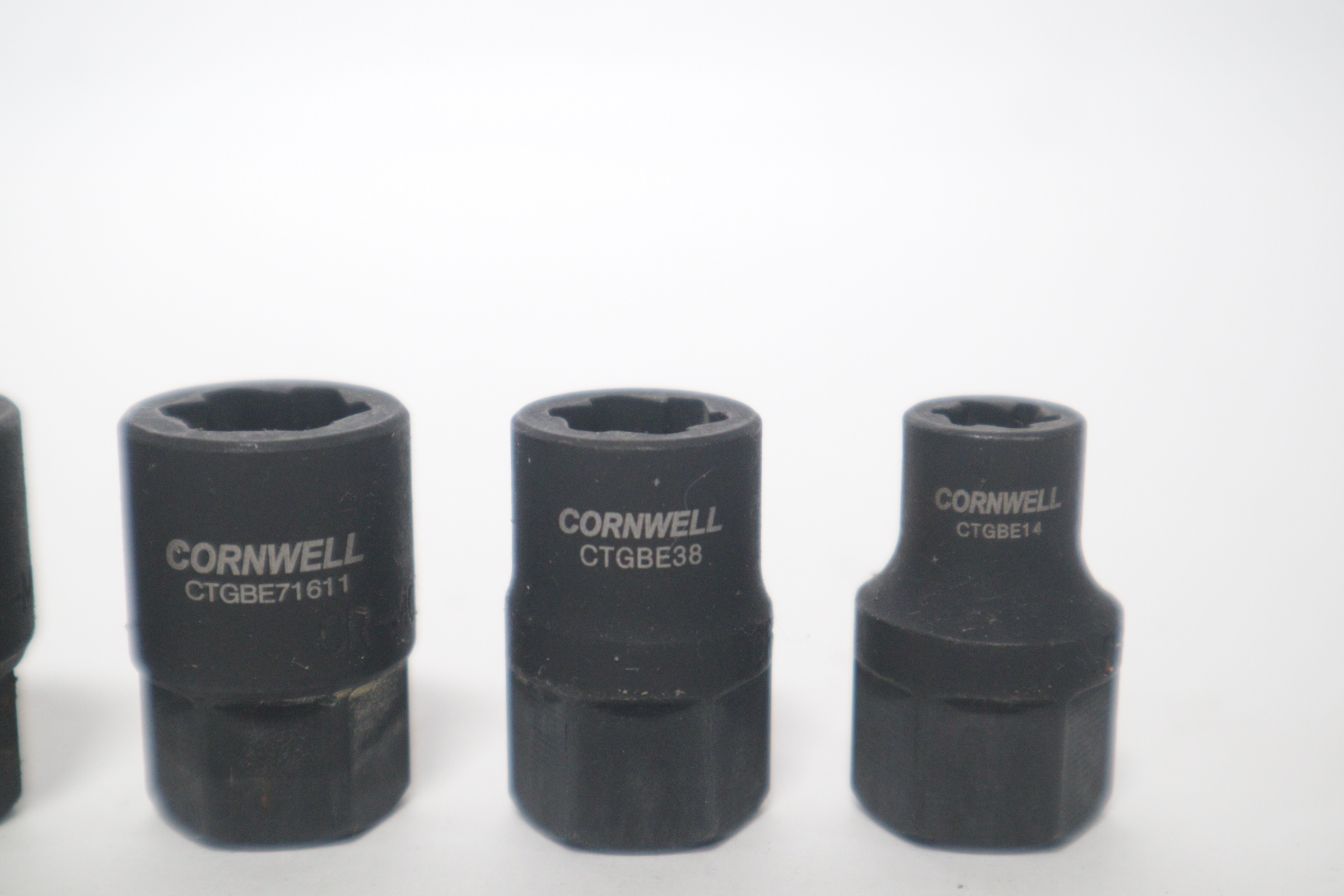 Service end provides greater surface control for less chance of slipping and less chance of damaging bolt. May be used to remove broken bolts or replace new bolts. Size range includes 1 each: 1/4", 3/8", 7/16" (11mm), 1/2", 9/16", 5/8" (16mm), 11/16", 3/4" (19mm), 8mm (5/16"), 10mm, 12mm, 13mm, 14mm, 17mm. Also includes punch bar.