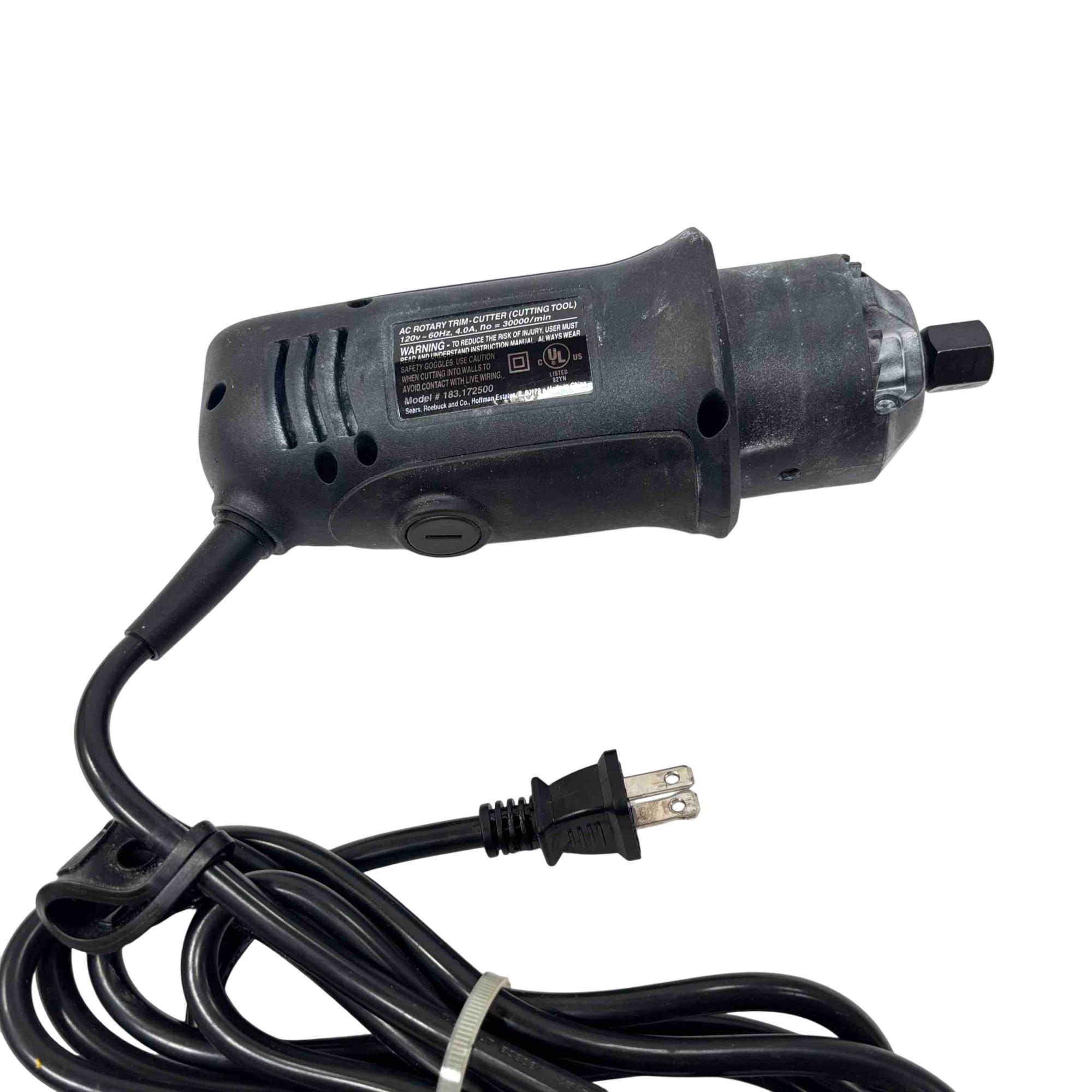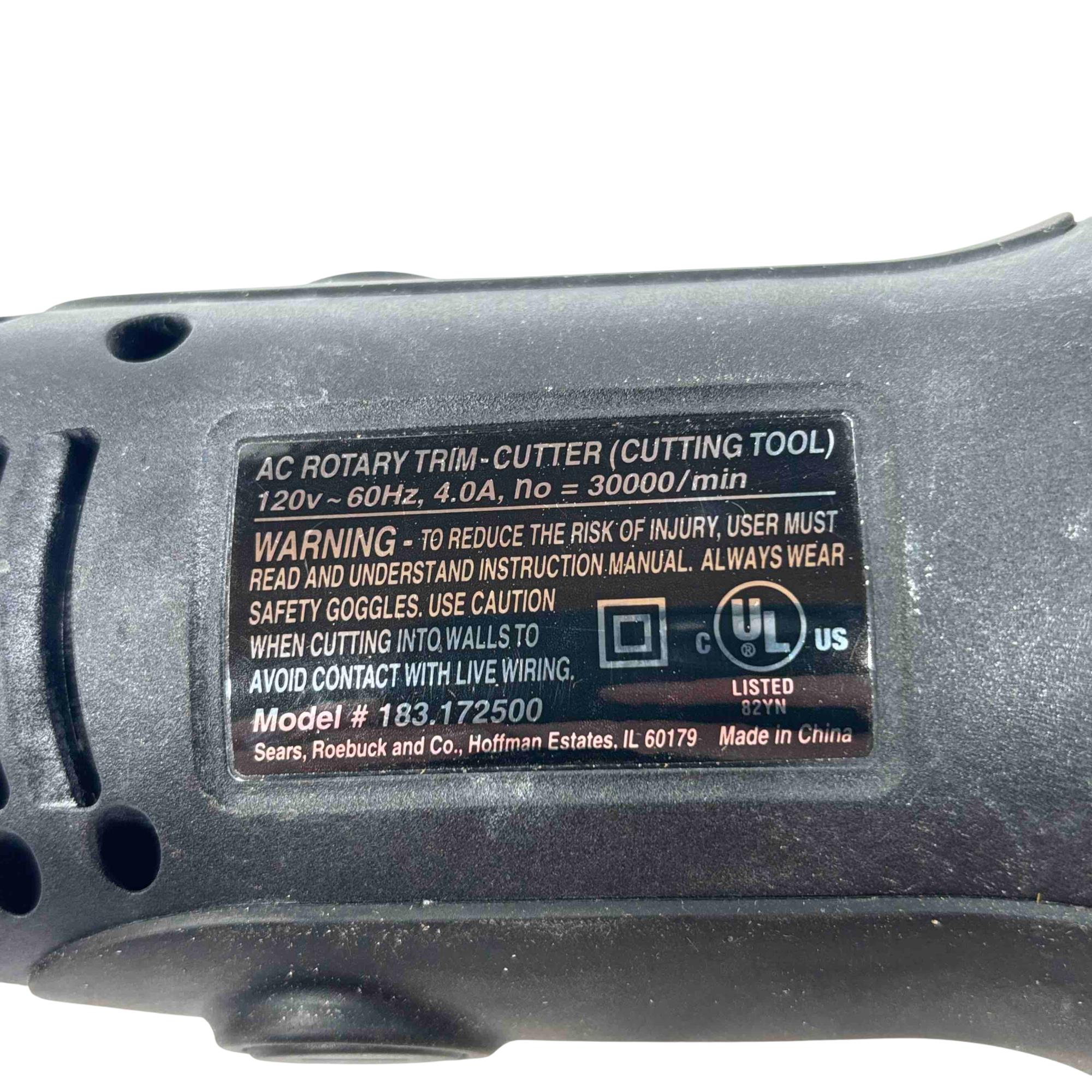 Craftsman AC Rotary Trim Cutter Tool Kit, Model 183.172500 is a versatile corded power tool designed for precise cutting tasks. Featuring a durable black design with a red logo, this kit includes the rotary trim cutter and a black carrying case with organized tool storage. Ideal for DIY projects and professional use, it offers reliable performance with a 2-speed motor and ergonomic handling.
