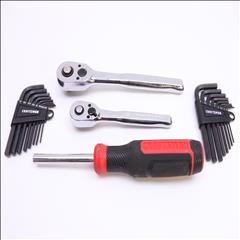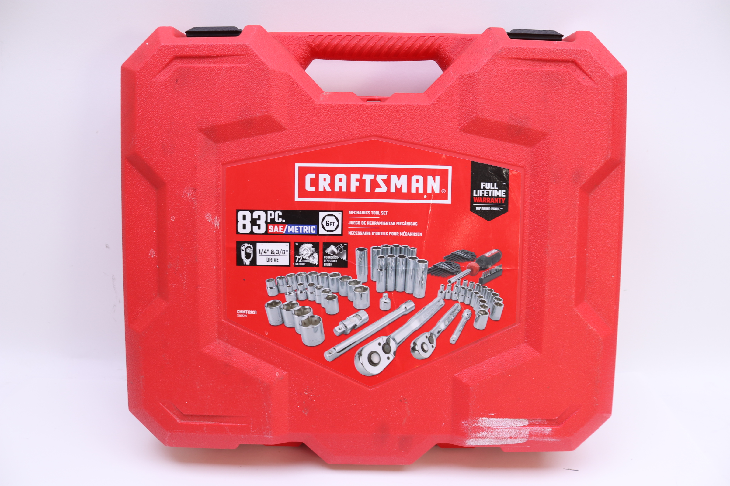 83 Pc 1/4-in and 3/8-in Drive Mechanics Tool Set comes equipped with 72 Tooth ratchets, a broad assortment of drive tools, and a rugged blow mold case. This case is constructed with metal hinges for separate sets, and the dimensions are specifically designed to fit into CRAFTSMAN metal storage boxes for easy organization.