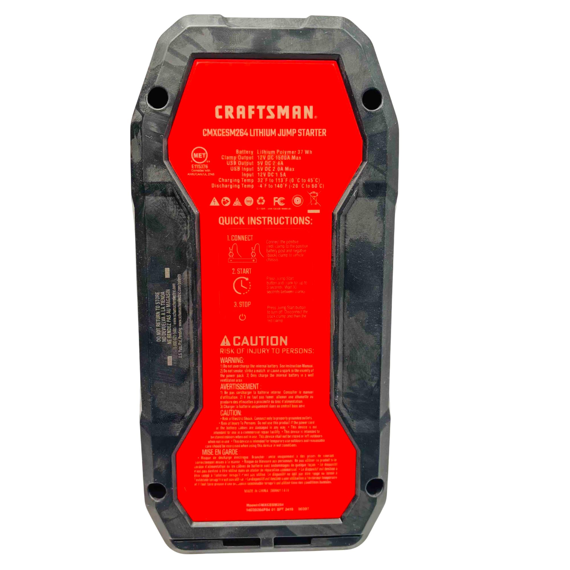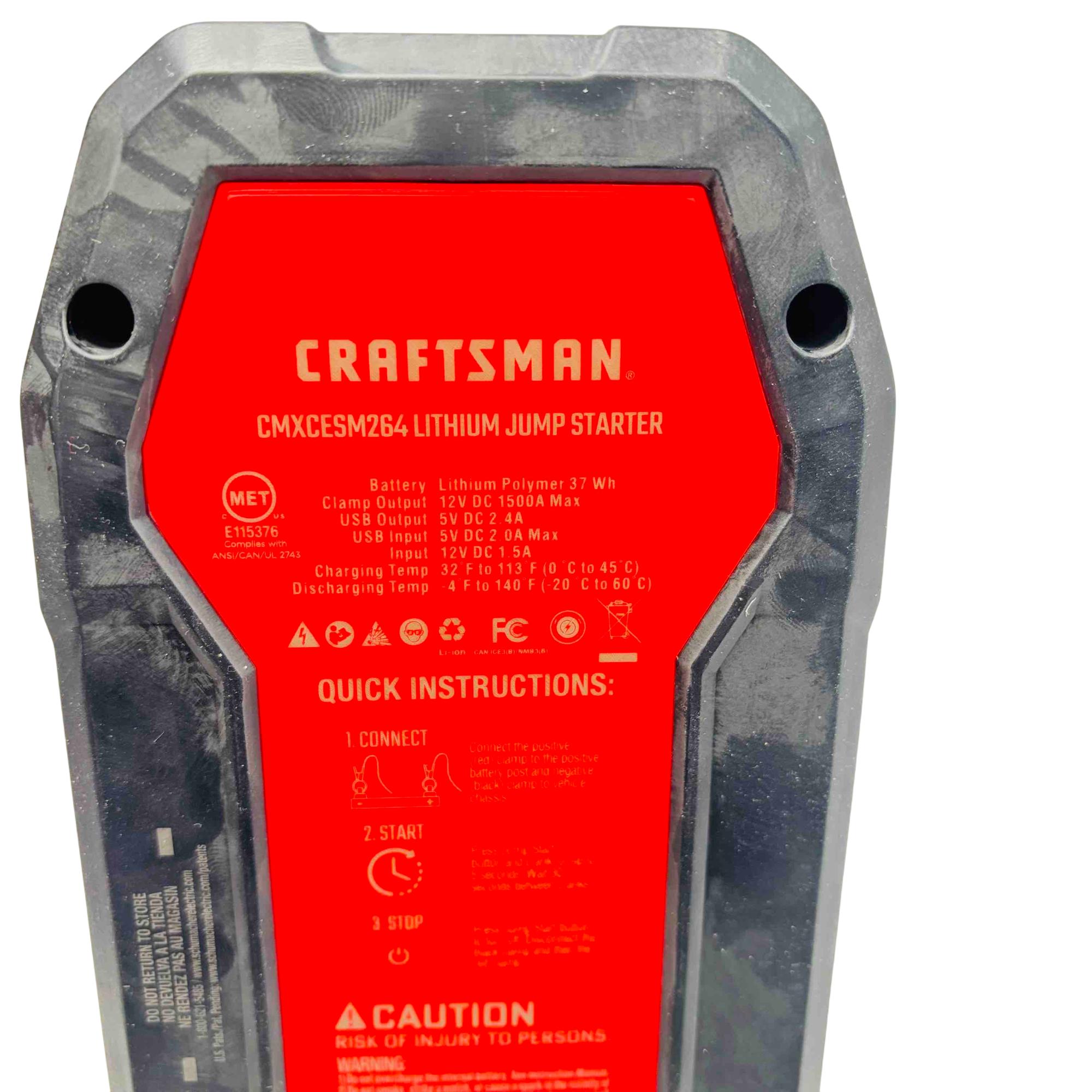 Introducing the Craftsman CMXCESM264 1500A Lithium-Ion 12V Jump Starter, a powerful and portable solution for all your emergency power needs. With an impressive 1500A output, this jump starter can effortlessly revive your vehicles battery while also providing convenient USB output for charging your devices. Its compact design, along with a durable red and black exterior, ensures you have a reliable companion on all your journeys.