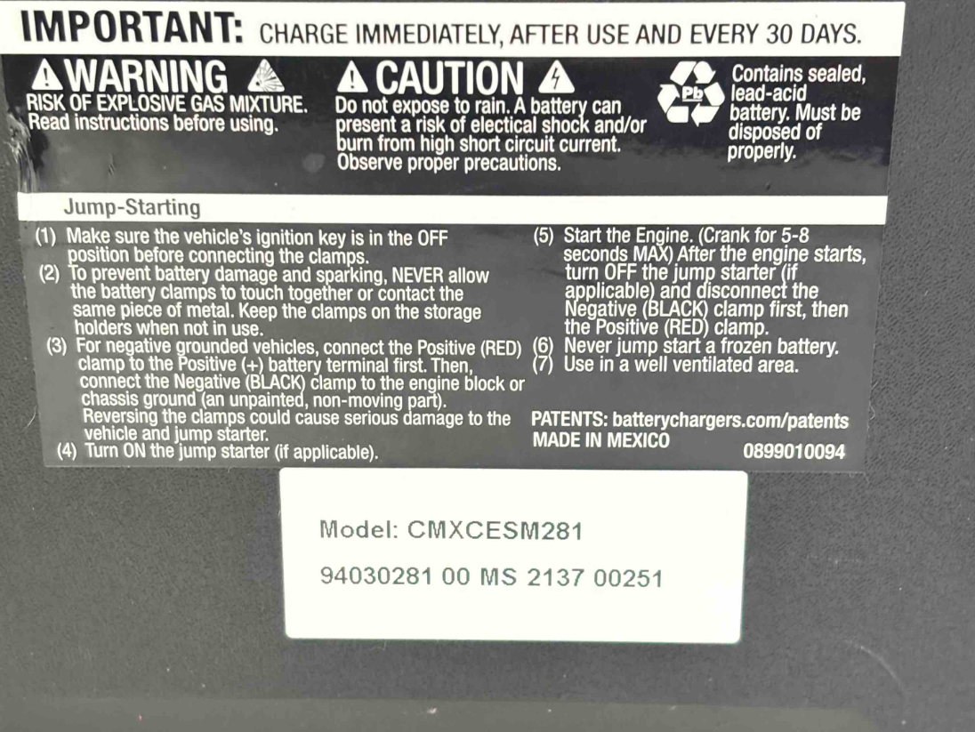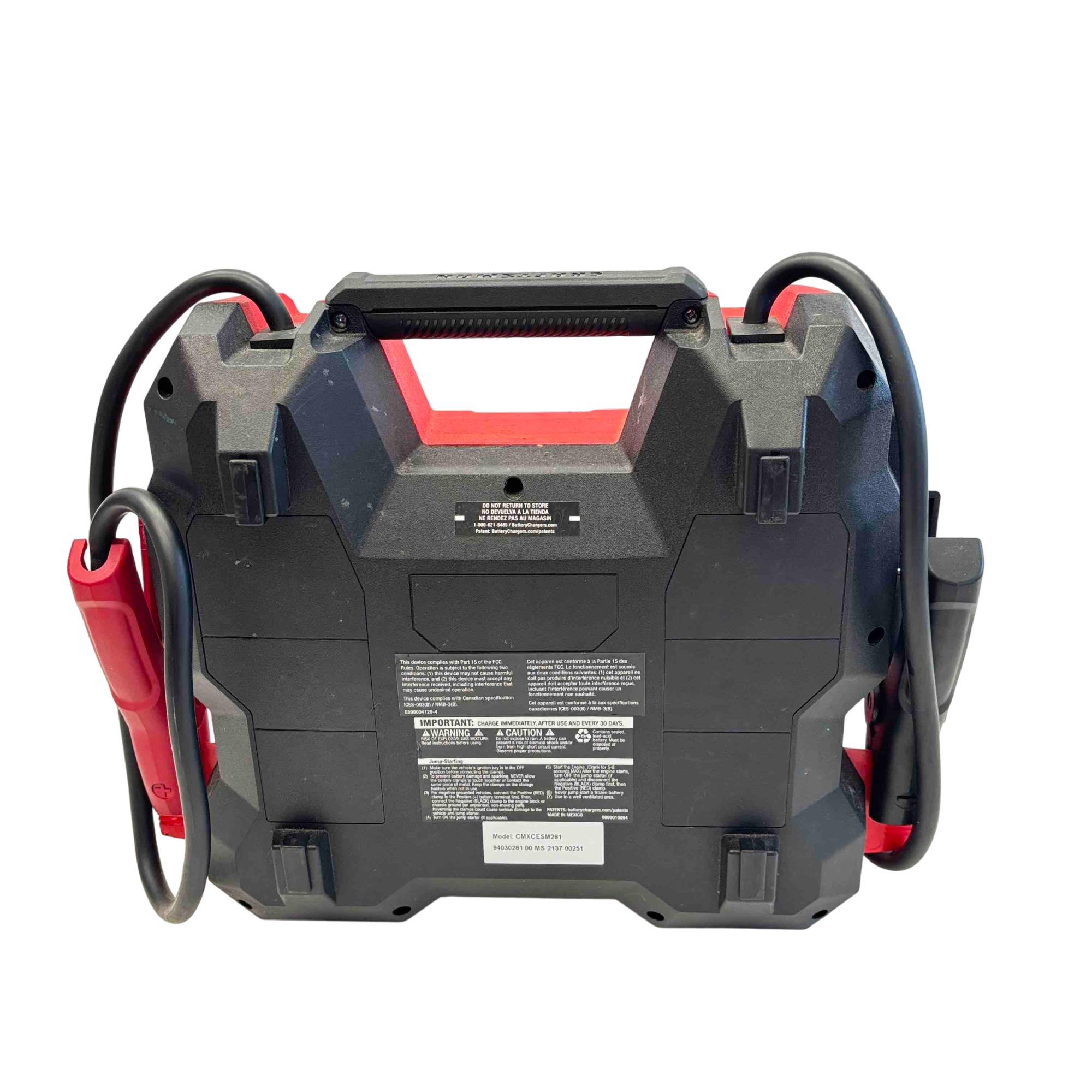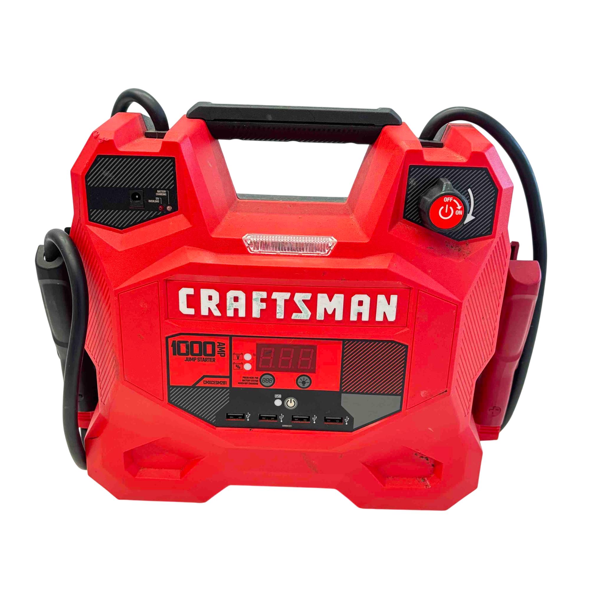 Introducing the Craftsman CMXCESM281, a robust 1000 Peak Amp Portable Jump Starter and Battery Charger. Perfect for your roadside emergency kit, this device ensures youre never stranded with a dead battery again. Featuring a digital display and easy-to-use controls, it offers quick power when you need it the most, keeping you confident on the road.