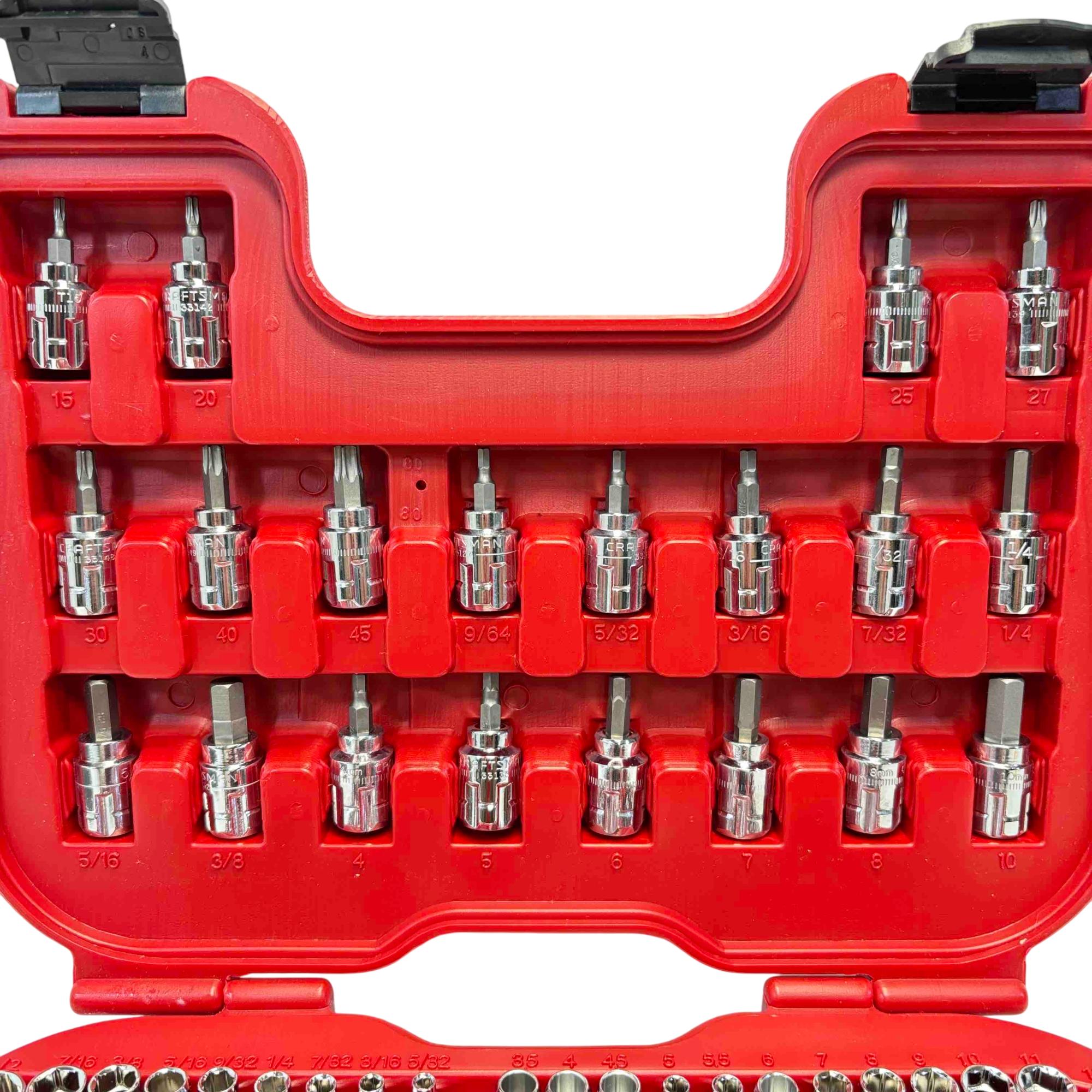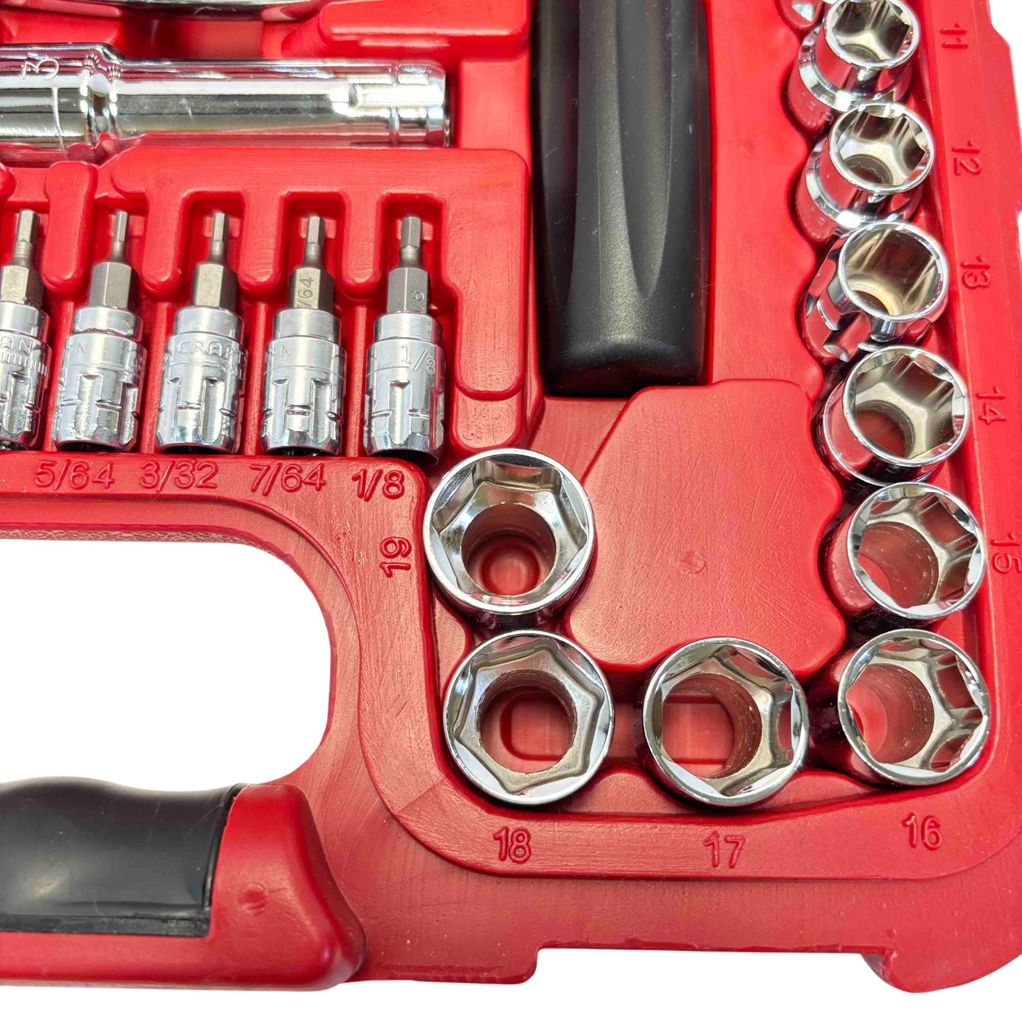 Conquer tight spaces and long bolts with the versatile Craftsman Max Axess 80-Piece SAE & Metric Pass-Thru Socket and Ratchet Set 32820. This innovative system features pass-thru sockets that eliminate the need for deep sockets, allowing fasteners to pass completely through the ratchet head for exceptional clearance. The comprehensive 80-piece set includes SAE and Metric sizes, plus Torx and hex bits, all designed with a durable, low-profile build to tackle a wide variety of automotive and home repair projects with ease.