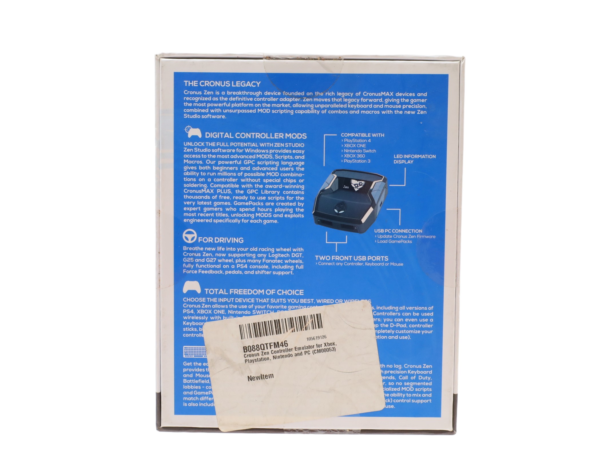 Allows gamers to use their favorite controllers across a wide range of platforms including Xbox Series X|S, Xbox One, Xbox 360, PlayStation 5, PlayStation 4, PlayStation 3, Nintendo Switch, and Windows PC. It supports a variety of controllers from Xbox, PlayStation, and Nintendo, as well as keyboard and mouse connectivity for Windows PCs. This device offers advanced features like crossover platform gaming, precision for keyboard and mouse users, and a robust scripting capability for creating combos and macros with the Zen Studio software. The Cronus Zen enables users to enhance their gaming experience by utilizing various mods and scripts available from the Cronus Community, catering to numerous popular games and gameplay styles.