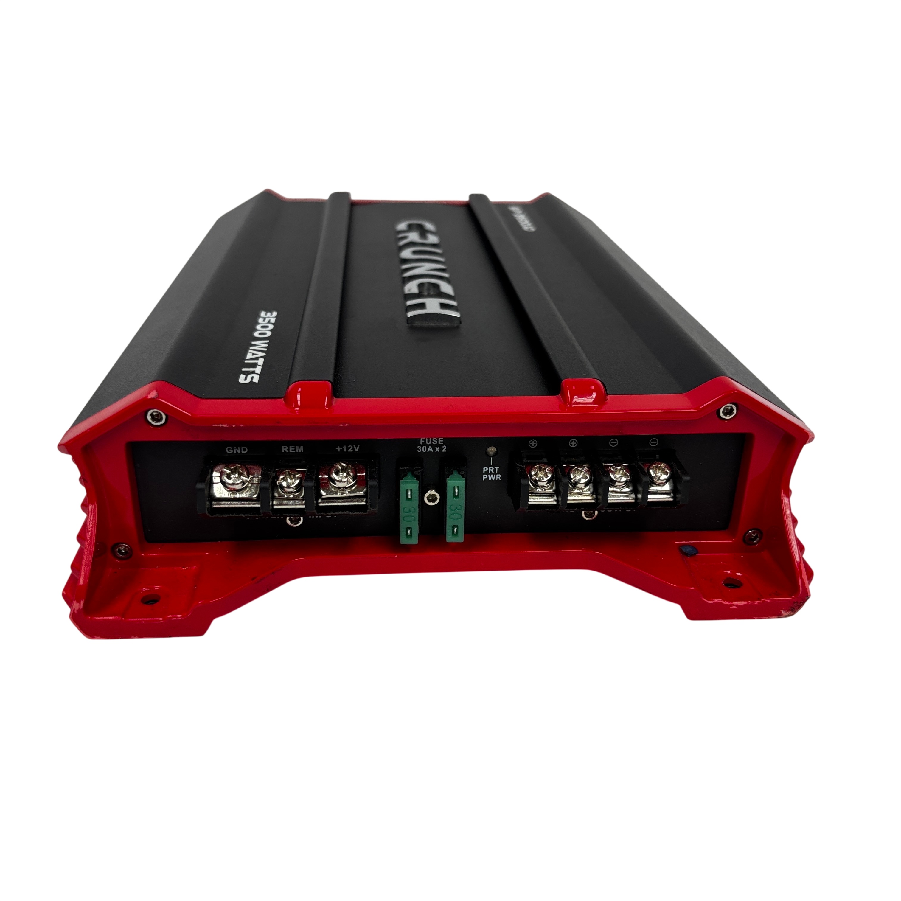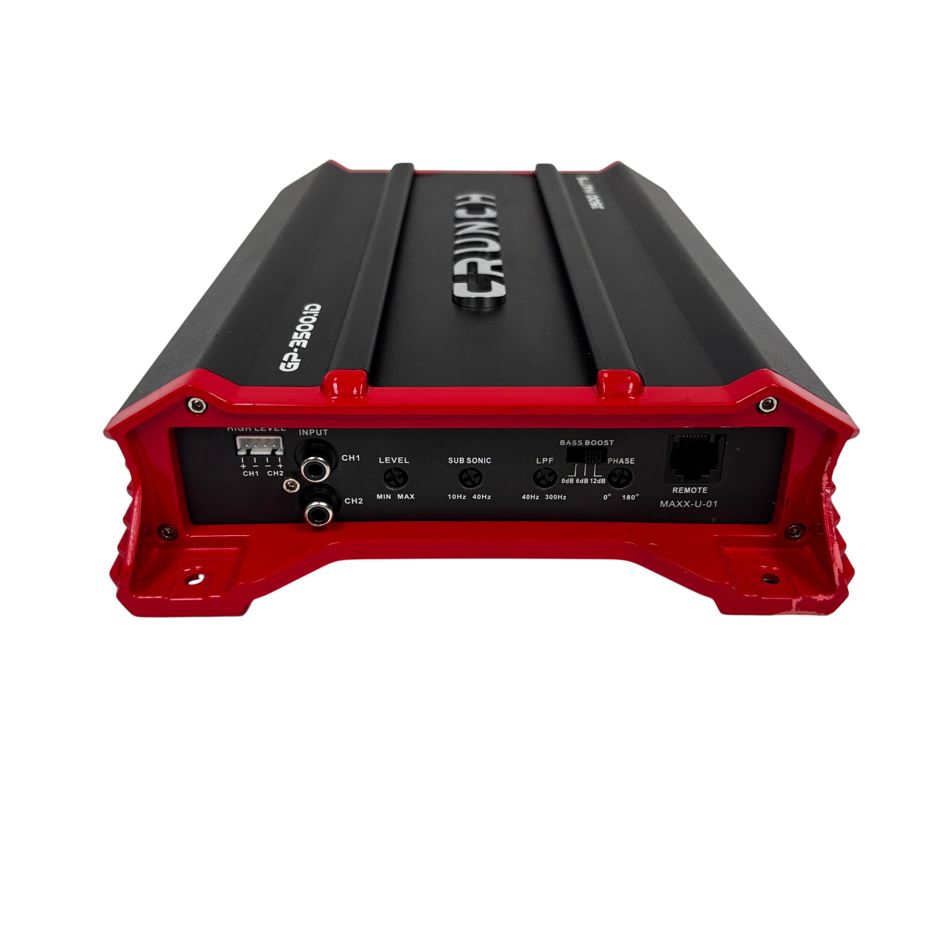 This Crunch GP-35001D 3500 Watts Audio Amplifier delivers powerful sound performance with a sleek black and red design. This amplifier is perfect for enhancing your car audio system, providing robust power output and high-level inputs for versatile connectivity. Its compact size makes it easy to install in various setups, while the bass boost feature ensures deep, rich sound quality. Ideal for audio enthusiasts looking to upgrade their in-car sound experience.