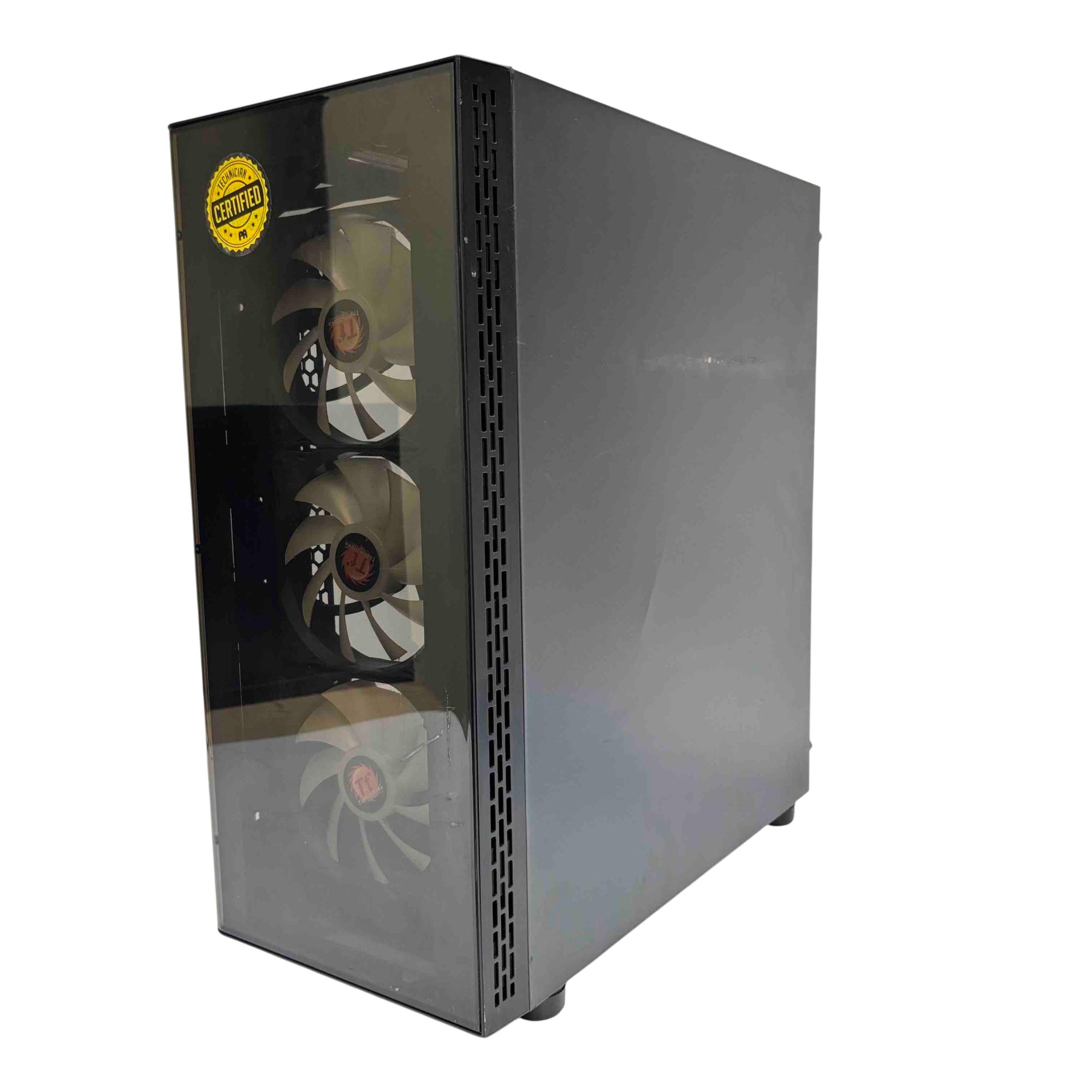 Elevate your gaming experience with this custom-built gaming PC featuring a stylish Thermaltake tempered glass case and powerful airflow from three front-facing fans. Equipped with an AMD Ryzen 5 1400 processor, 16GB of RAM, and a Radeon RX 6600 graphics card, this system delivers smooth performance for modern games and multitasking. Perfect for gamers who demand both looks and power at an affordable price.