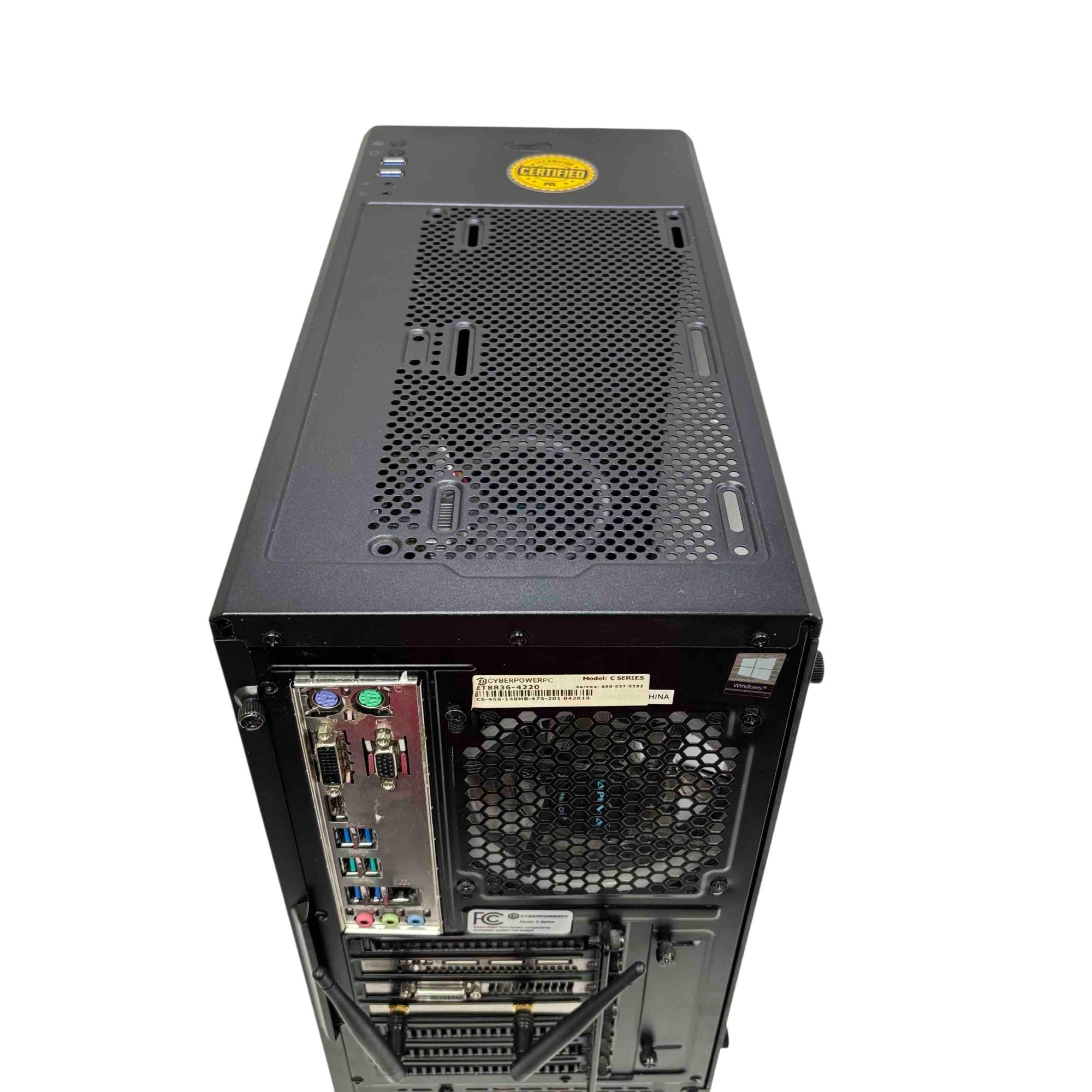Unleash your computing potential with the CyberPowerPC C Series Desktop. Featuring a sleek, black design with a clear glass panel, this powerhouse machine is perfect for gamers and professionals alike. Equipped with top-notch components and innovative engineering, it ensures incredible performance and reliability for all your computing needs.