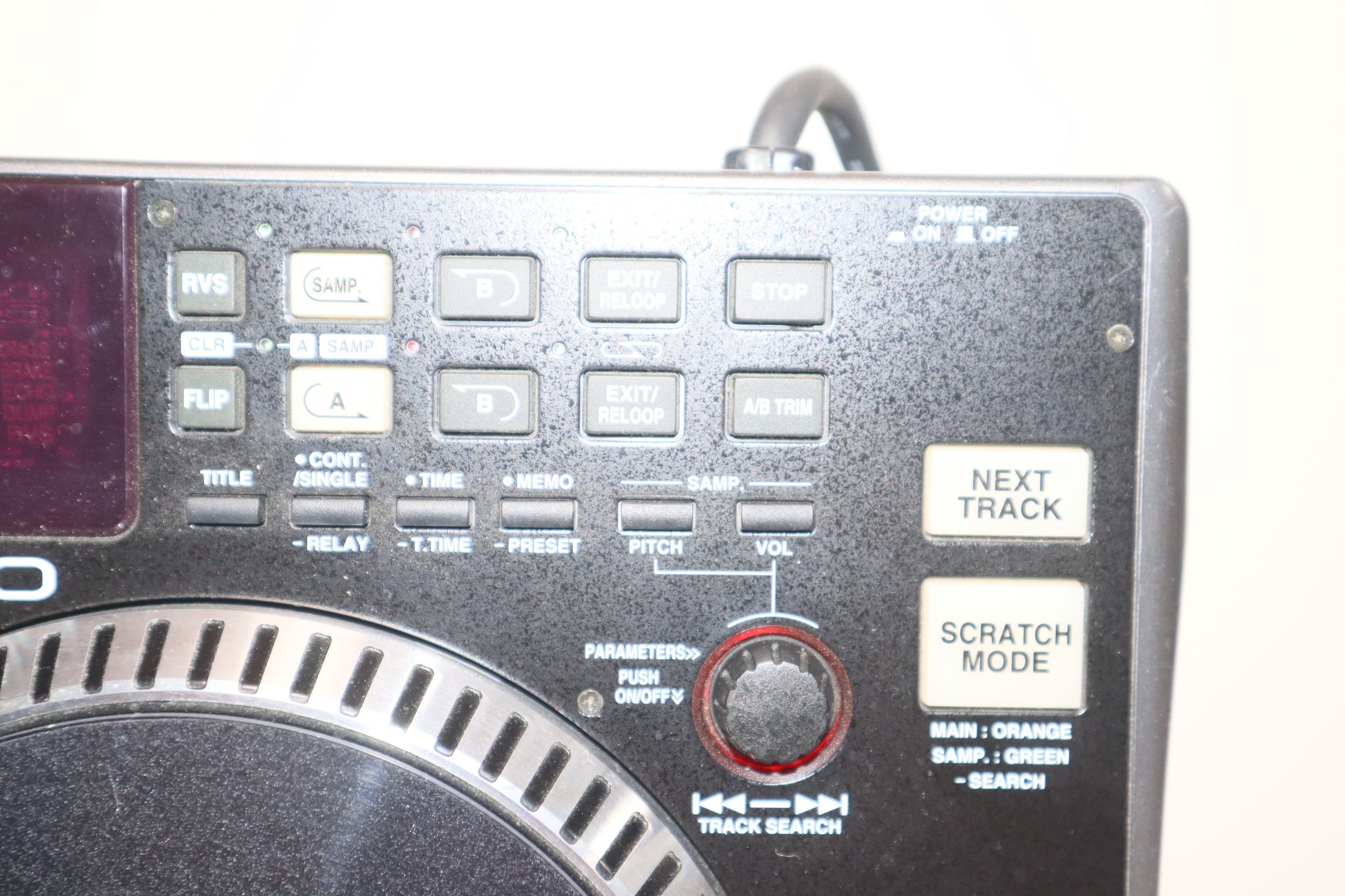 Control your MP3s and CDs as if they were vinyl. 7-1/2" motor-driven active platter feels like you're spinning analog and a vinyl adapter even lets you put a real 45 on for still more natural feel. Scratch MP3s like any other CD. 2-way scratch lets you select either main track or sampler as the source. Supports MP3 functions including seamless looping, scratching with active platter, hot start, A-B trim, CBR and VBR encoding up to 320 KBPS, ID3 tags and displays, and also provides a world's first unique MP3 file search system that lets you find songs by name quickly. While an MP3 disc is playing, you can cue up another song on the same disc so it plays next. Customize the wheel with your own art by putting it beneath the clear scratch control disc. 15-second sampler, CD text support, memo link system to connect 2 DN-S3000s together, advanced platter effects, hot starts, sampler, power-on play, and much more make this one incredibly powerful and versatile digital scratch machine.