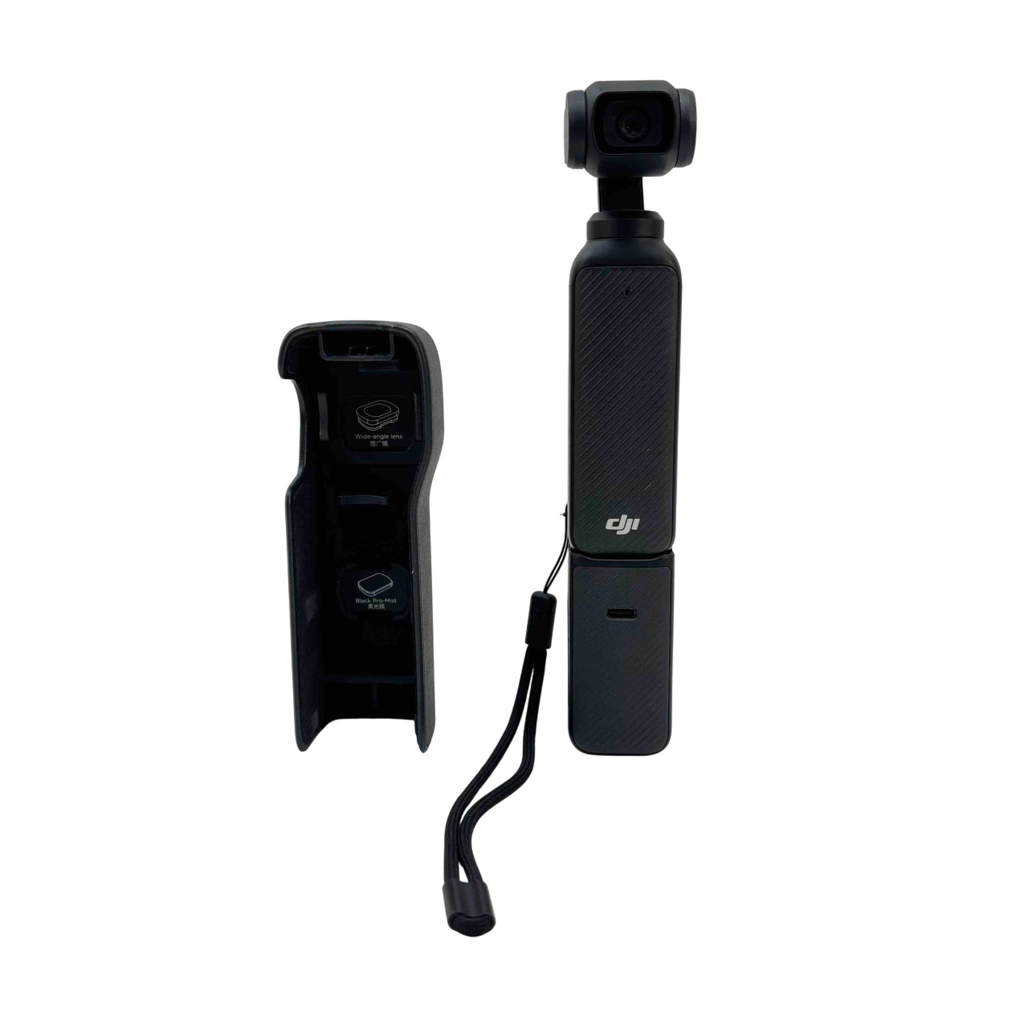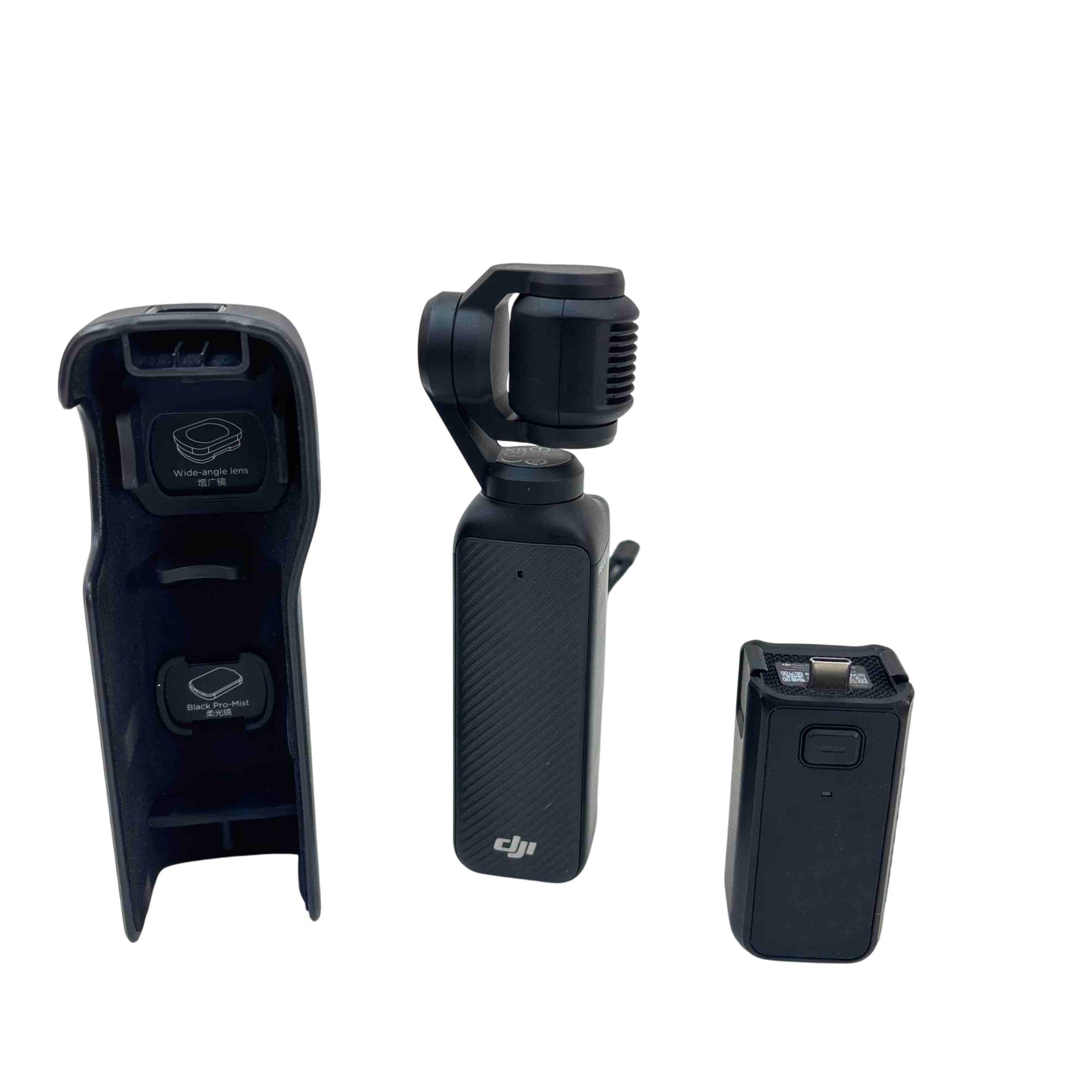 Capture smooth and professional-quality videos with the DJI Pocket 3 Osmo Gimbal Camera. This portable and stabilized handheld camera is perfect for content creators on the go, featuring a wide-angle lens with Black Pro-Mist for stunning visuals. Its compact design and battery handle make it easy to use, allowing you to shoot for extended periods without hassle.