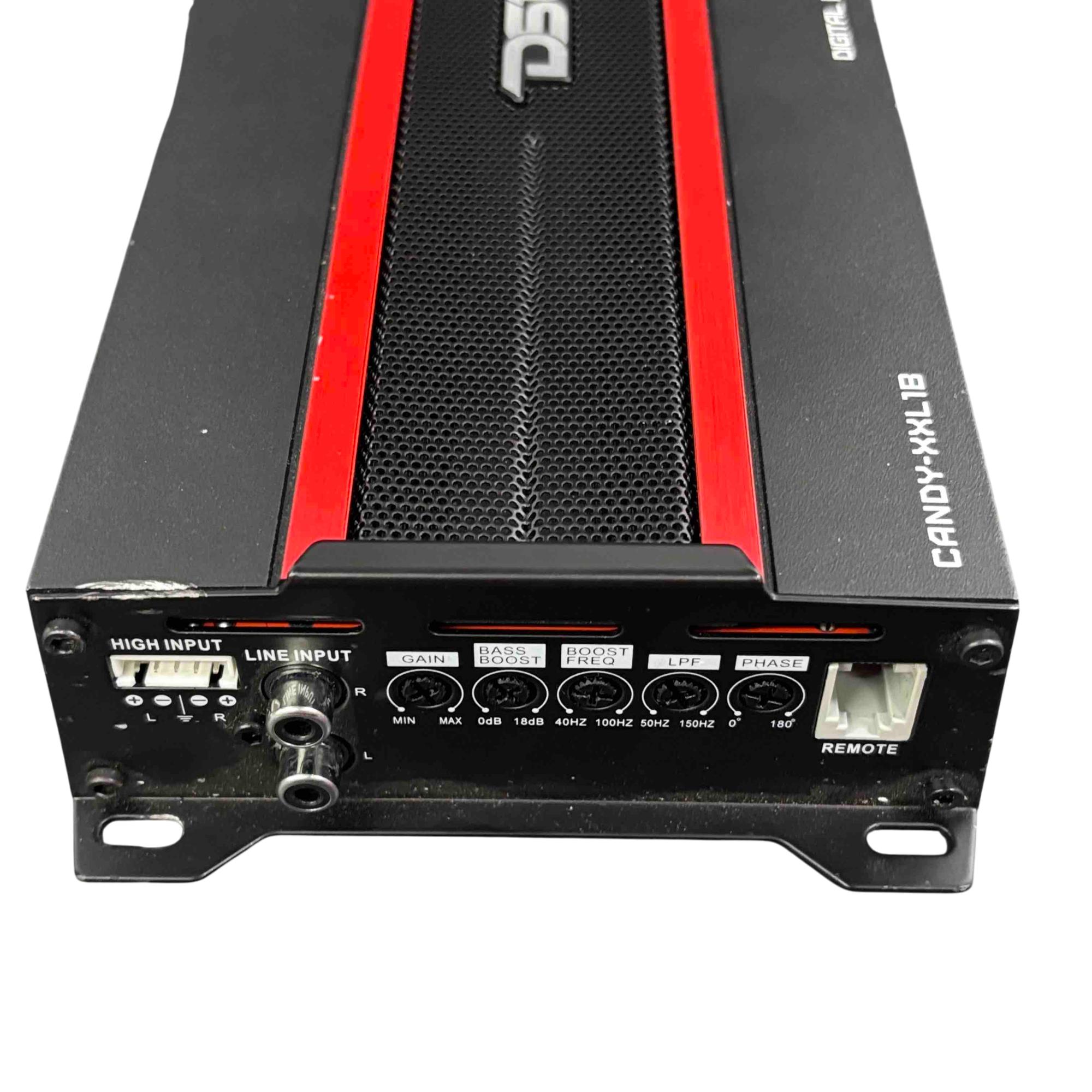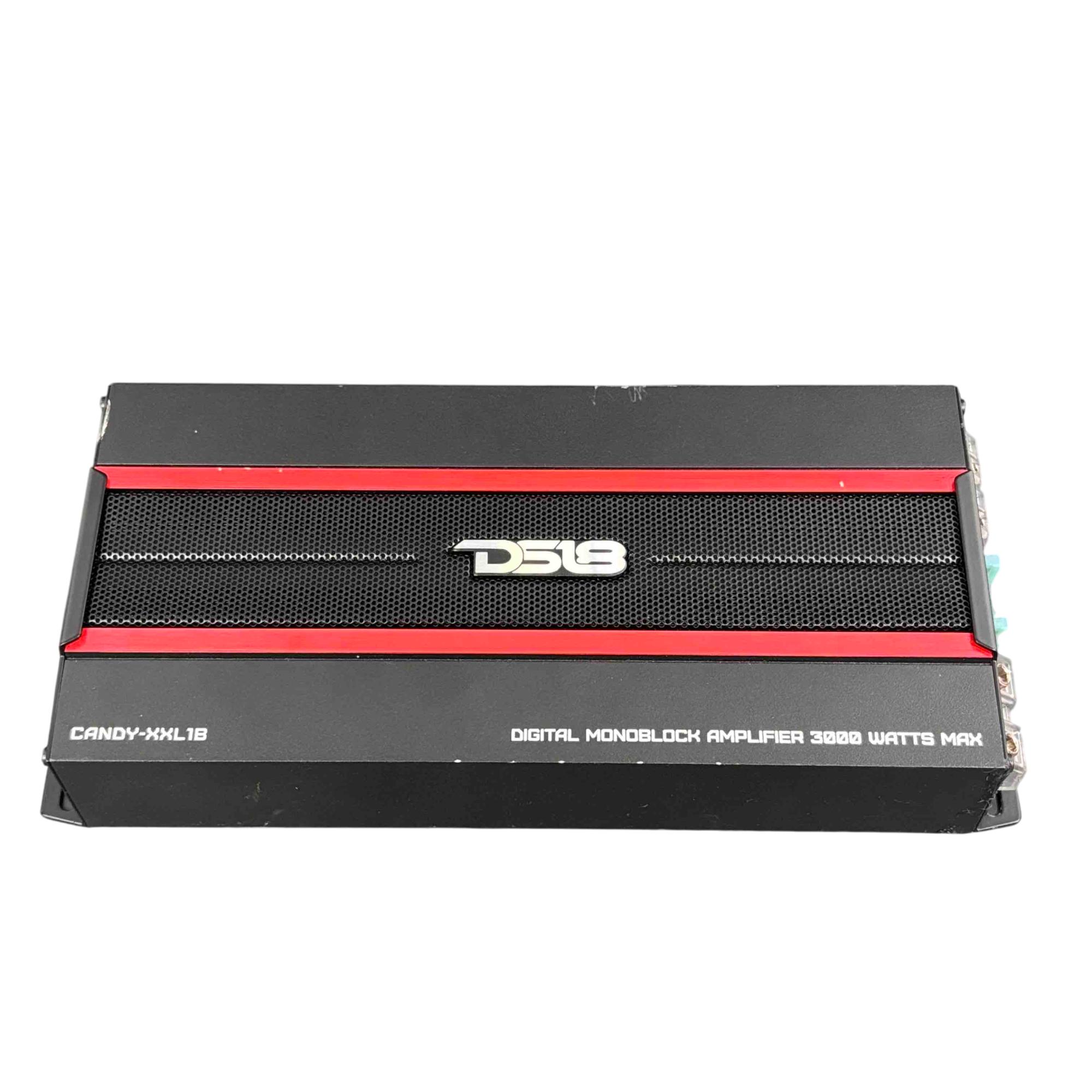DS18 CANDY-XXL1B Digital Monoblock Amplifier, 3000 Watts Max is a high-power car audio amplifier designed for superior sound performance. Featuring a sleek black and red design with a digital monoblock configuration, it delivers up to 3000 watts max power, making it ideal for driving subwoofers and enhancing bass output in car audio systems.