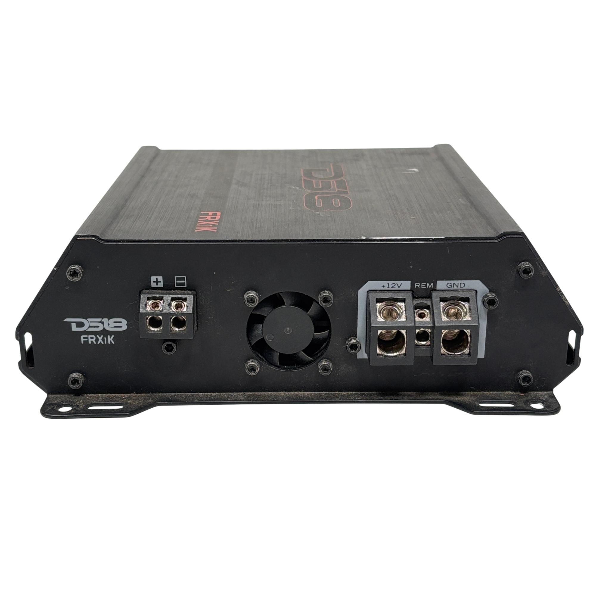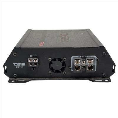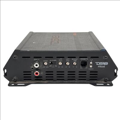 DS18 FRX1K Mono Amplifier 1 Channel 1000W RMS Full Range Class D delivers powerful and efficient audio amplification with its full range, Class D design. This black electronic device features multiple ports and controls including input, gain, crossover, and boost settings, making it suitable for automotive audio setups requiring high performance and precise sound tuning.