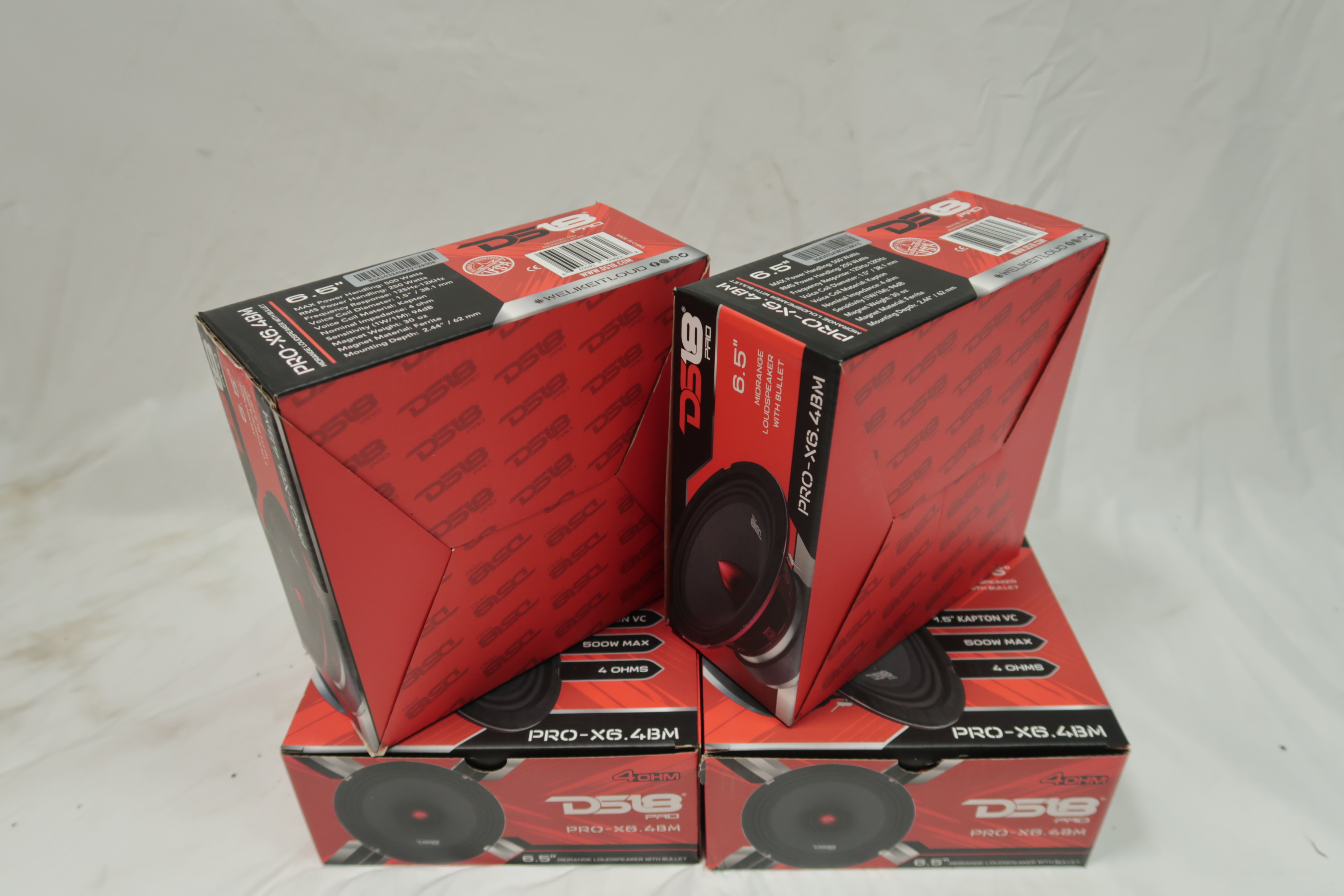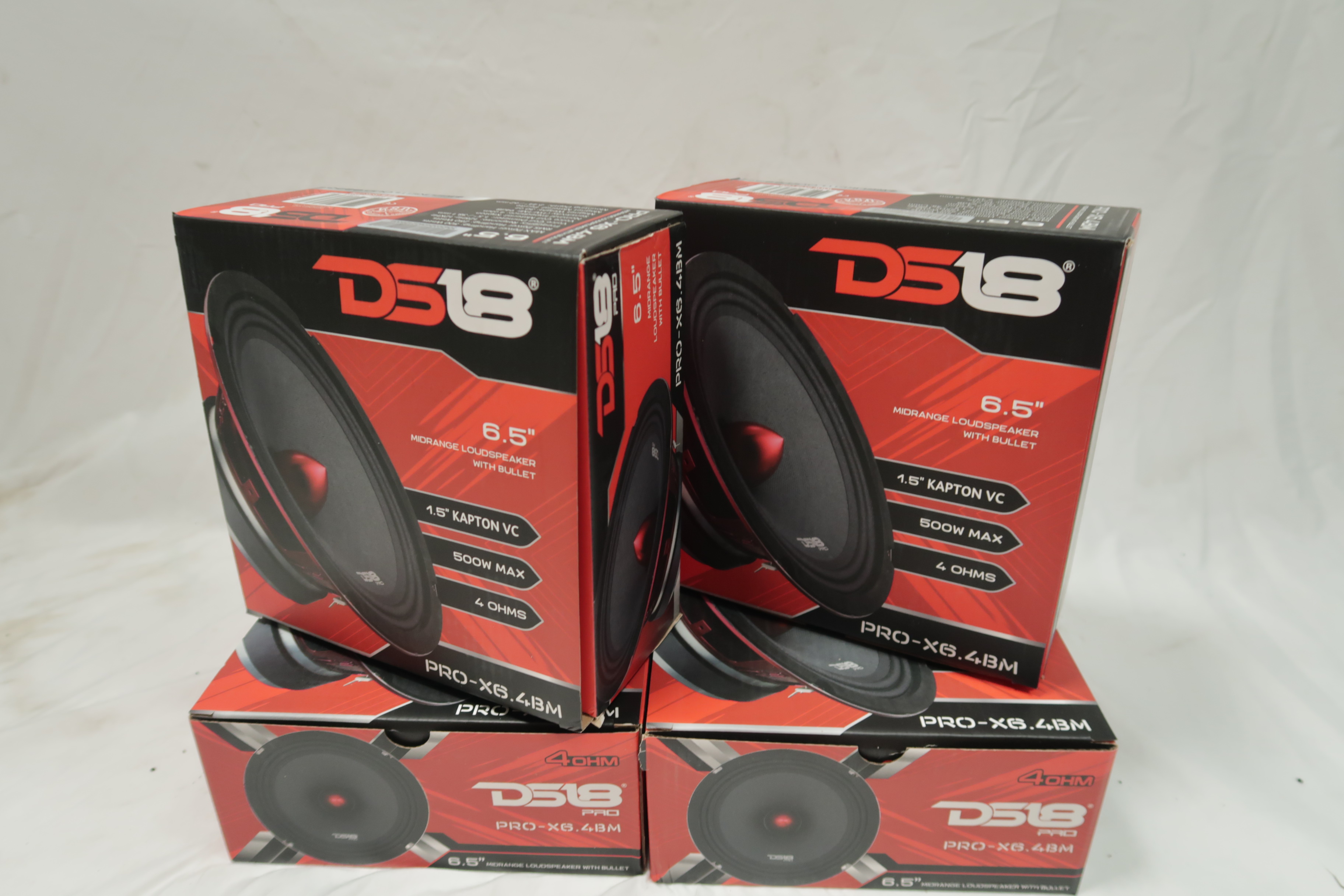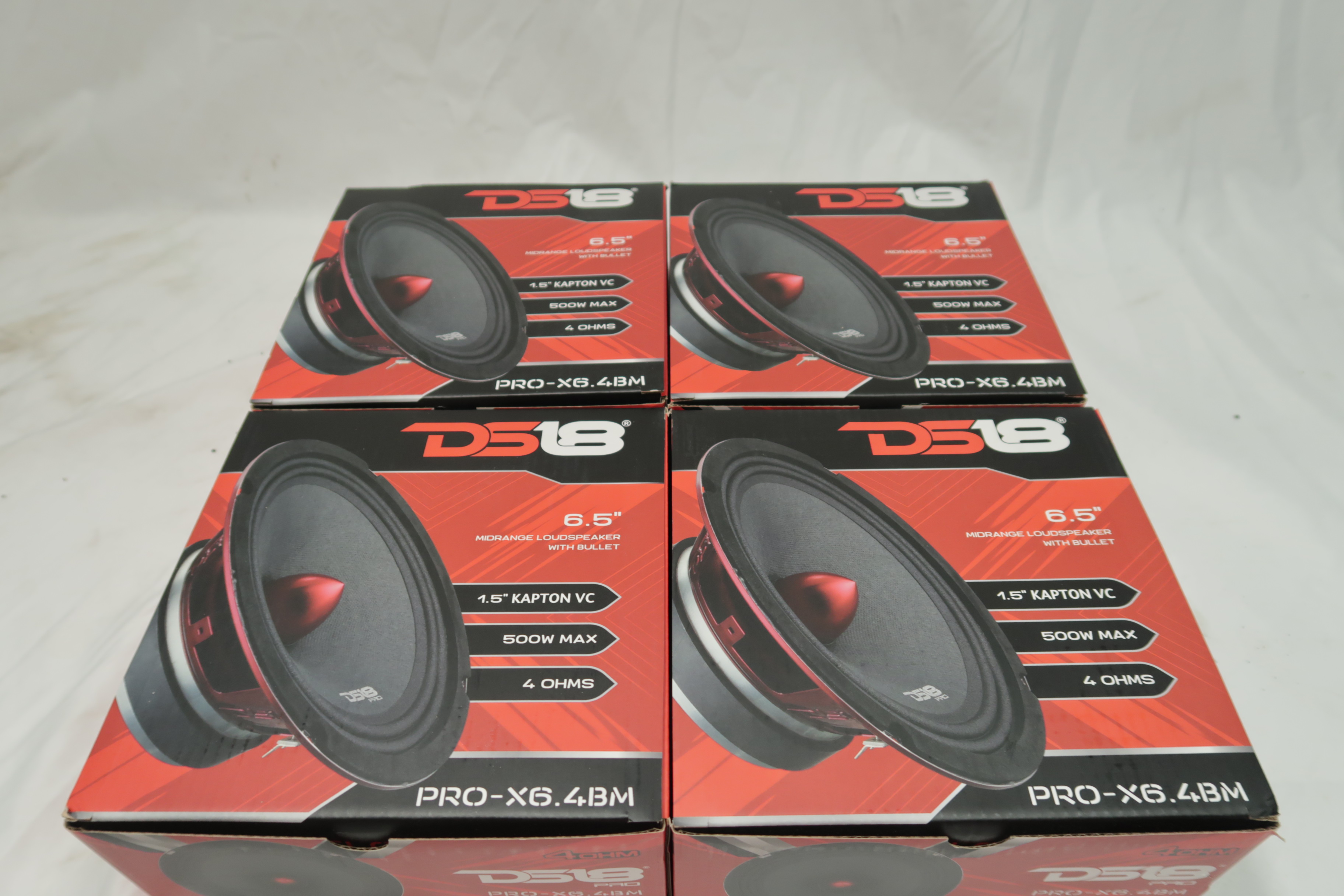 DS18 PRO-X6.4BM Loudspeaker - 6.5", Midrange, Red Aluminum Bullet, 500W Max, 250W RMS, 4 Ohms - Premium Quality Audio Door Speakers for Car or Truck Stereo Sound System