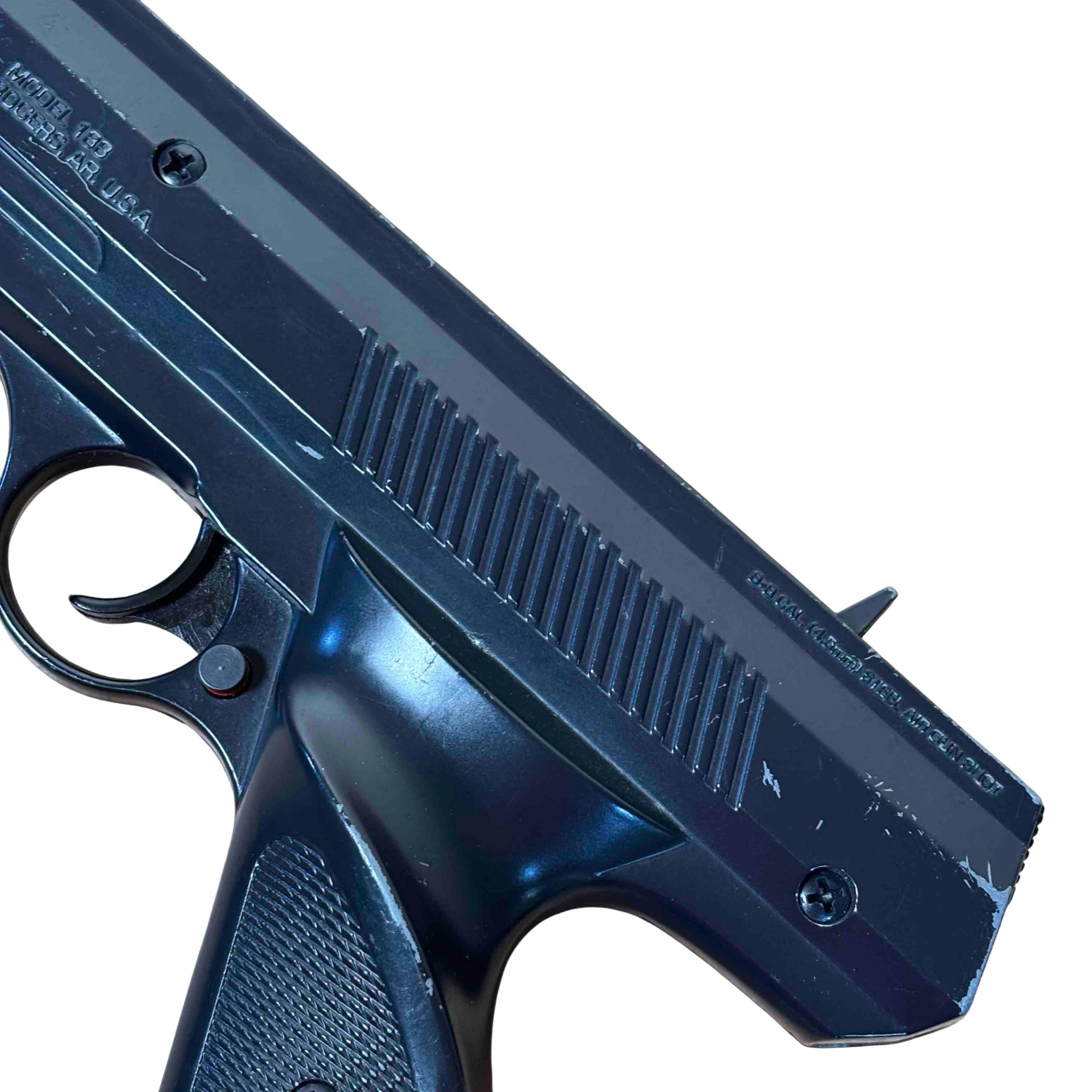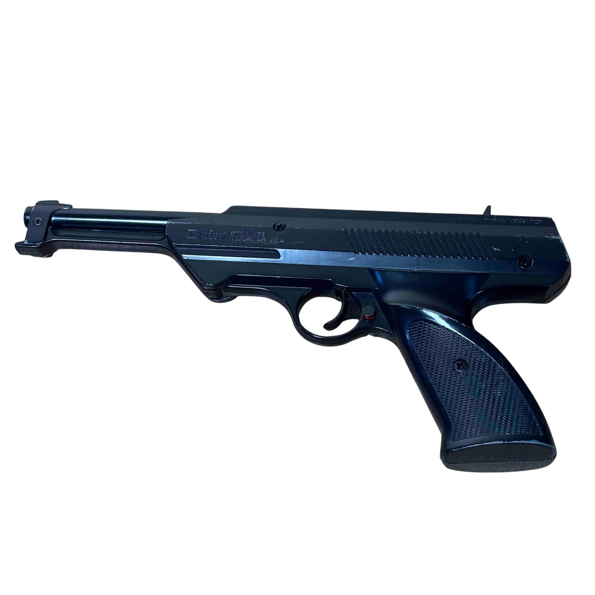 Experience precision and classic design with the Daisy Model 188 Air Pistol, a break-barrel BB gun built for target shooting enthusiasts. Manufactured in Rogers, Arkansas, this vintage .177 cal air pistol features a durable, all-black finish and an ergonomic handle for comfortable aim. Perfect for collectors or backyard plinking, it blends reliability with a timeless aesthetic.