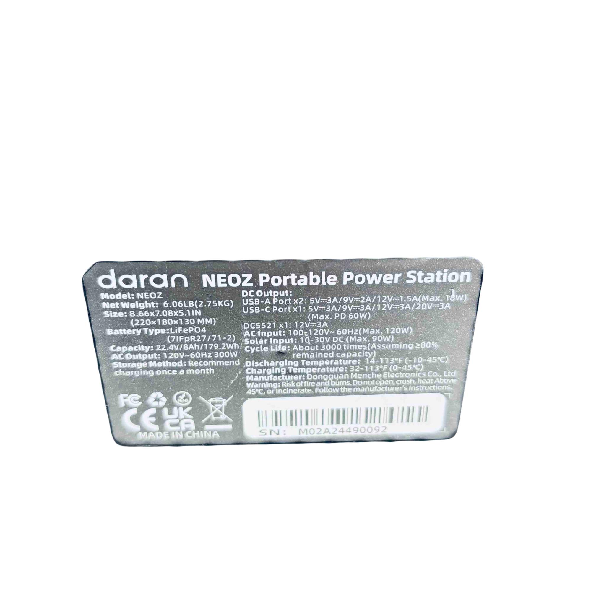 Unlock the power of on-the-go energy with the Daranener Neoz Portable Power Station. Equipped with a robust 300W output and a durable LifePO4 battery, this compact unit offers 179.2Wh of capacity and multiple output ports to keep all your devices charged wherever you are. Whether youre camping, traveling, or facing an emergency power outage, the Neoz is your reliable energy companion.