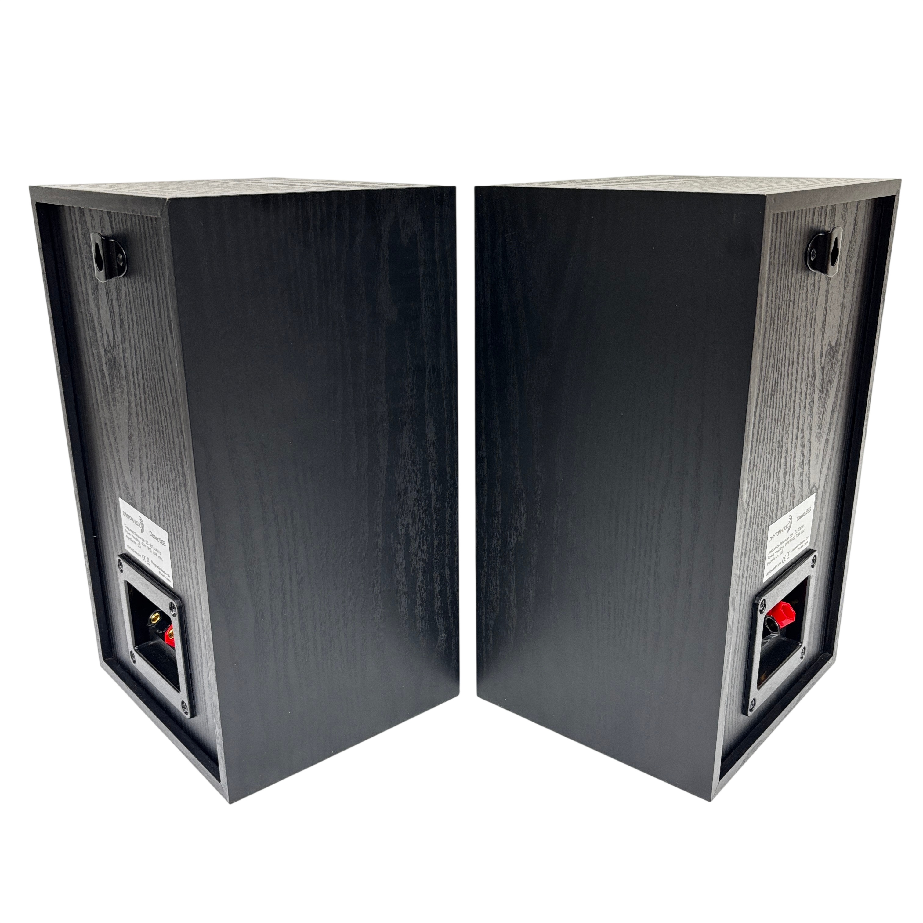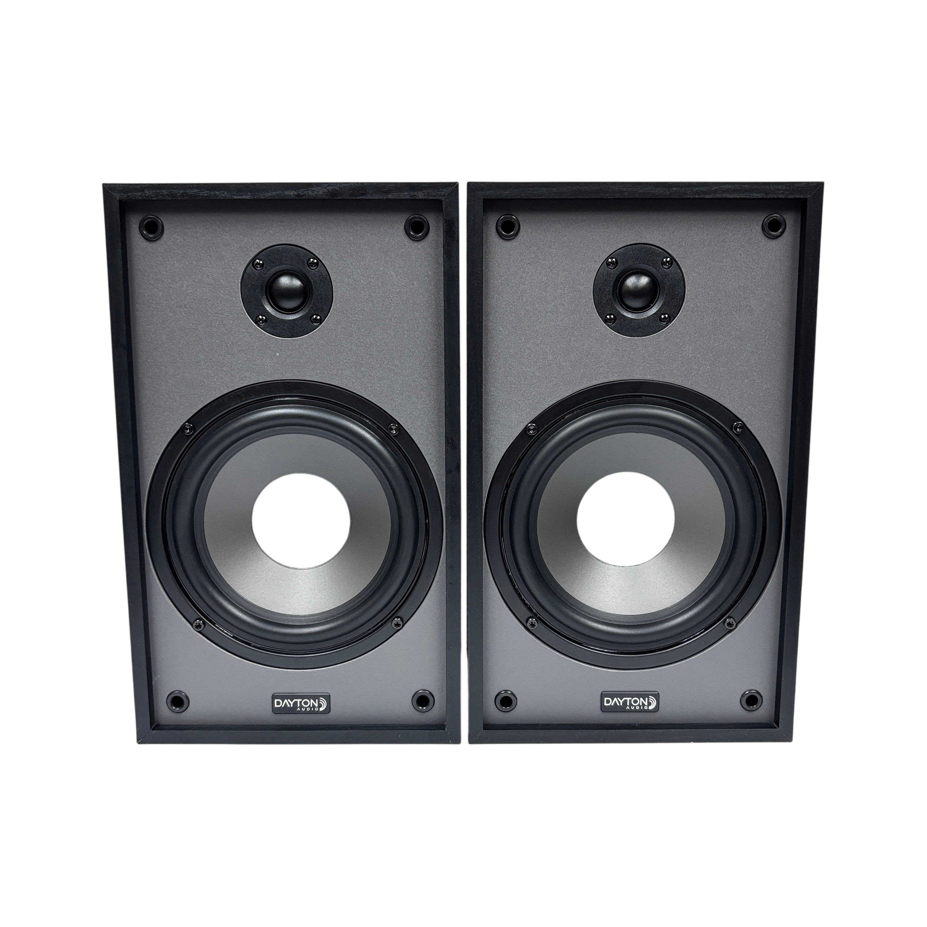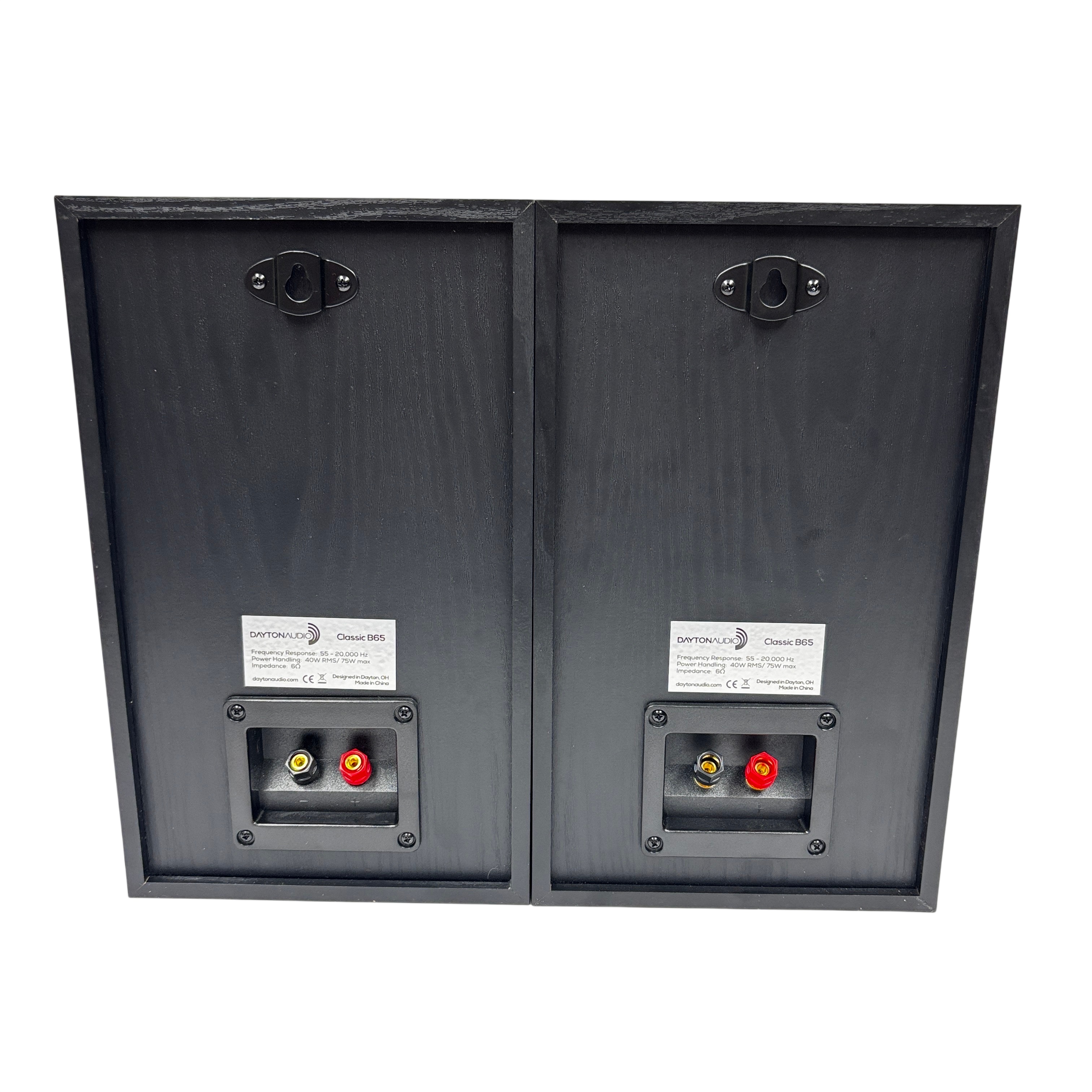 These Dayton Audio Classic B65 2-Way Bookshelf Speakers deliver clear, balanced sound with a 6.5 inch woofer and 1 inch dome tweeter housed in a sealed wooden enclosure with a black wood grain finish. These speakers feature spring clip terminals for easy connection and are designed for use in home audio setups, offering a frequency response from approximately 50 Hz to 20 kHz and a power handling capacity of up to 100 watts RMS. Compact and stylish, the Dayton Classic B65 speakers are ideal for enhancing your stereo or home theater system with quality sound in a bookshelf-friendly size.