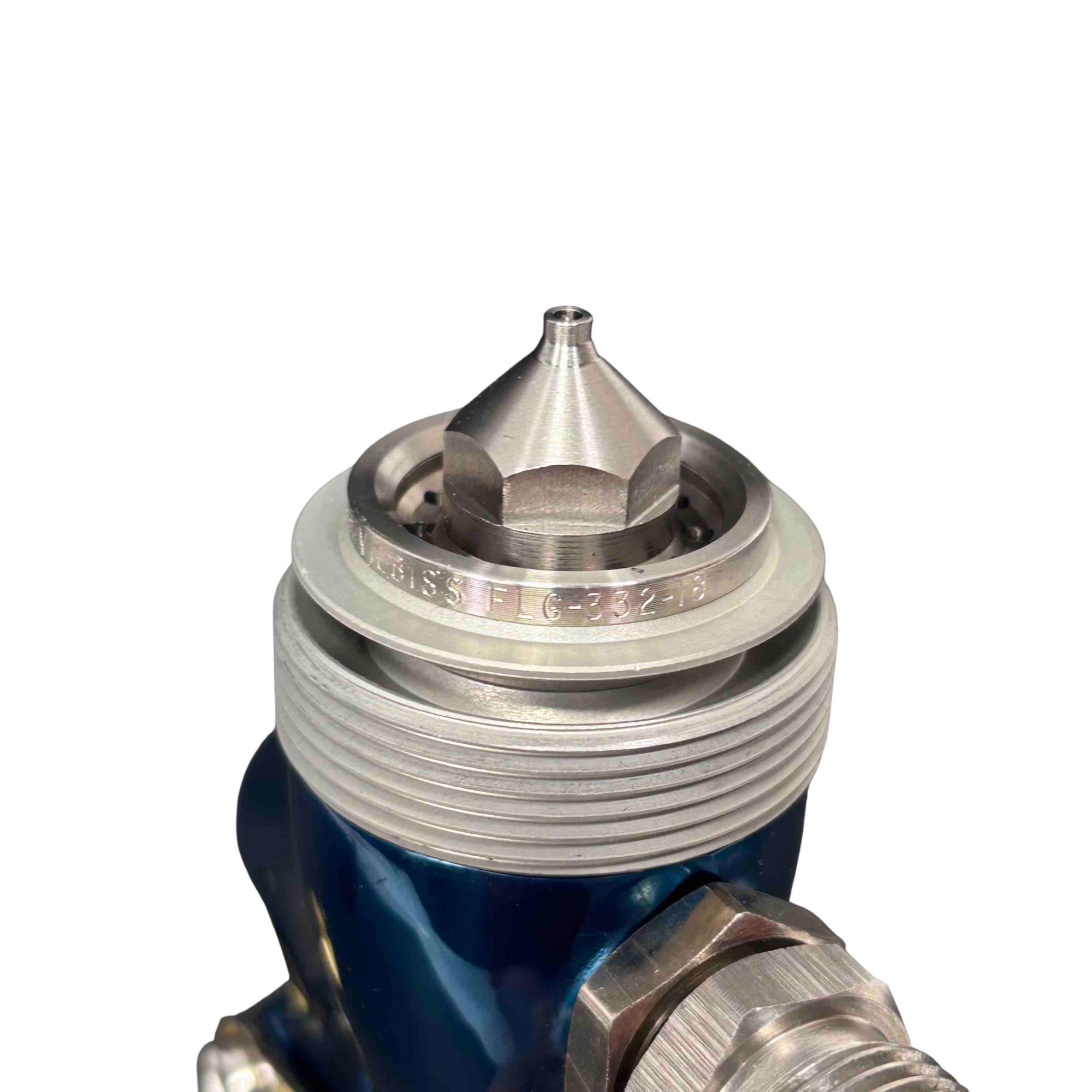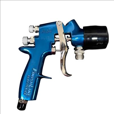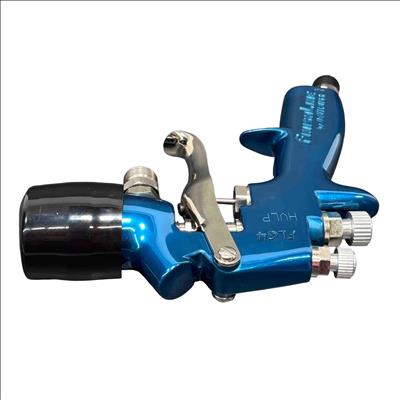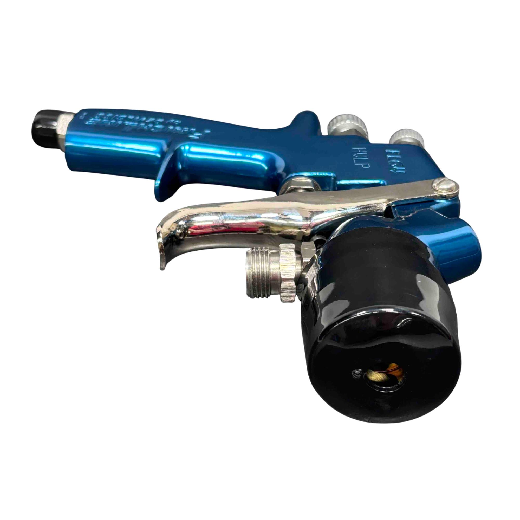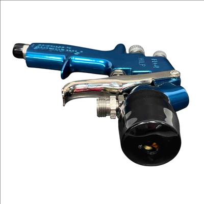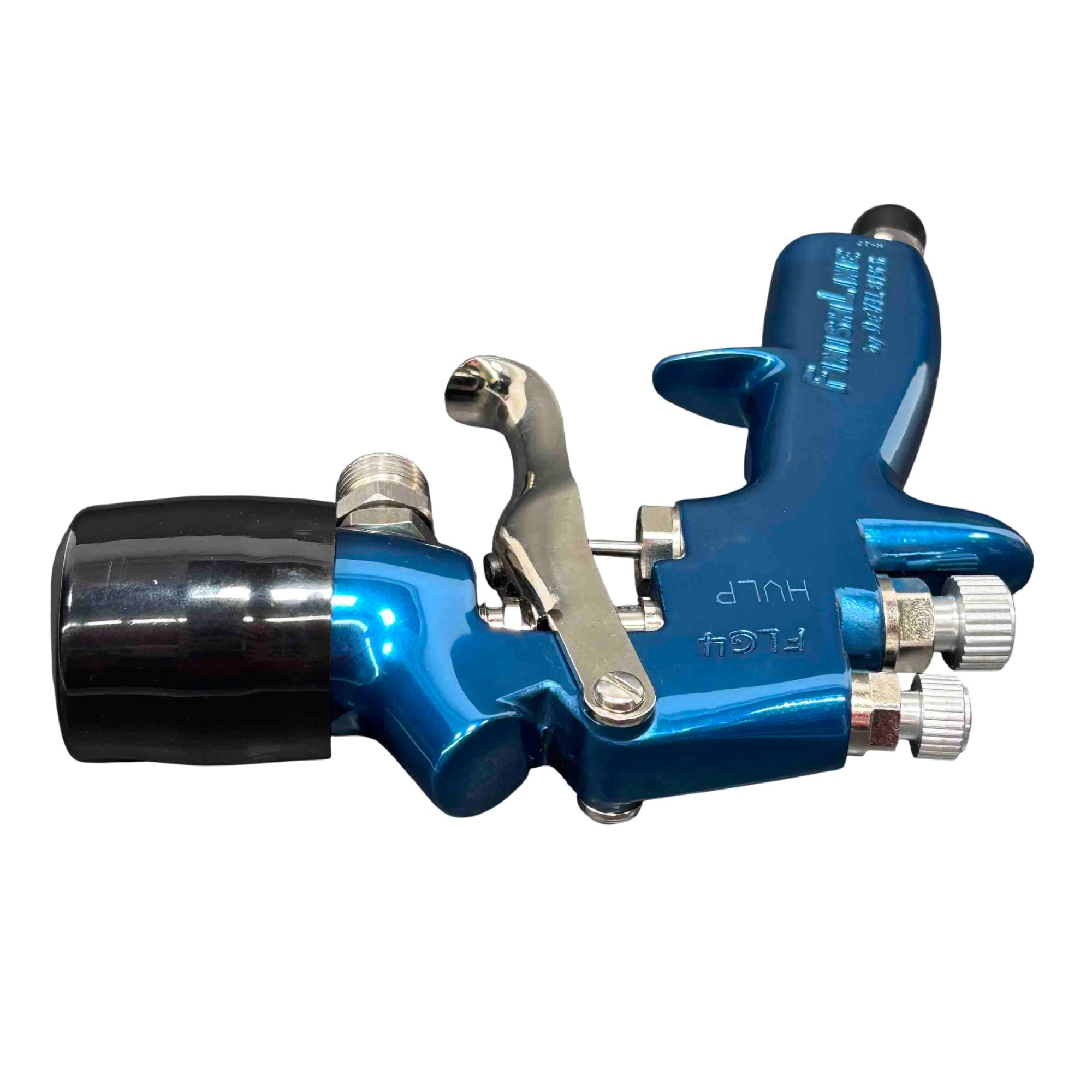 The DeVilbiss FinishLine FLG-4 HVLP Gravity Feed Spray Gun delivers precise and efficient paint application with its high volume, low pressure design. Engineered for professional use, this spray gun features a durable blue and silver metal body, optimized for smooth finishes and reduced overspray in automotive and industrial painting projects.