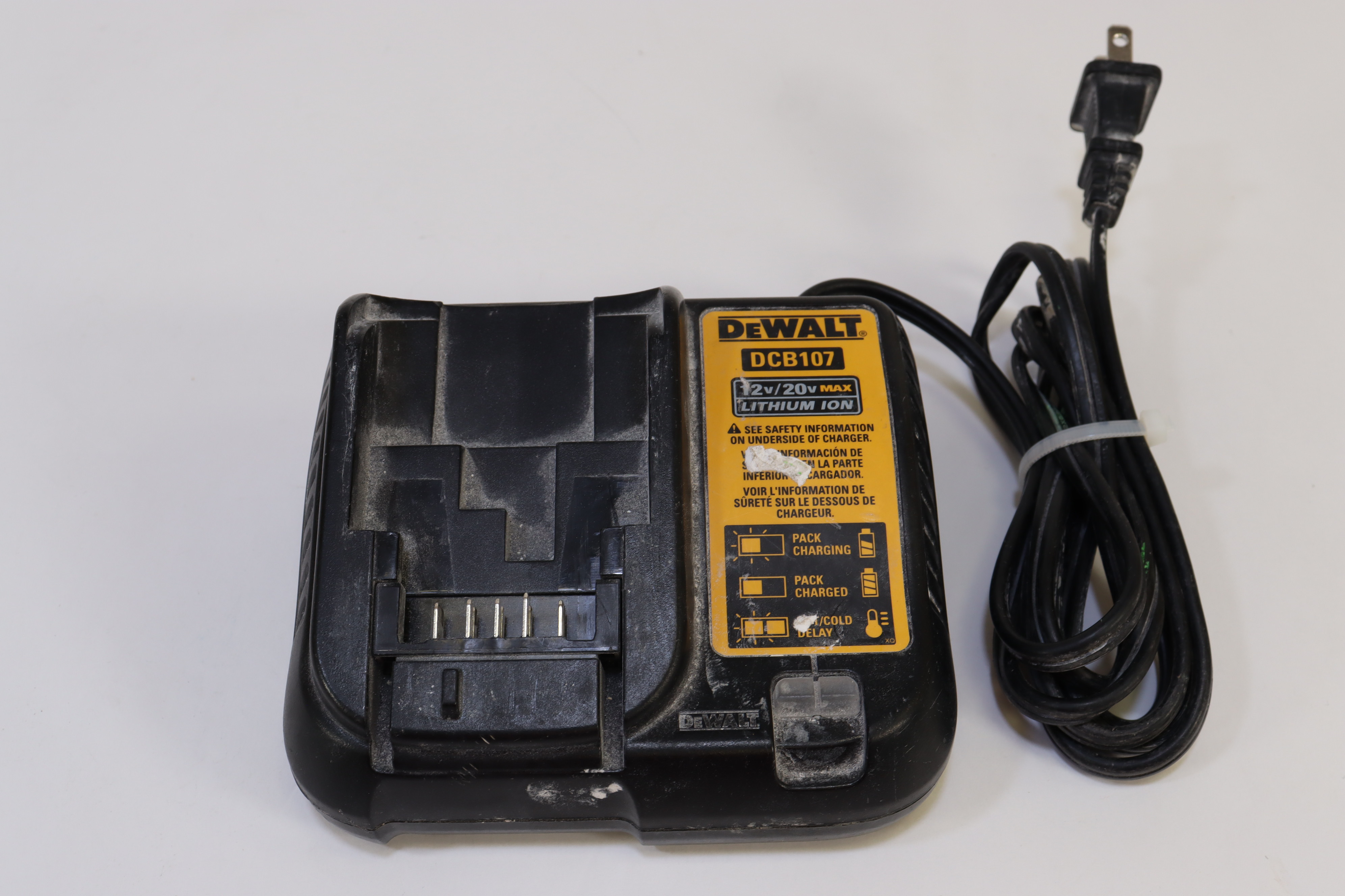 This DeWALT DCB107 12V/20V MAX Lithium Ion Charger is previously owned and used. It is in good condition with signs of use and wear. See photos for details.