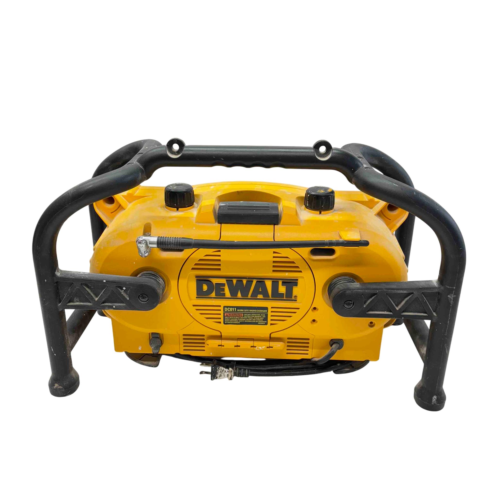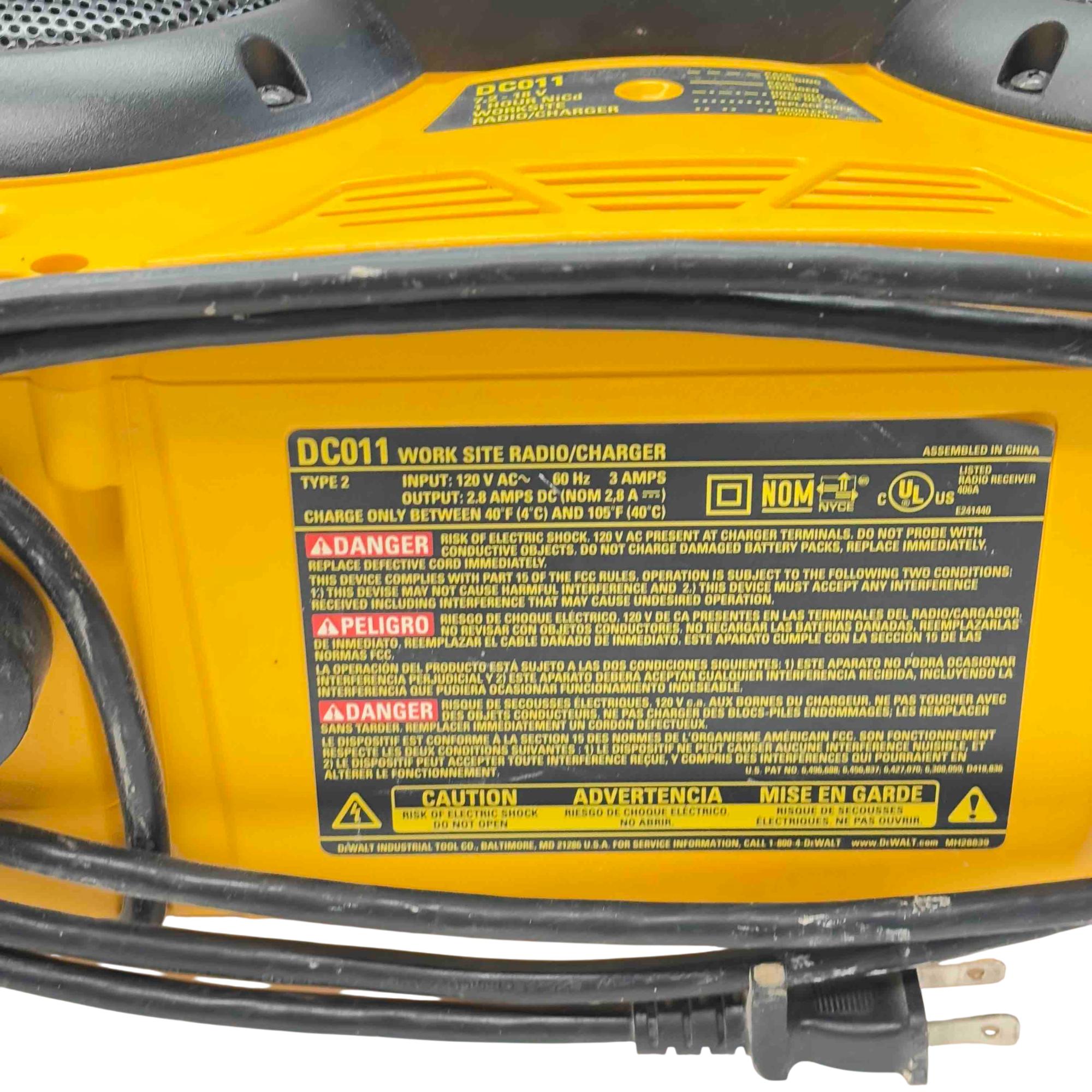 The DeWalt DC011 Worksite Job Radio/Charger is your ultimate rugged companion on any jobsite. With dual voltage compatibility and the ability to charge power tools, this device not only blasts your favorite tunes but also powers your work essentials. Its durable yellow and black design ensures it stands up to the toughest conditions while keeping you entertained and productive.