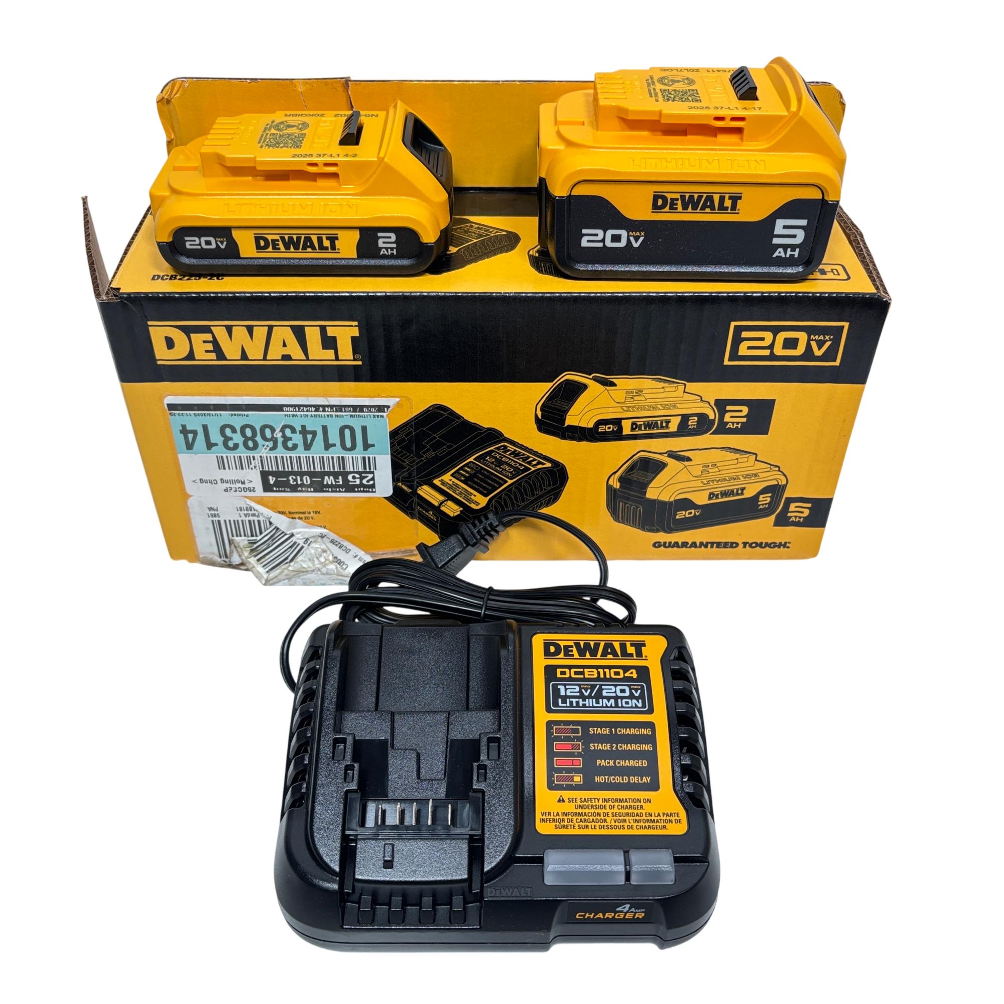 DeWalt DCB225-2C 20V MAX Lithium-Ion Battery Kit features high-capacity 5.0Ah and 2.0Ah batteries designed for extended runtime and enhanced performance. The kit includes a durable charger compatible with 12V and 20V MAX battery platforms, optimized for efficient and safe charging cycles. This combination supports a wide range of DeWalt power tools, ensuring reliable power delivery and versatility on demanding job sites.