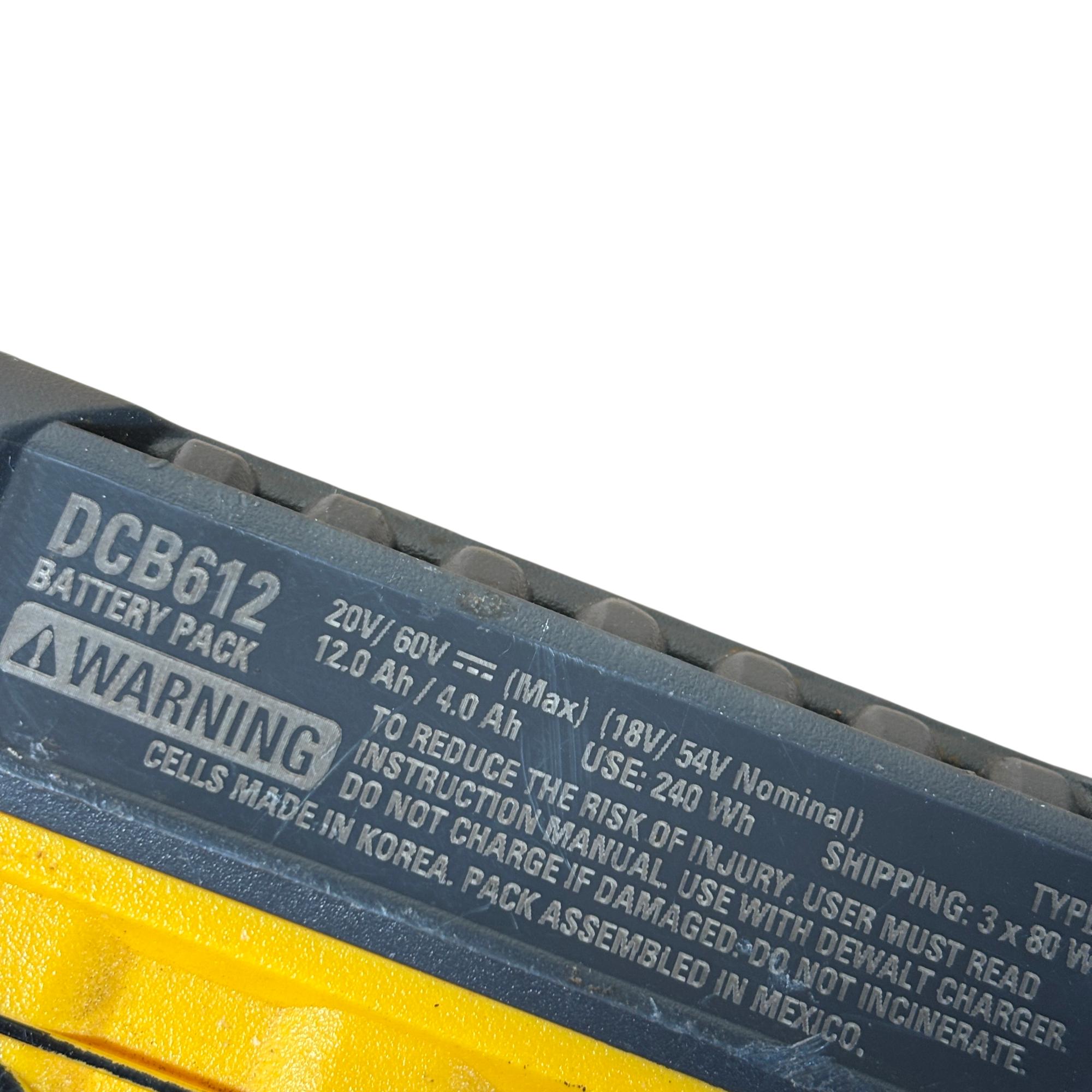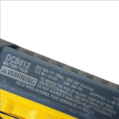The DeWALT FLEXVOLT DCB612 is a 20V/60V MAX 12.0Ah Lithium-Ion Battery. This high-capacity battery is designed for powerful performance and is compatible with DeWALTs FLEXVOLT system. Experience extended runtime for your DeWALT tools with this advanced lithium-ion power source.