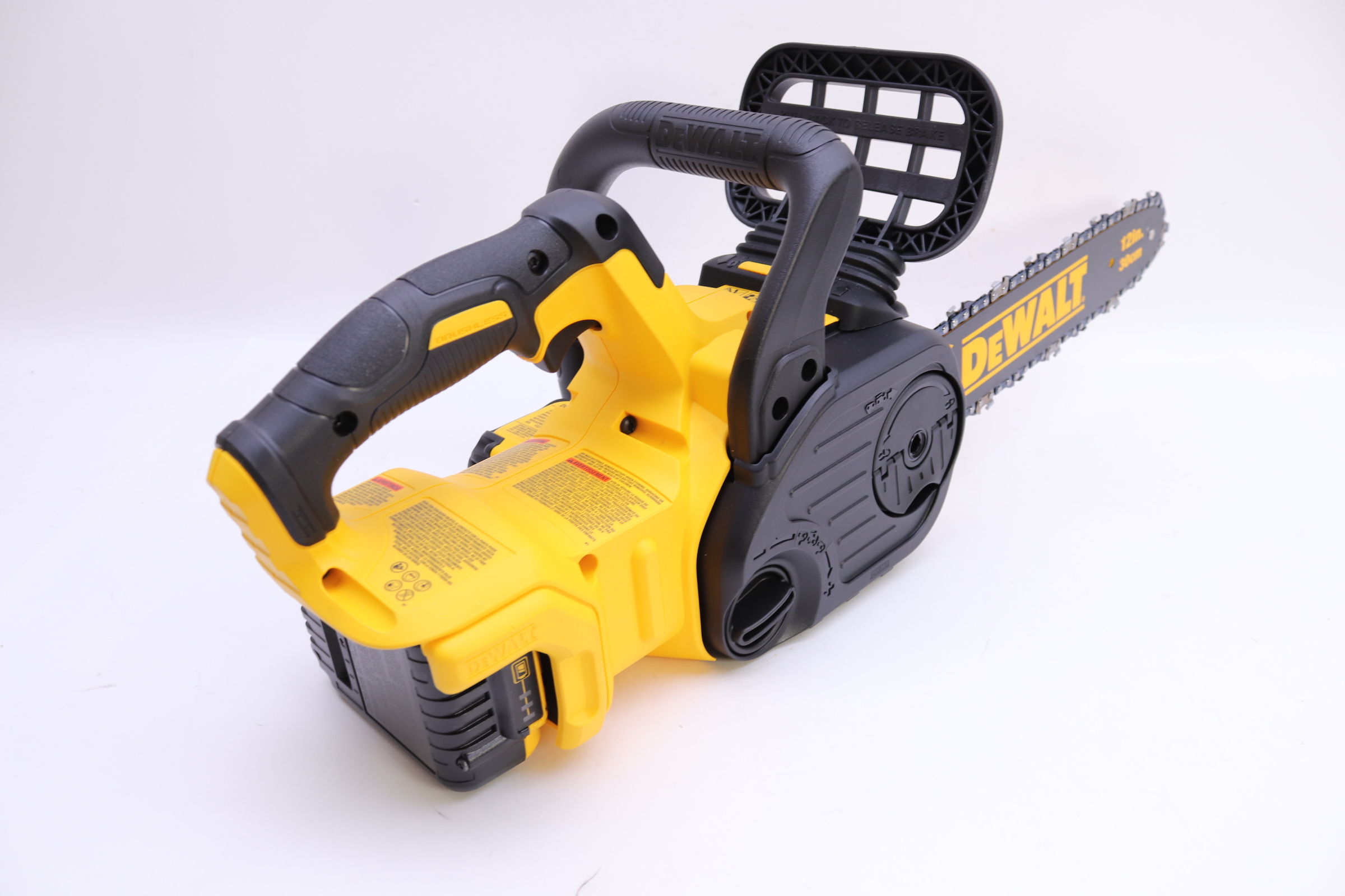 This cordless chainsaw is built to handle tough construction and outdoor jobs and its lightweight design maximizes user control. Use the chainsaw to cut beams, rough-out openings, do demolition work and more.