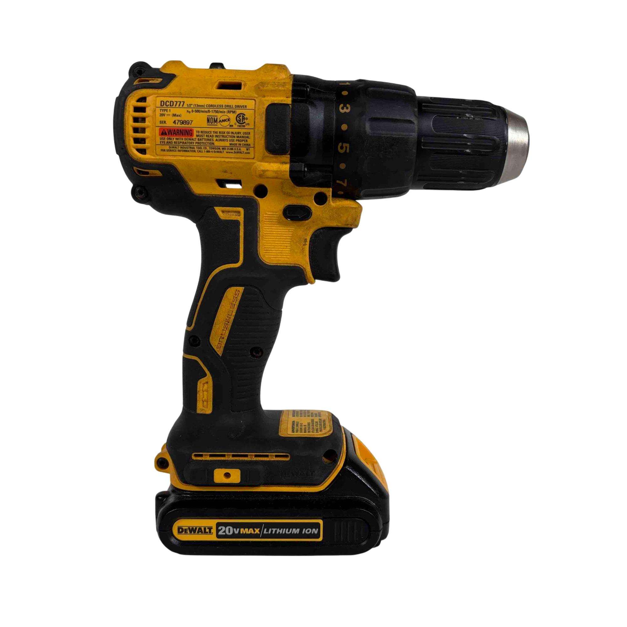 The DEWALT DCD771C2 20V MAX Cordless Drill/Driver Kit is designed with a high-performance motor that delivers 300 unit Watt out (UWO) of power. The compact, lightweight design allows you to work in tight spaces for long periods. This battery-powered drill/driver features a high-speed transmission with 2 speeds (0-450 RPM & 1,500 RPM) for a range of drilling and fastening applications.