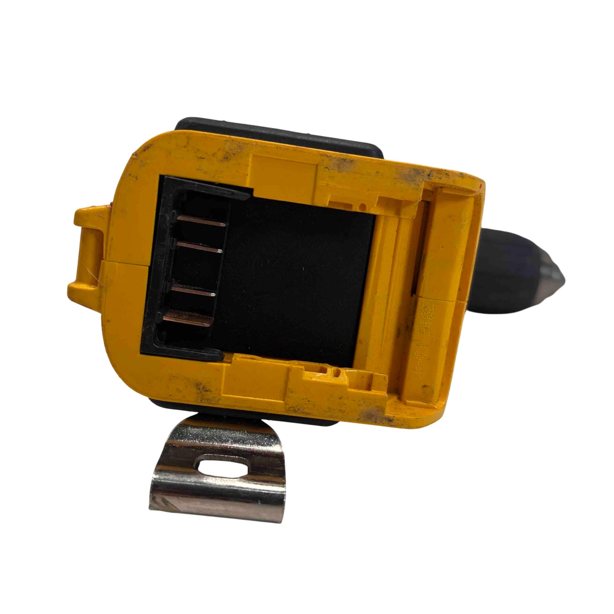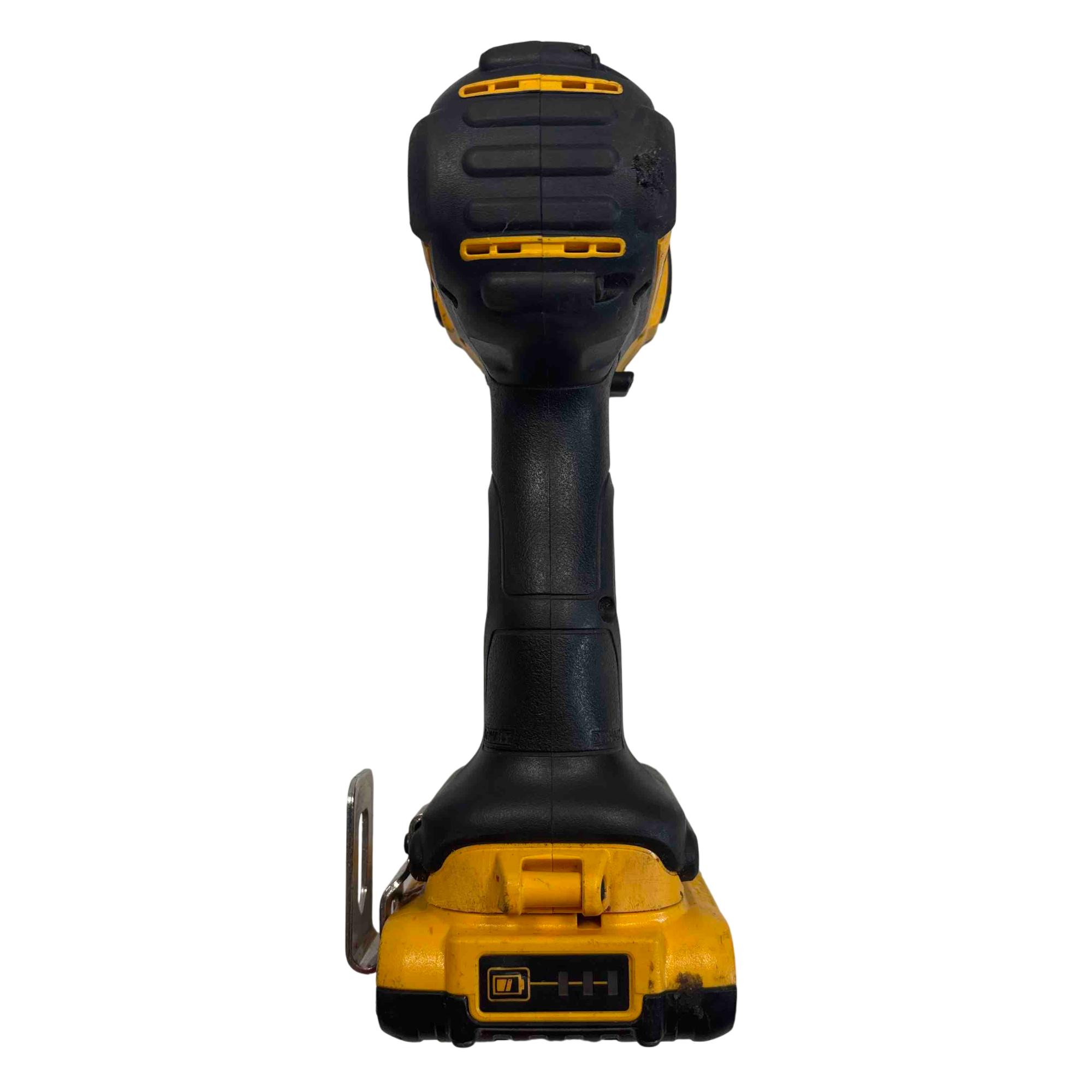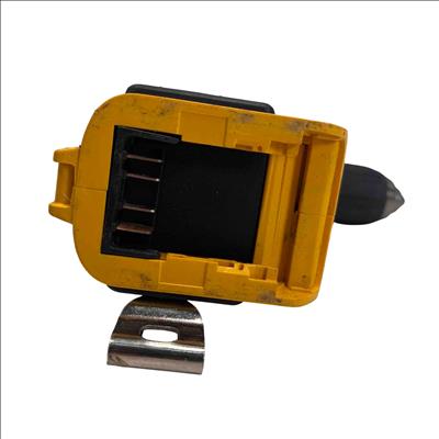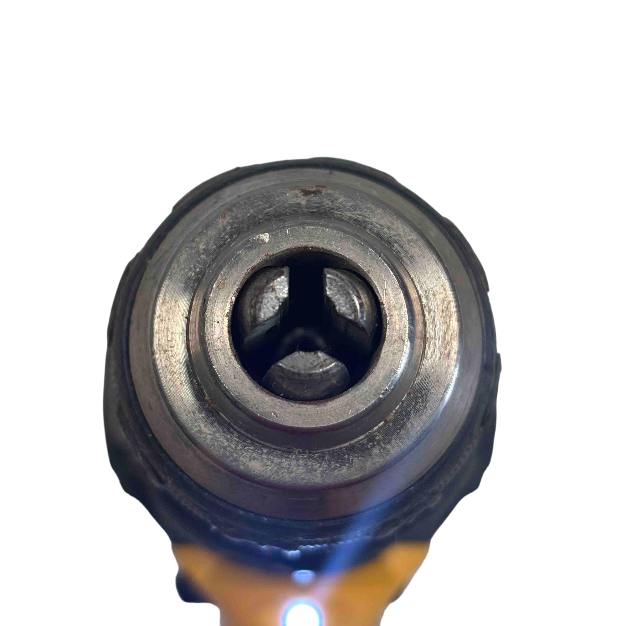 Previously owned. This drill/driver has been tested and it works. There is a scuff mark on the rubber on the back of the tool, and the rubber near the tip of the tool is scratched and word as well. The metal chuck has scratches and a few wear marks on it. There is a deep scratch in the yellow plastic on the top of the tool next to the switch. The rest of the yellow plastic on the tool has scratch marks and black stains on it. Both the power tool and the battery have wear lines where they attach, and the bottom of the battery has scratch marks on it. See photos for details.