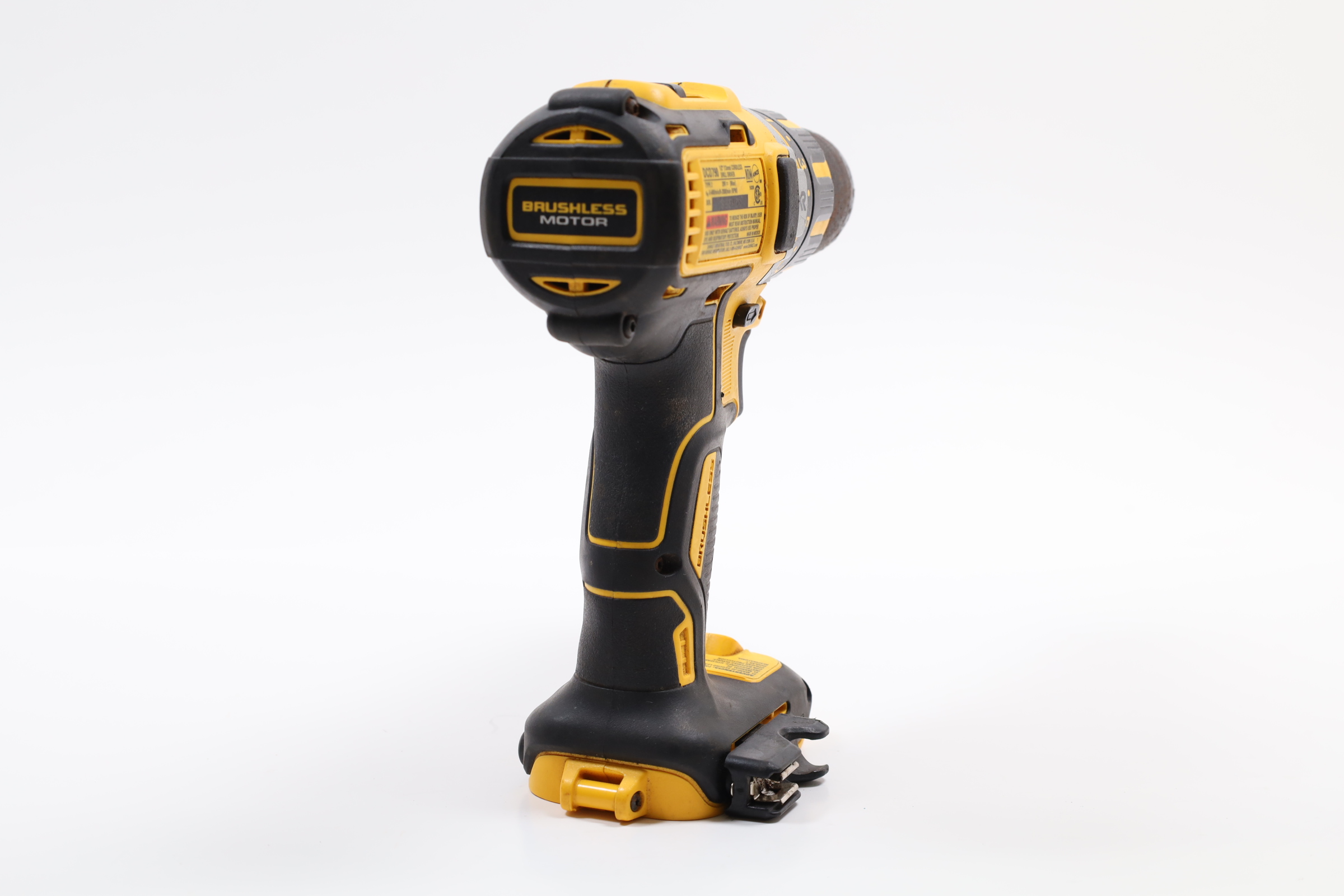 A lithium-ion brushless 1/2" cordless compact drill that offers a blend of power and convenience. It features a metal 1/2" ratcheting chuck for excellent bit grip, a compact and lightweight design (7.2" front to back, 3.5 lb) for maneuverability in tight spaces, and a high-speed transmission with two speed settings (0-600/0-2,000 RPM) for versatile fastening and drilling applications. Additionally, it comes with an LED light that has a 20-second trigger release delay for better visibility in dark or confined areas, and its strategic placement on the tool foot eliminates chuck shadows.