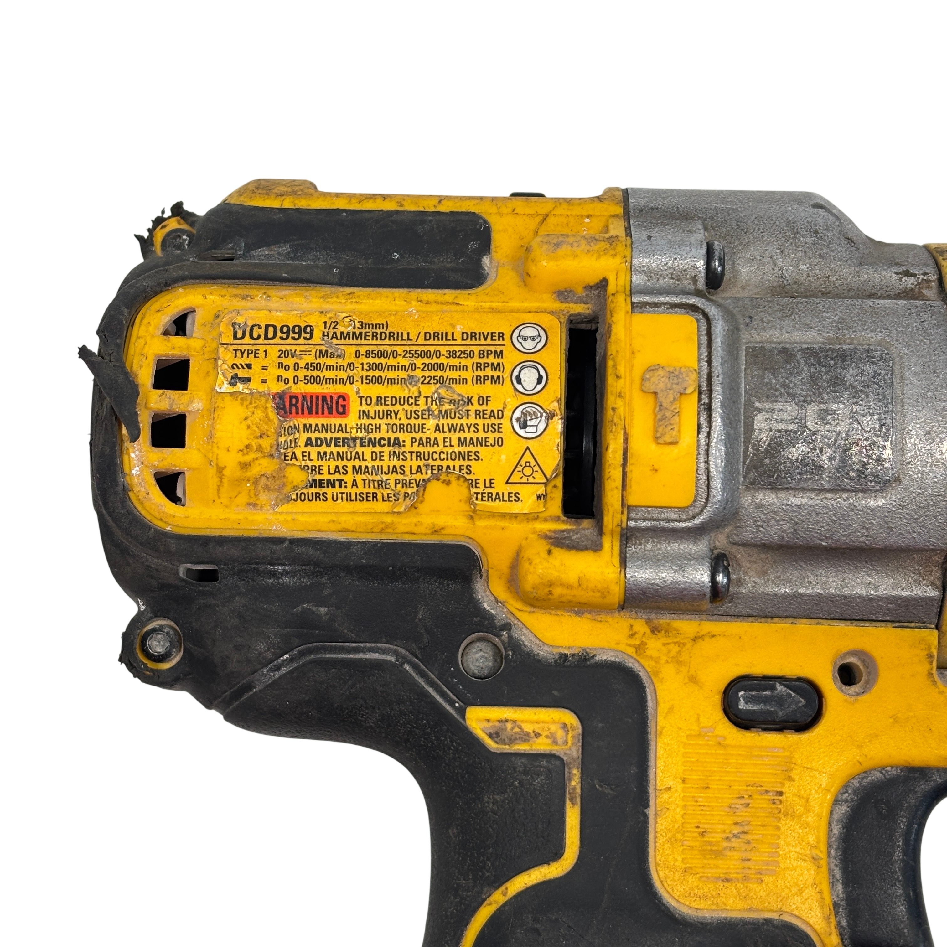 The DeWalt DCD999 20V MAX Brushless Cordless 1/2" Hammer Drill/Driver delivers professional-grade power with a brushless motor and 20V MAX lithium-ion battery. Featuring a 1/2 inch keyless chuck and three-speed settings, this cordless hammer drill is designed for versatile drilling and driving applications. Its hammer drill function allows for efficient work on masonry, while the ergonomic design and belt clip provide comfort and convenience on the job site. Ideal for contractors and serious DIYers, this tool combines durability and performance in a portable package.