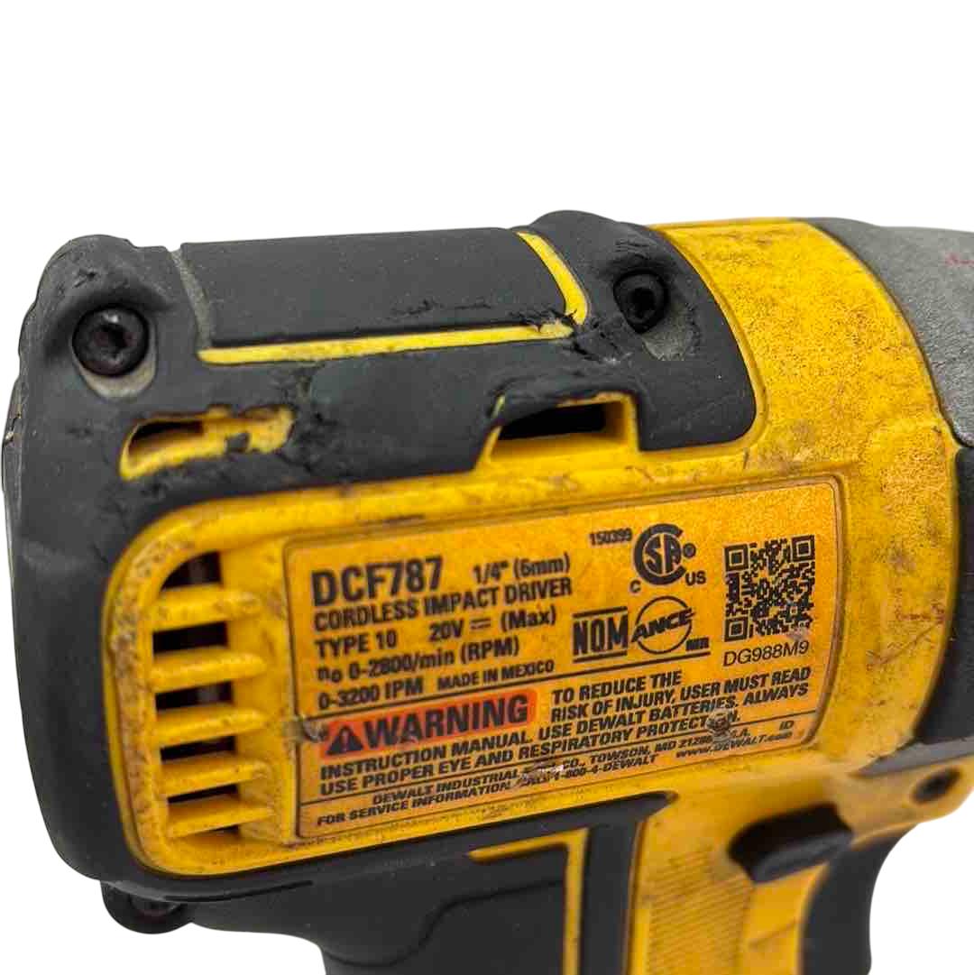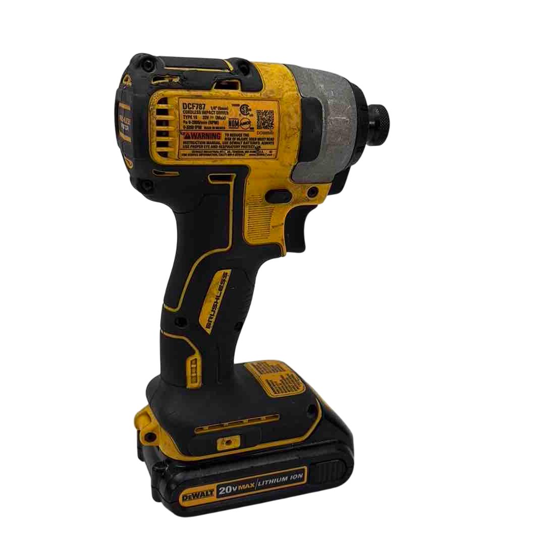 Unleash the power of precision with the DeWalt DCF787 20V MAX Brushless Lithium Ion Cordless Impact Driver. This lightweight, yet powerful tool features a 1/4" chuck and comes complete with a long-lasting battery, making it perfect for both professionals and DIY enthusiasts. Enhance your tool collection with this reliable and efficient impact driver designed to tackle any project with ease.