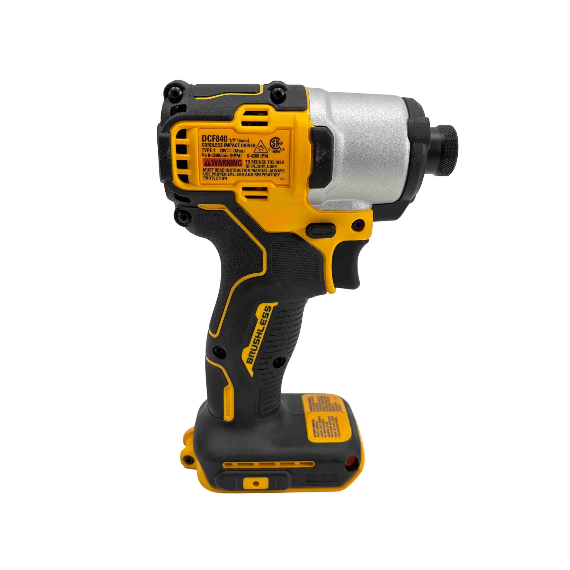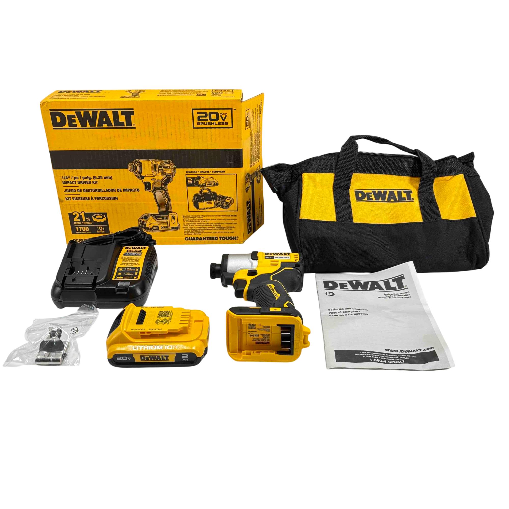 Upgrade your toolkit with the DeWalt DCF840D1 20V Max Brushless Cordless Impact Driver Kit. Designed for efficiency, this powerful tool features a 1/4" hex chuck for quick bit changes and a brushless motor for enhanced durability and runtime. Perfect for both professionals and DIY enthusiasts, it comes with a convenient carrying bag, ensuring you have everything you need for any project.