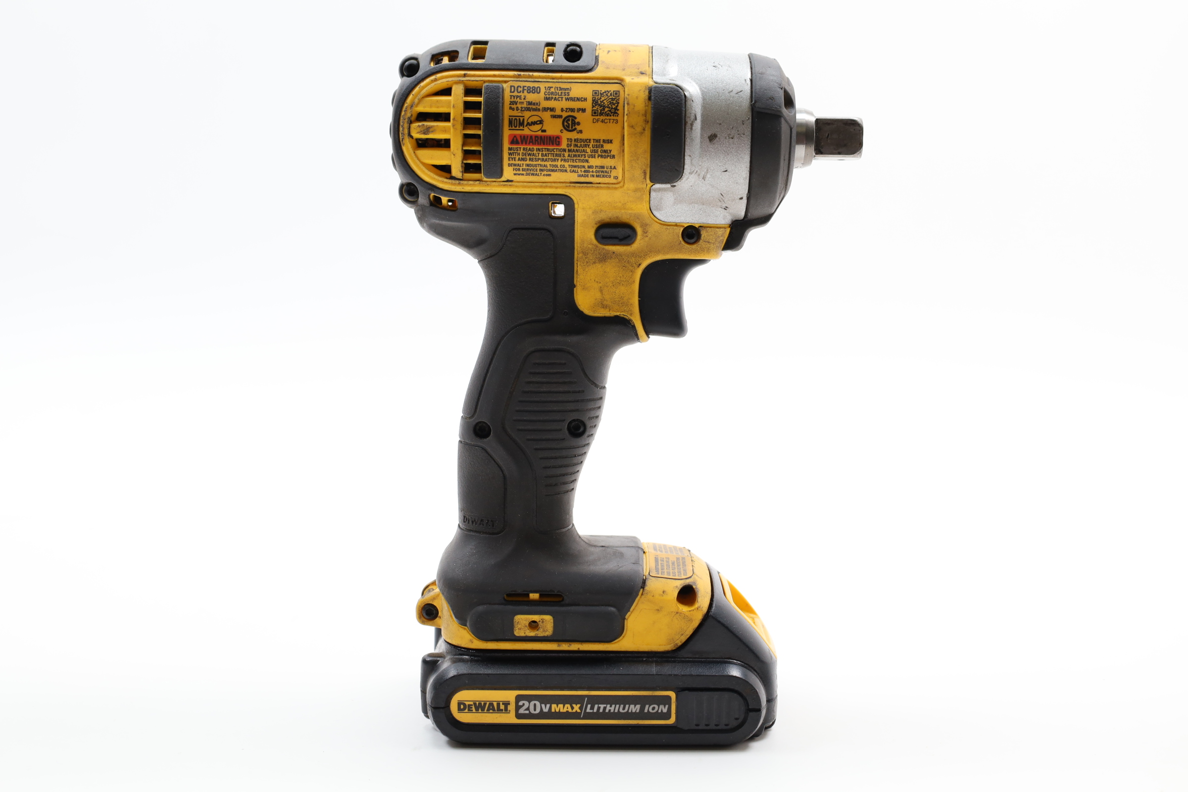 Strong, compact, lightweight and forceful, this 20-Volt cordless impact wrench crams into tight spaces and delivers a hearty 1800 in. lbs. of torque. At just 3.4 lbs. DEWALT gives you the ability to deftly handle this tool for a variety of fastening jobs. When visibility diminishes, ignite 3 front-facing LED lights to shine on your work space with a 20-second shutdown delay. Socket retention is bolstered on this device with a 1/2 in. detent pin anvil.
