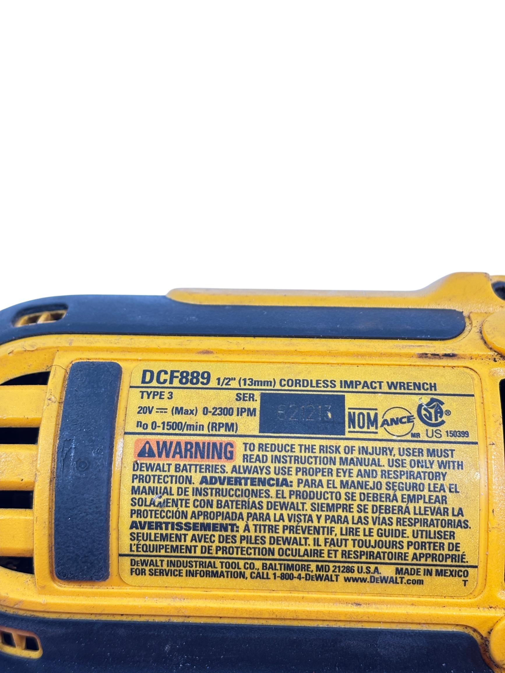 DeWalt DCF889 20V MAX Cordless 1/2" High Torque Impact Wrench delivers powerful performance for fastening and loosening tasks with its high torque output and 1/2-inch drive size. This cordless impact wrench features a compact, ergonomic design optimized for easy handling in tight spaces, making it suitable for professional construction and automotive applications.