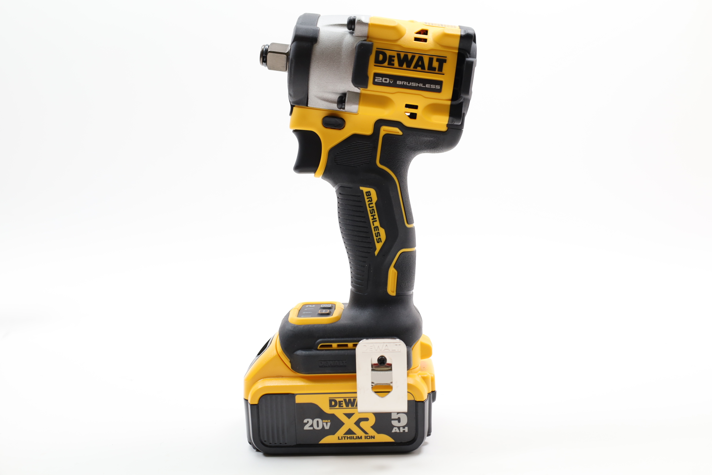 A robust and versatile tool designed for a variety of fastening tasks. This compact impact wrench delivers up to 300 ft-lbs of maximum fastening torque and 450 ft-lbs of maximum breakaway torque, making it a powerful option for demanding applications. It features four speed settings, including a Precision Wrench control and Timber Screw mode, enhancing both performance and control. The addition of an LED work light enhances visibility in poorly lit environments. Its durable construction includes a glass-filled nylon housing, providing resistance to damage from certain oils and solvents, and it features a hog ring anvil for quick and secure socket changes, emphasizing both durability and ease of use.