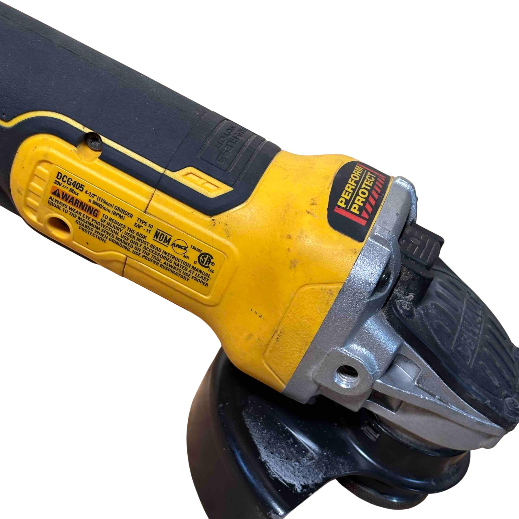 Experience top-tier performance with the DeWALT 20V MAX XR Brushless Angle Grinder, model DCG405. Designed for professionals and DIYers alike, this cordless handheld grinder features a powerful brushless motor for increased run-time and durability, plus convenient XR technology for optimum efficiency. Perfect for cutting, grinding, and metal fabrication, its lightweight, ergonomic, and built to handle tough jobs with ease.