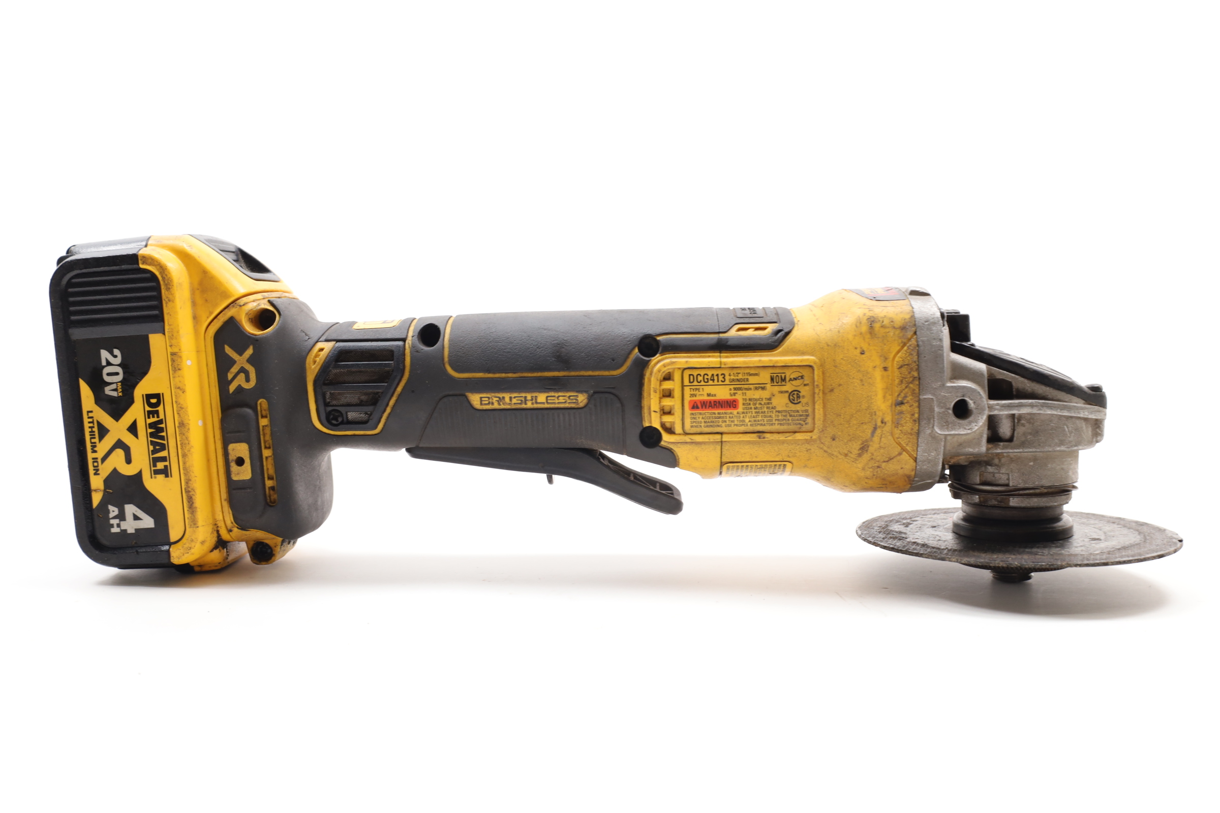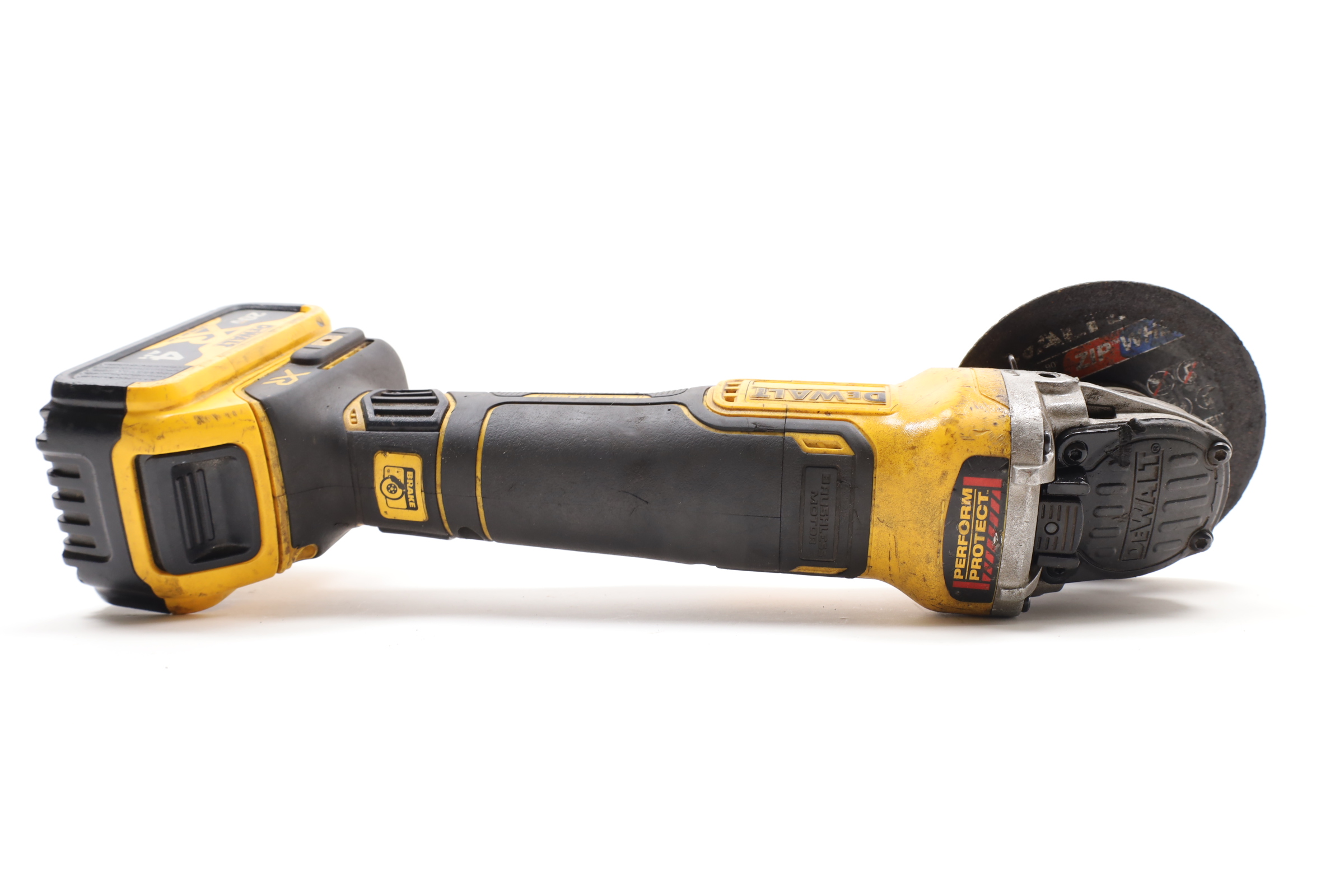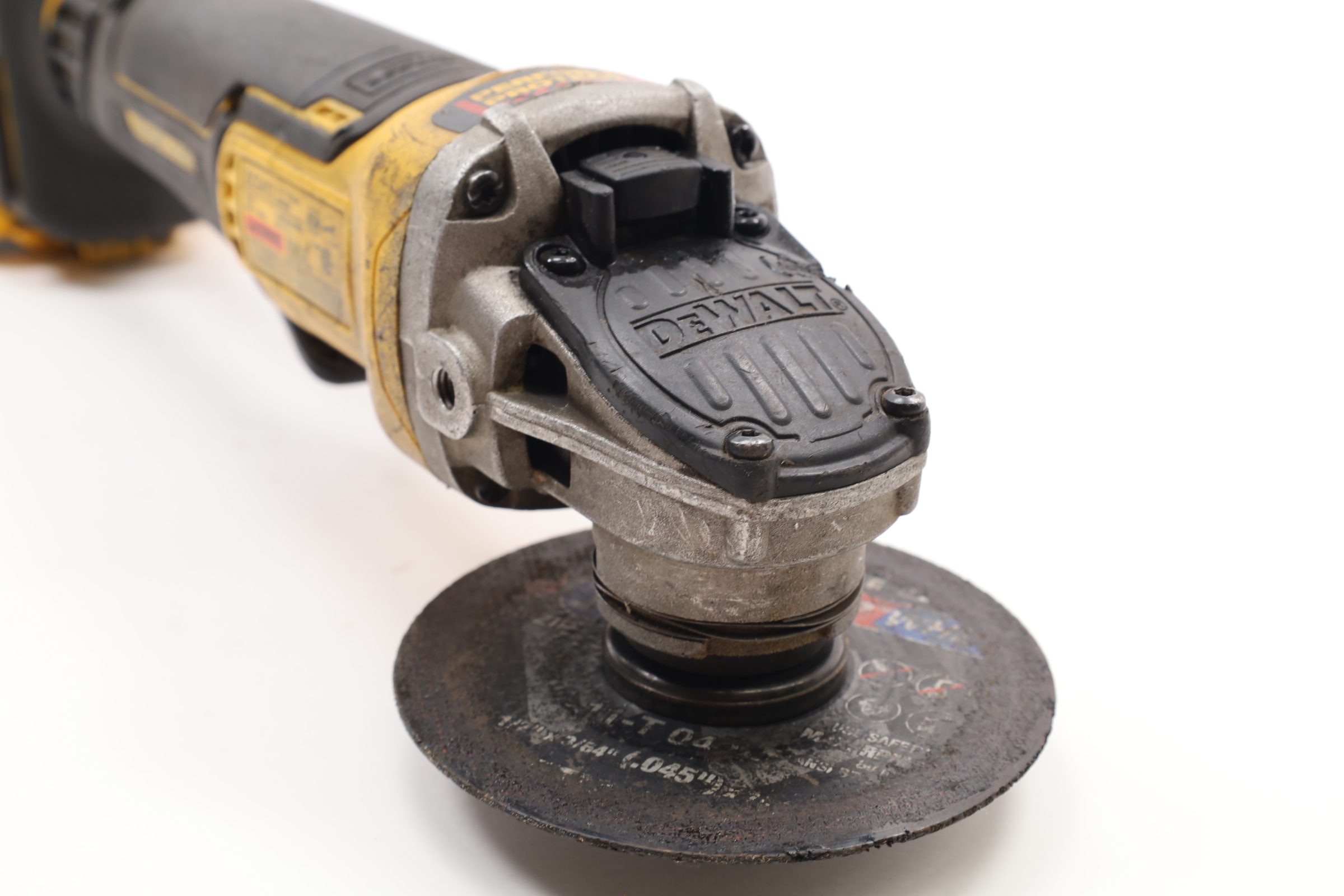 Equipped with a 20V MAX XR motor and is designed for efficient metal grinding, cutting, and working with bricks, pavers, and concrete. It features a unique brake system that halts the wheel in two seconds or less upon trigger release. The integrated E-Clutch System and Kickback Brake enhance safety by automatically shutting down the motor during wheel pinch situations, minimizing kickback. The tool's brushless motor is engineered for longevity, eliminating the need for brush replacements. Additionally, it includes a One-Touch Guard for easy adjustment, an anti-wobble hitch pin for stability, and a 2-stage trigger requiring two actions for activation, ensuring controlled and safe operation.