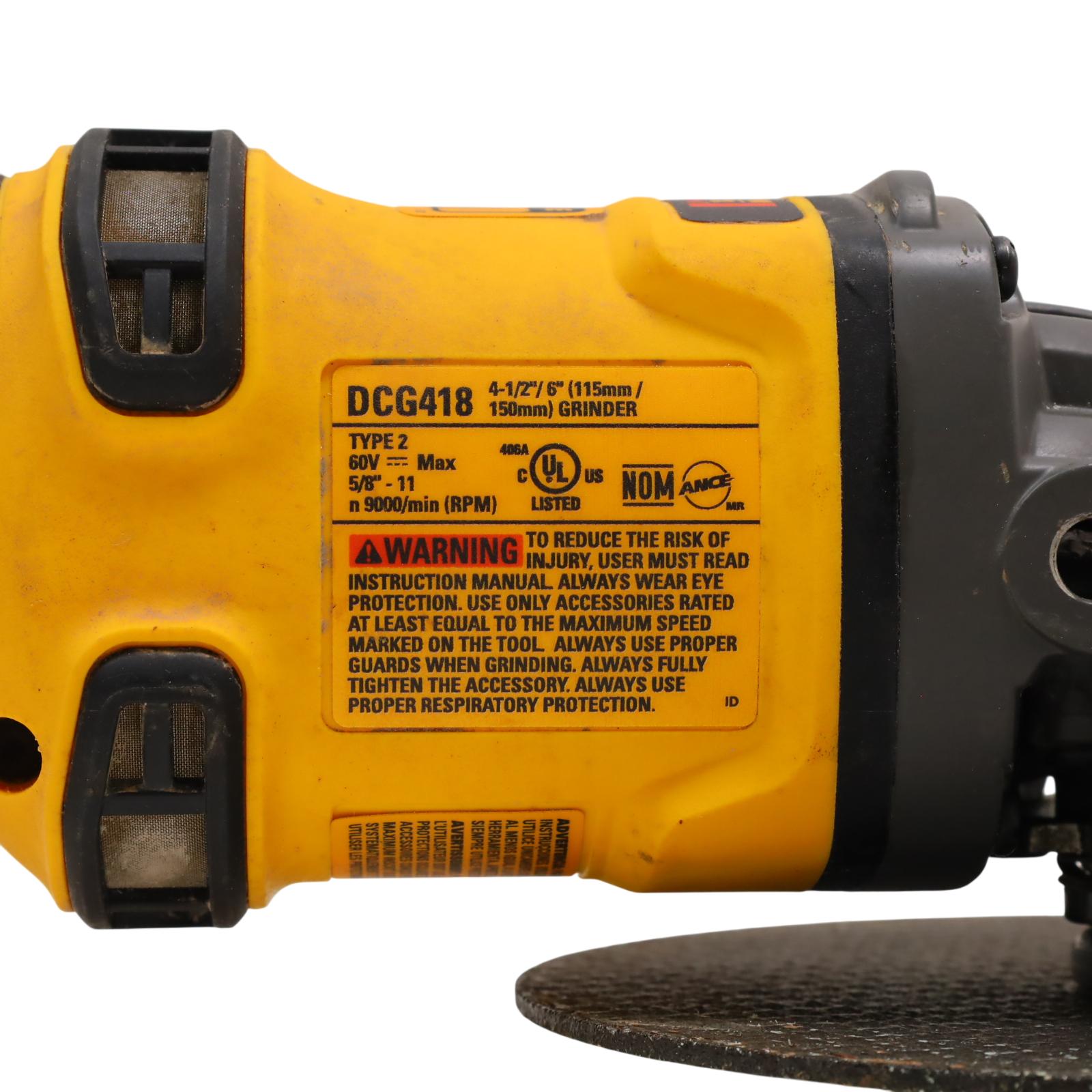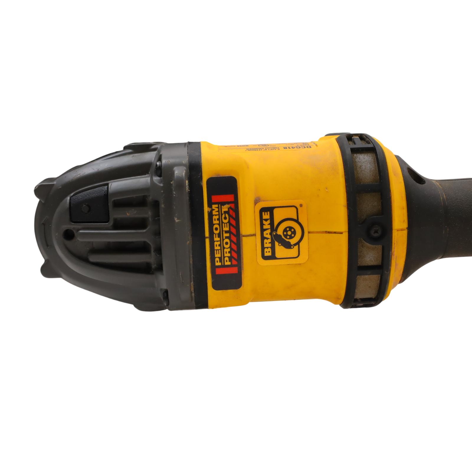 Offers robust performance with up to 30% more power than previous models, delivering 2300 unit watts out and operating at a no-load speed of 9000 RPM. Designed for heavy-duty grinding applications with 4.5- to 6-inch wheels, this 13-amp tool is part of DeWalt's PERFORM and PROTECT line, prioritizing user safety. The Kickback Brake activates to stop the grinder if it senses pinching, stalling, or binding, while the E-CLUTCH feature shuts down the motor in under a tenth of a second if a stall is detected, enhancing control and reducing the risk of accidental movement.