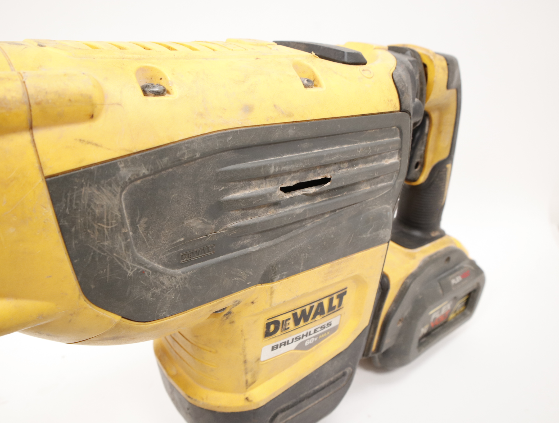 Most powerful cordless rotary hammer, powered by the DEWALT FLEXVOLT 60-Volt maximum brushless motor, generating 13.3J of impact energy