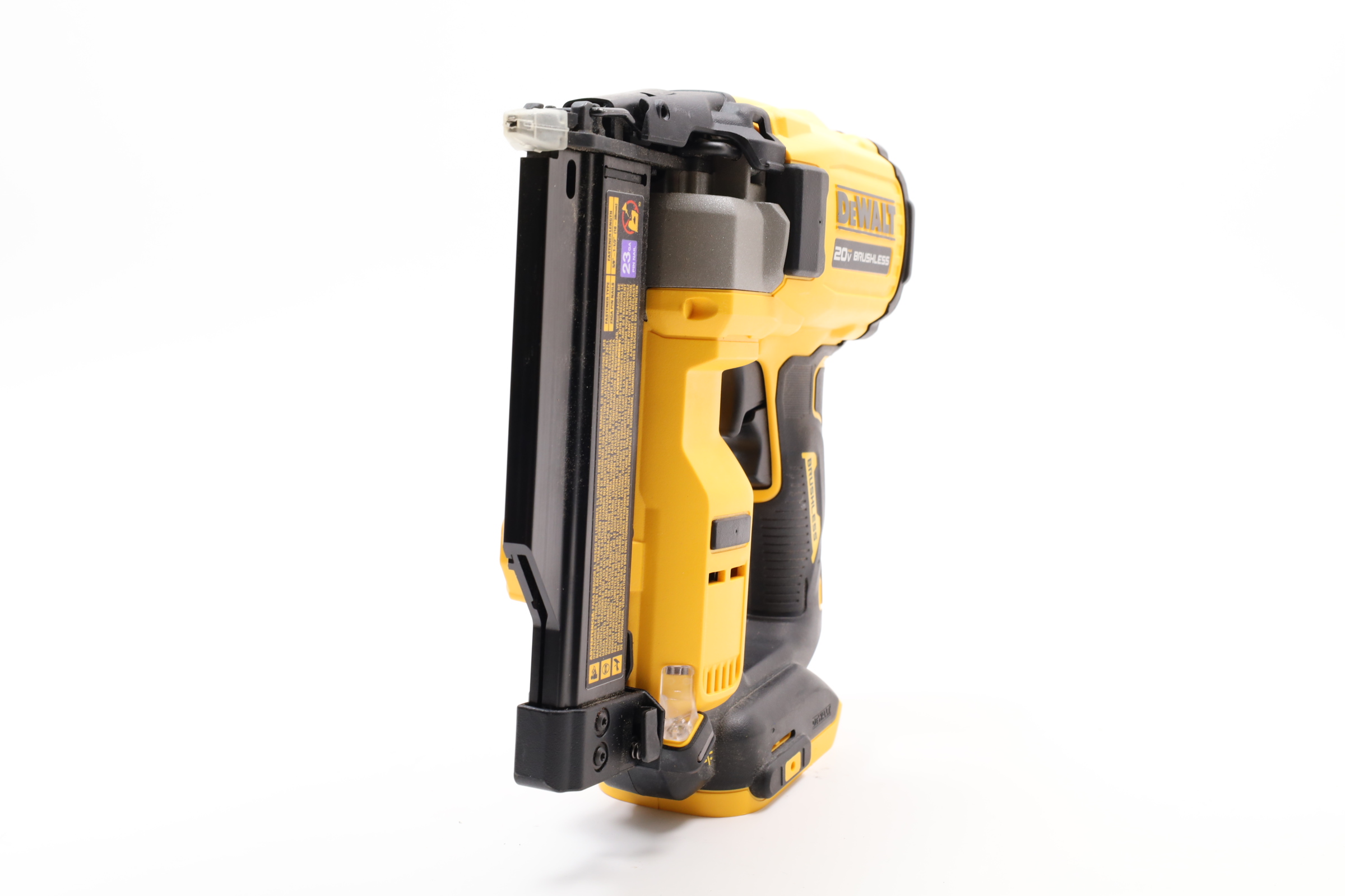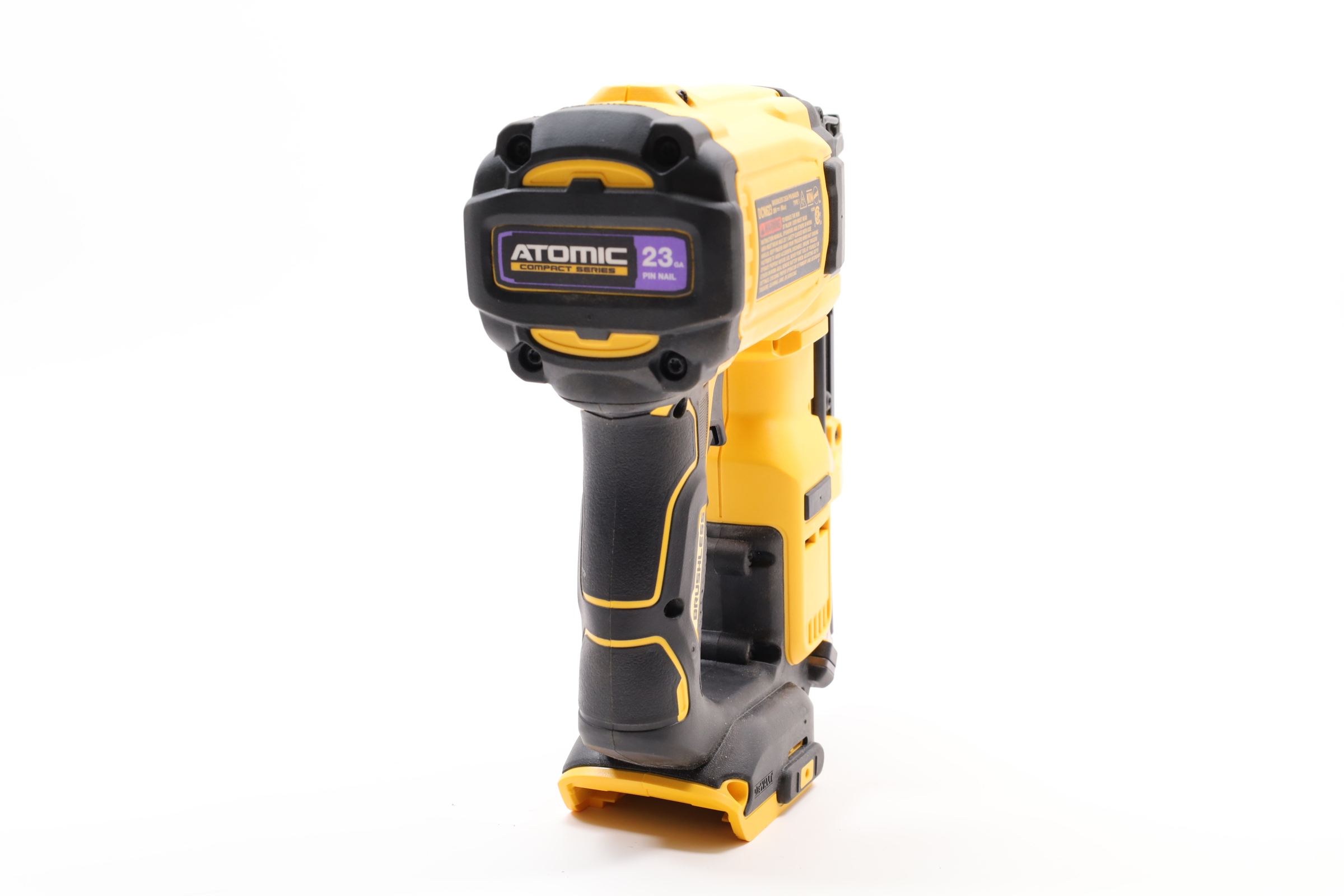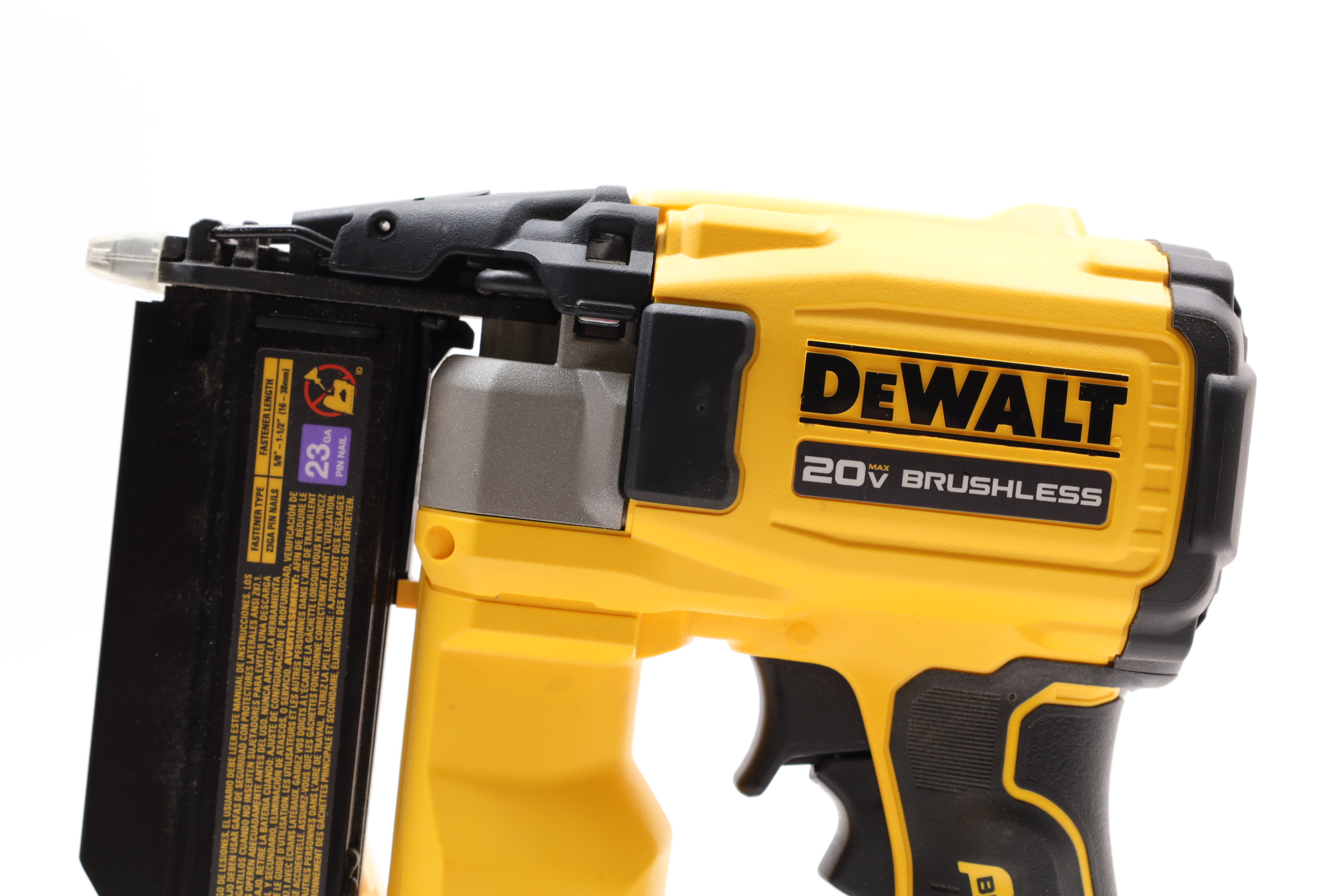 Designed for finish, trim, and remodeling tasks, offering cordless convenience without the need for hoses, compressors, or gas cartridges. It operates with a high-output brushless motor, driving 23-gauge pin nails between 5/8 inch and 1-1/2 inches in length. The tool features a tool-free jam release and depth adjustment for ease of use. A low nail lockout system with an LED indicator alerts users when reloading is needed, ensuring continuous workflow.