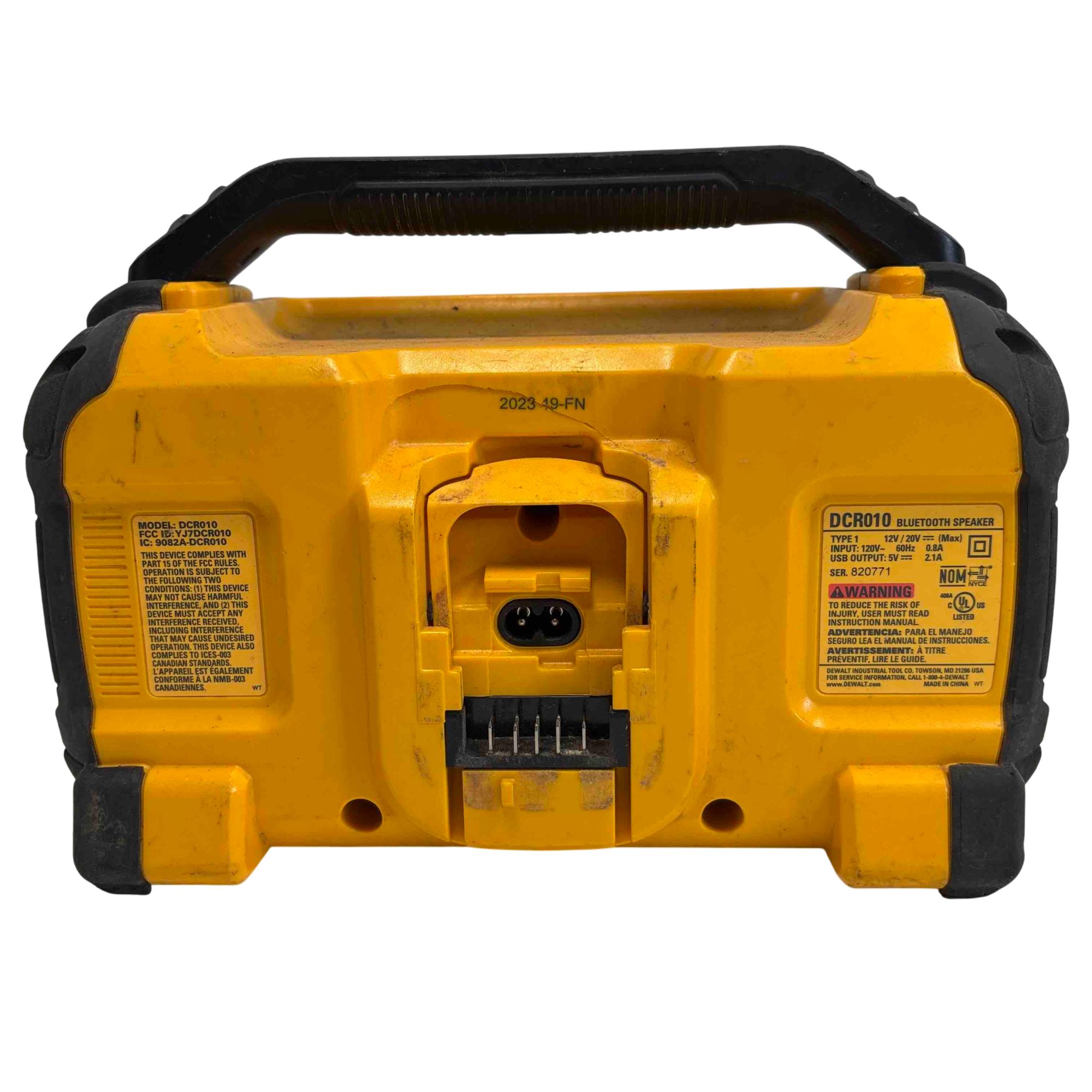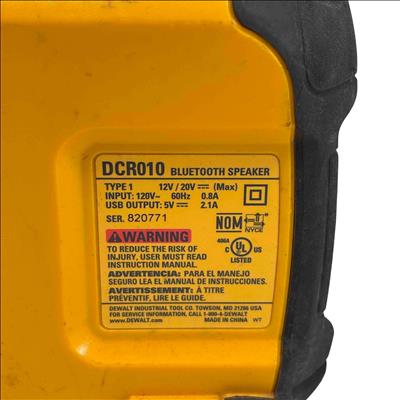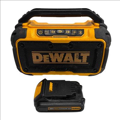 Experience powerful sound on the jobsite with the DeWalt DCR010 12V/20V MAX Jobsite Bluetooth Speaker, designed for ultimate durability and convenience. With a 100-foot Bluetooth range and a robust, rugged design, this speaker can handle even the toughest environments. It comes equipped with a DeWalt DCB201 20V MAX Lithium-Ion battery.