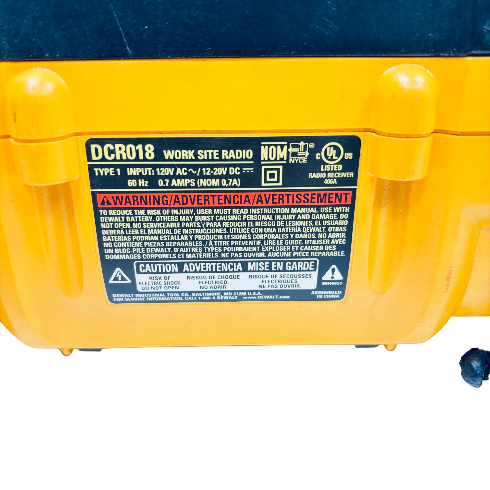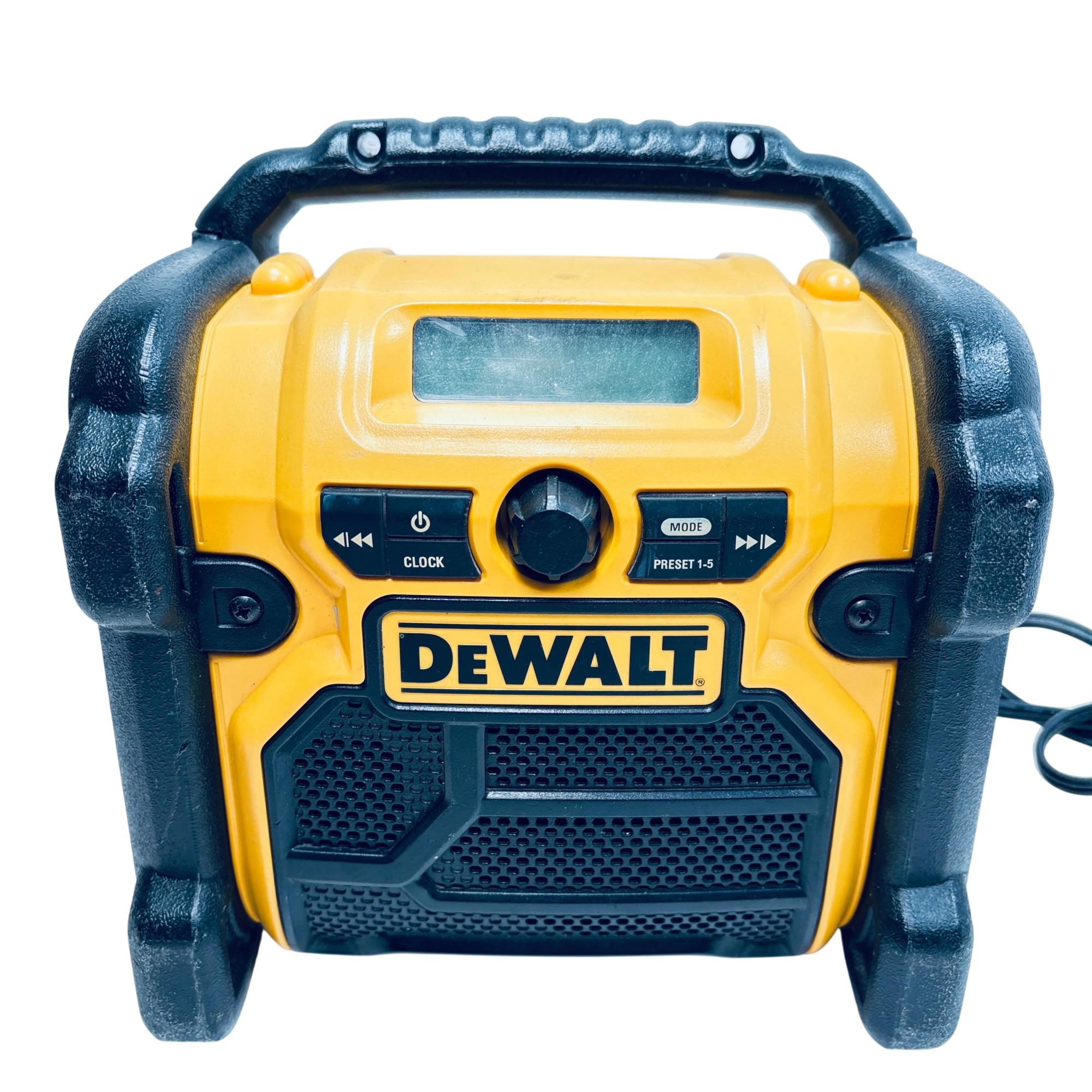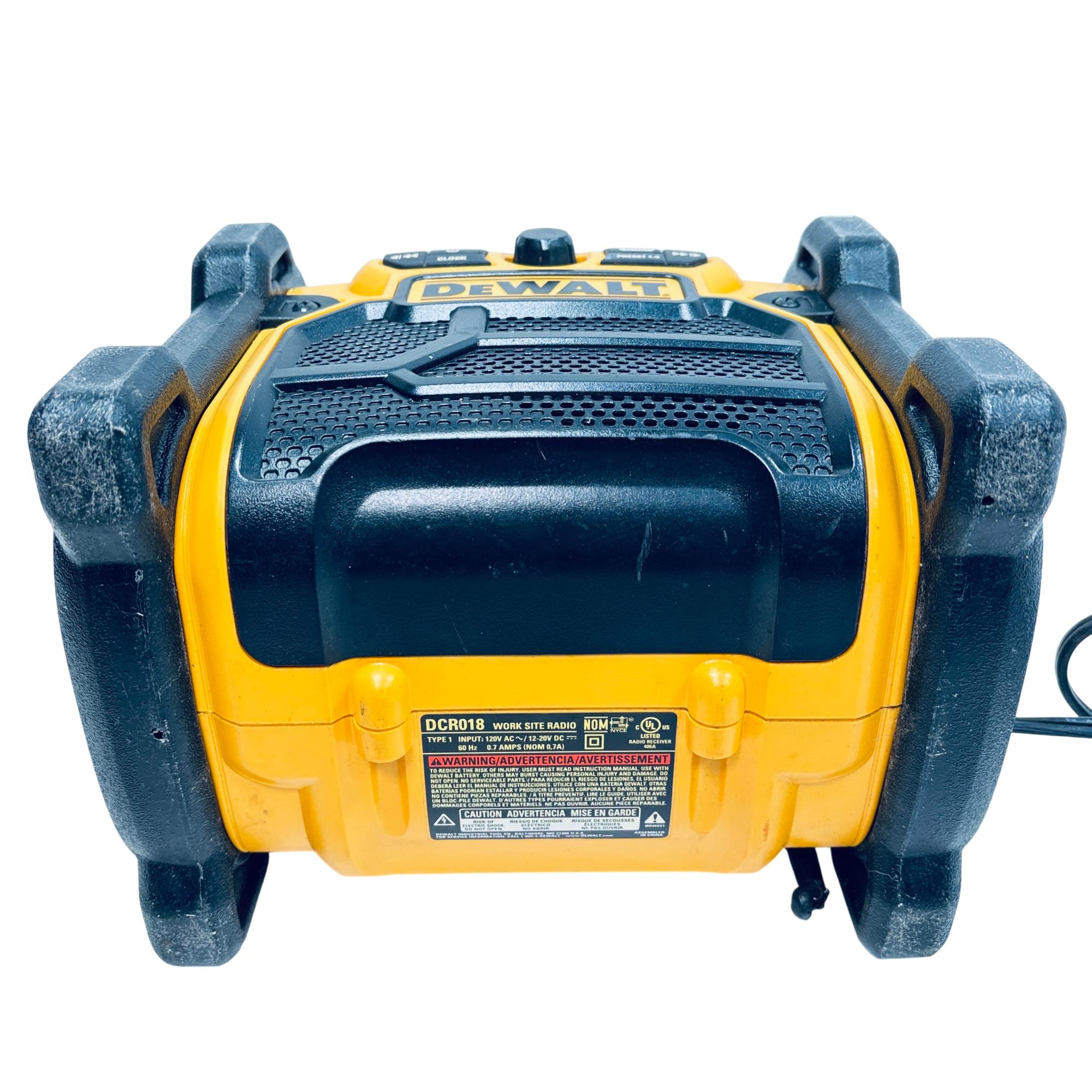 DeWalt DCR018 12V/18V/20V MAX Compact Worksite Radio delivers clear AM/FM sound with a rugged design optimized for jobsite use. Compatible with multiple battery platforms, it features easy-to-use preset buttons and a backlit LCD screen for quick tuning. Its durable housing and portability make it an ideal radio for demanding work environments.